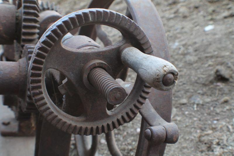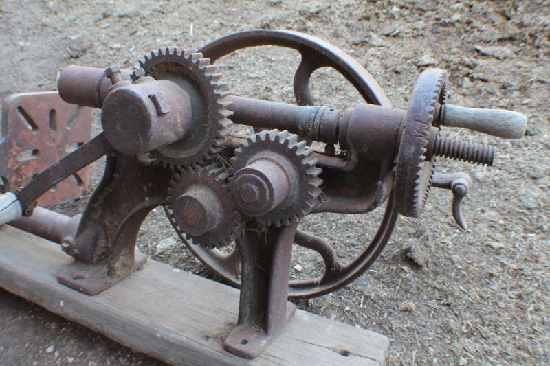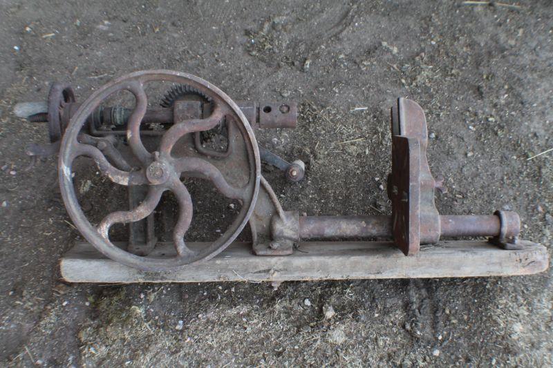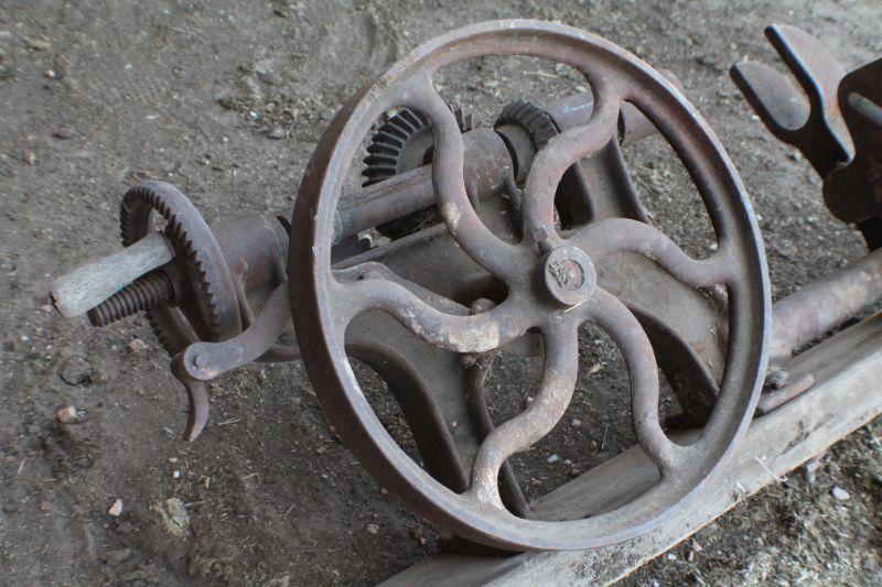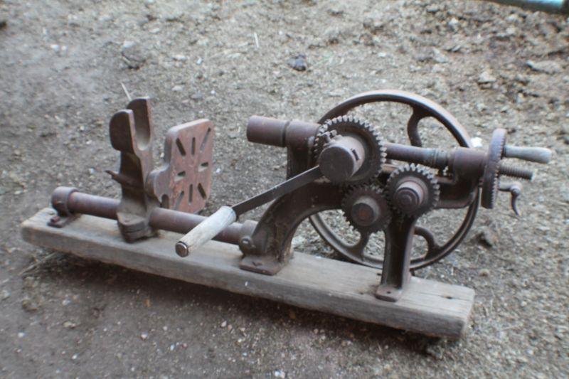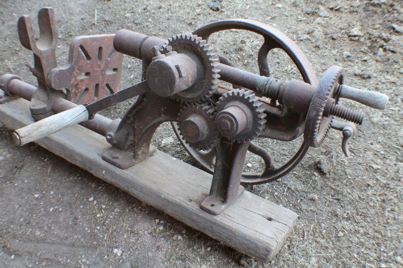 Lot #138: Antique Industrial Grade LARGE Drill Press Mounted to Wood Board