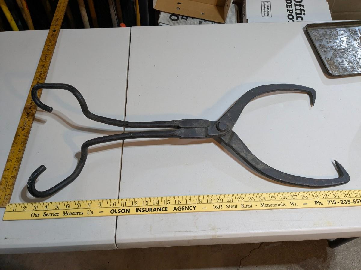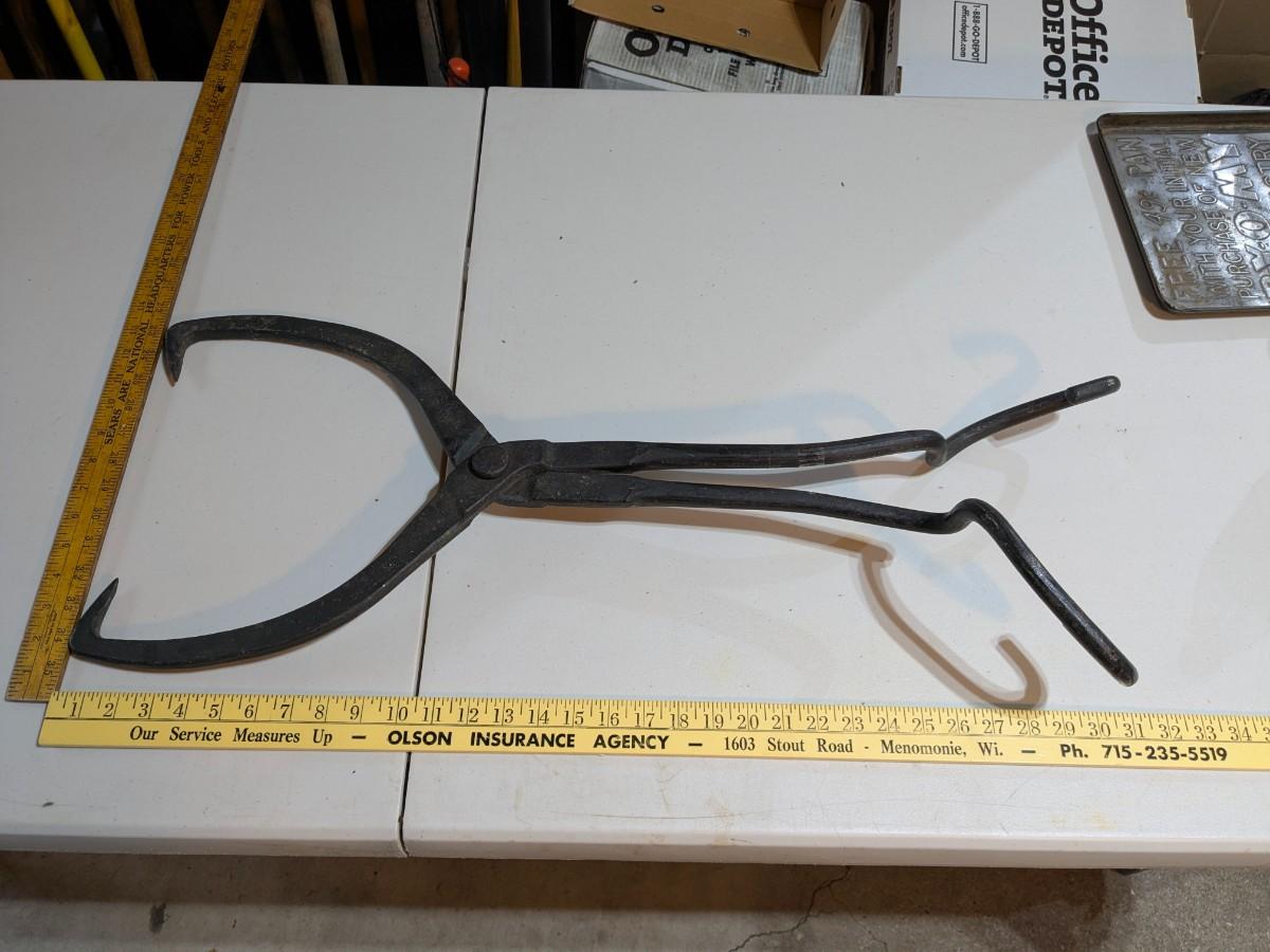 Antique Large Heavy Duty Cast Iron Ice Tongs
