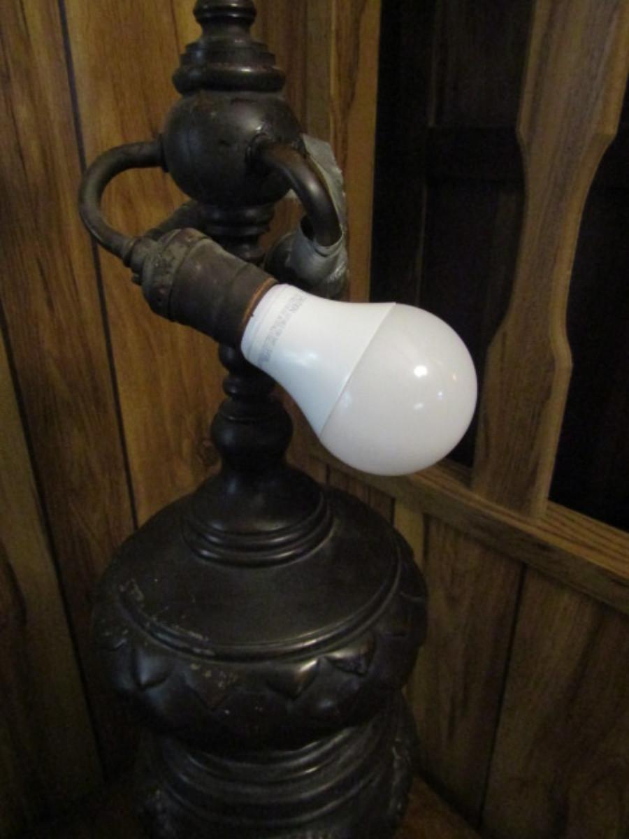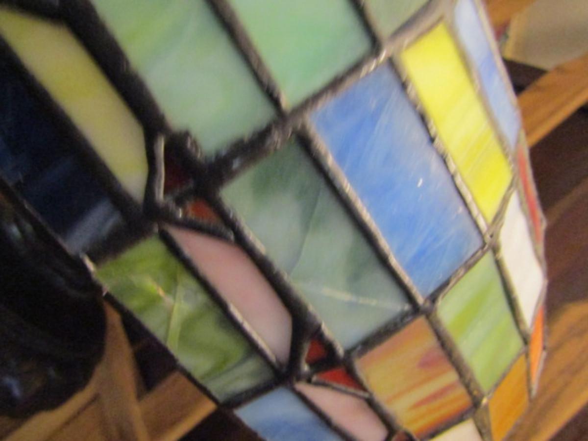 Antique Large, Impressive Stained Glass Lamp with Heavy Metal Base- Approx 33" Tall. May need some wiring. Please see all pictures- contains some cracked panels. Missing finial.