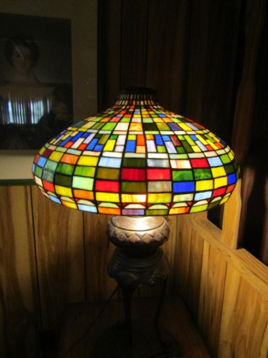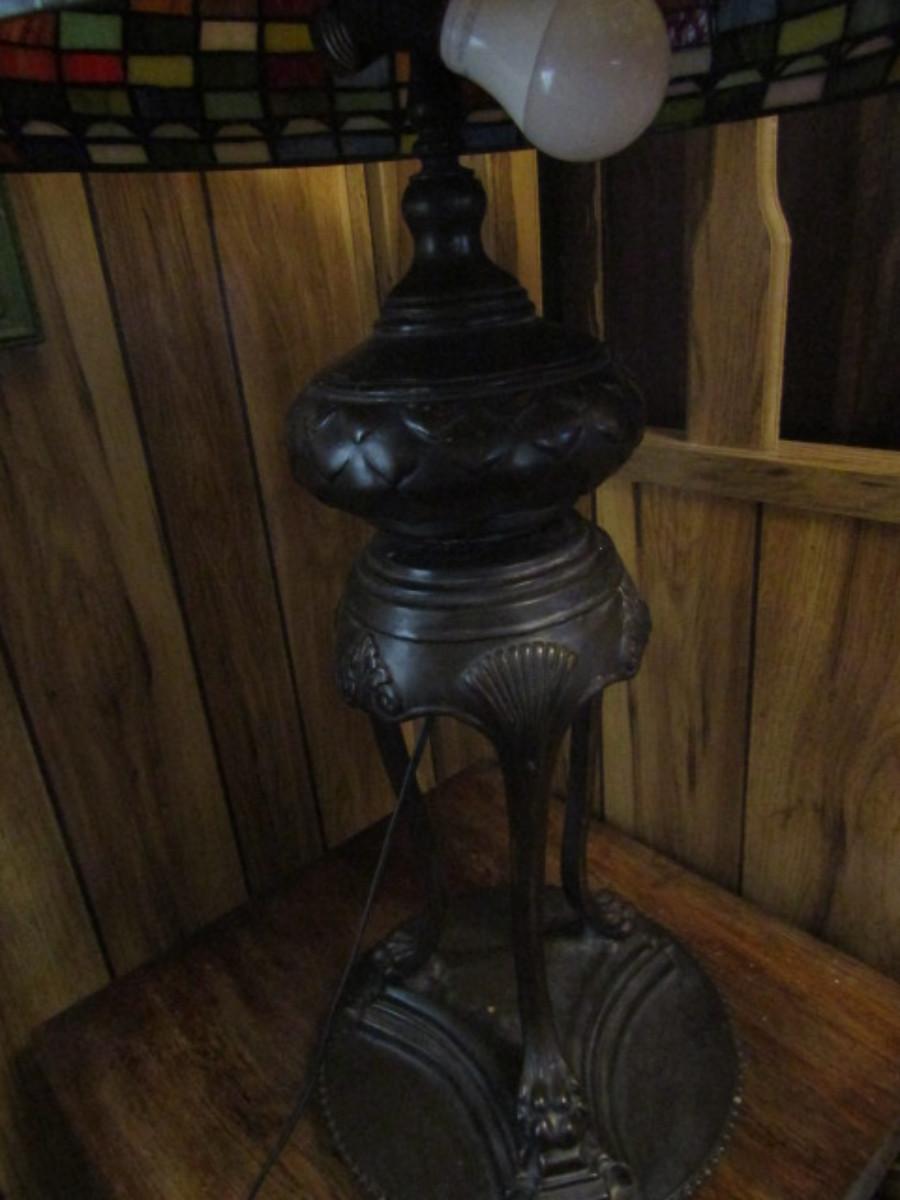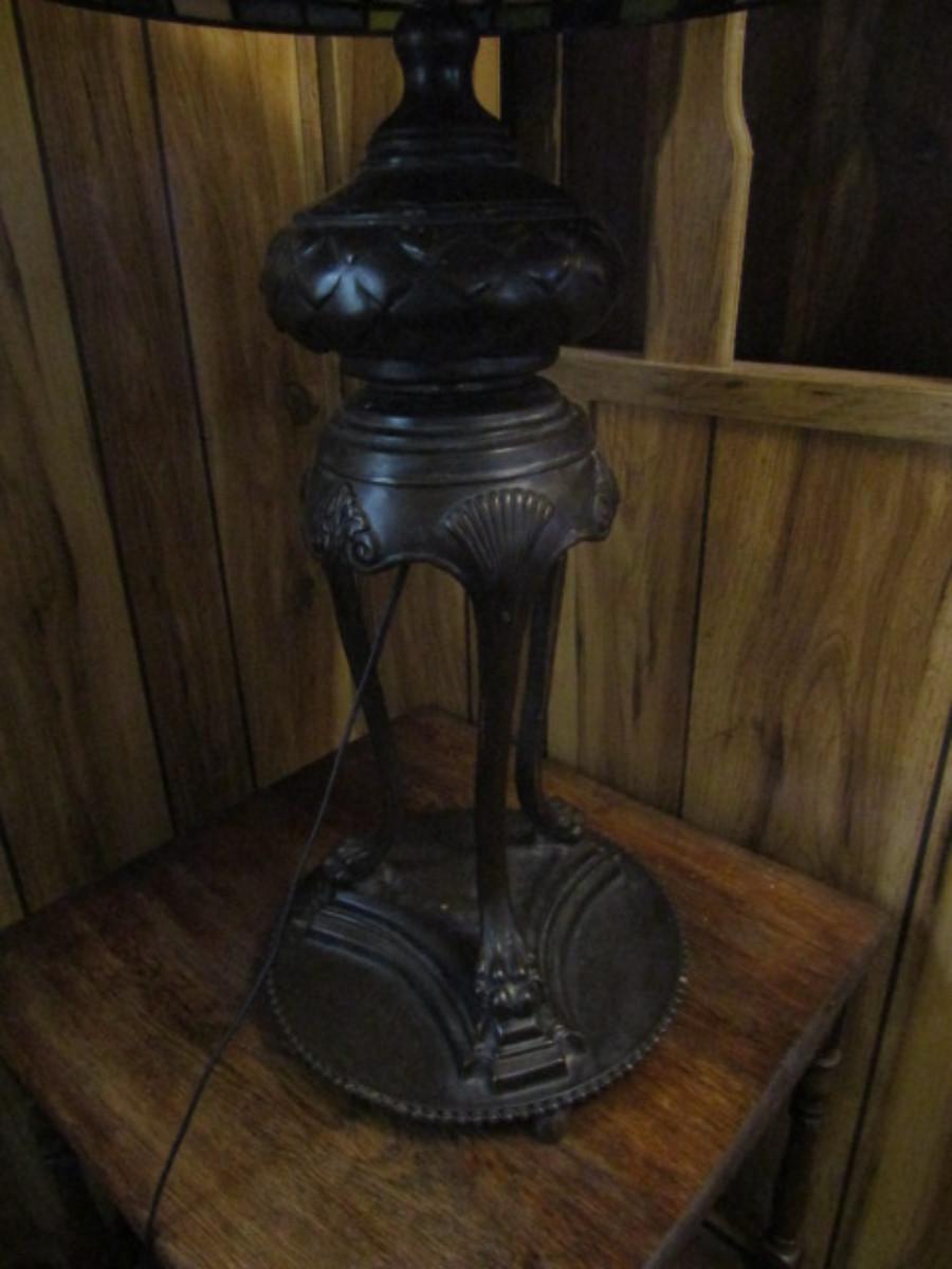Antique Large, Impressive Stained Glass Lamp with Heavy Metal Base- Approx 33" Tall