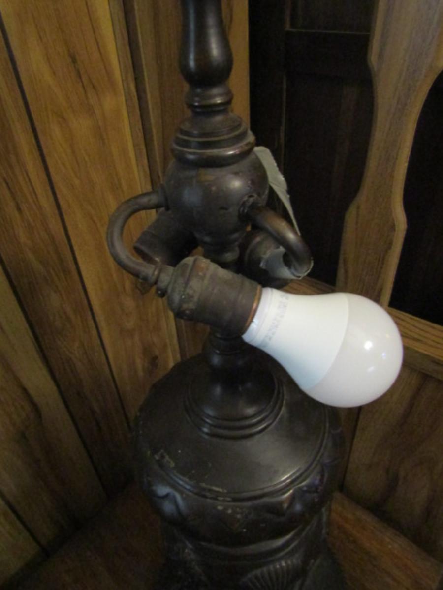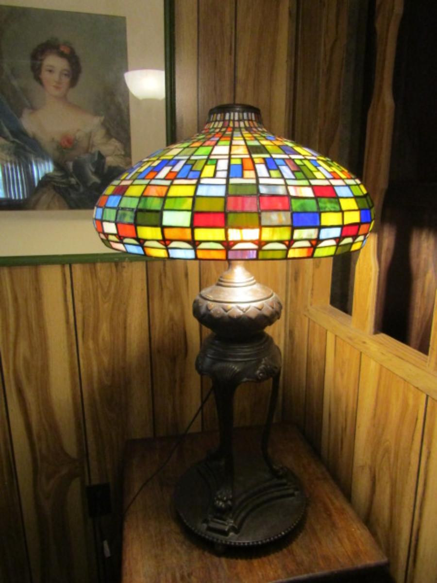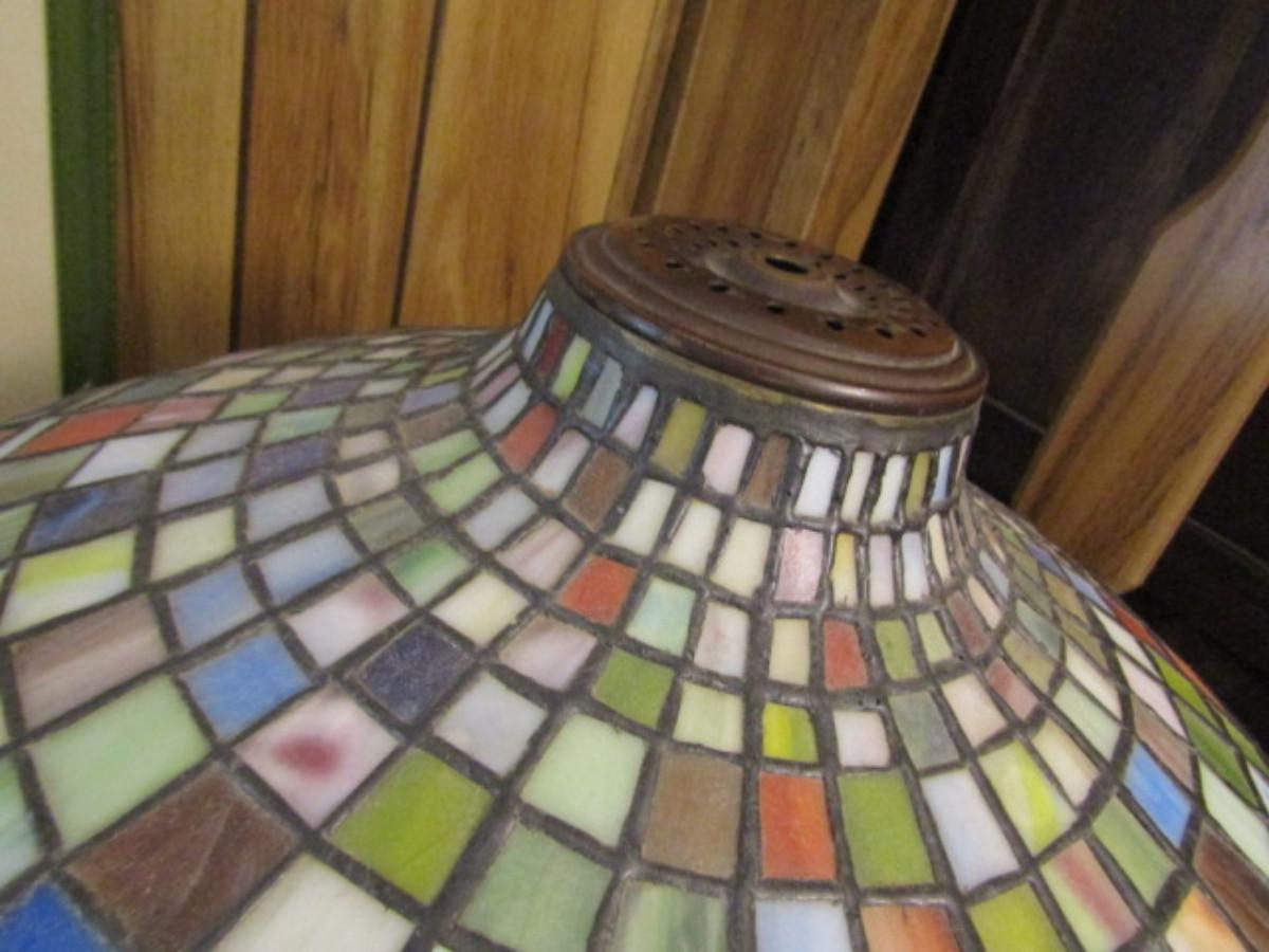 Antique Large, Impressive Stained Glass Lamp with Heavy Metal Base- Approx 33" Tall