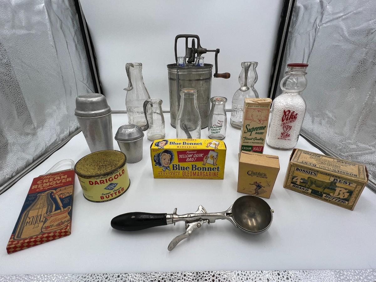 Antique Large Lot of Dairy Milk Butter and Ice Cream Related Collectibles