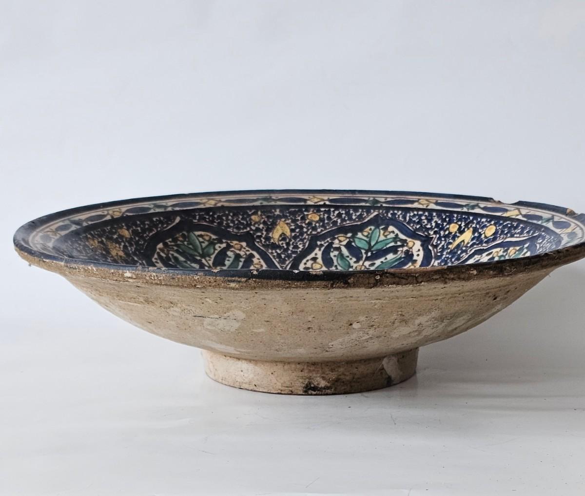 Antique Large Portuguese Glazed Centerpiece Bowl likely 17-19th c, unsigned and handpainted