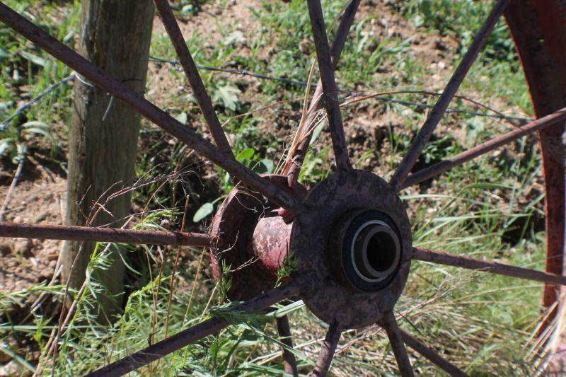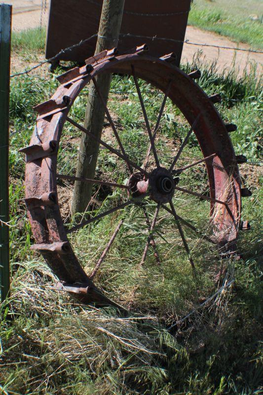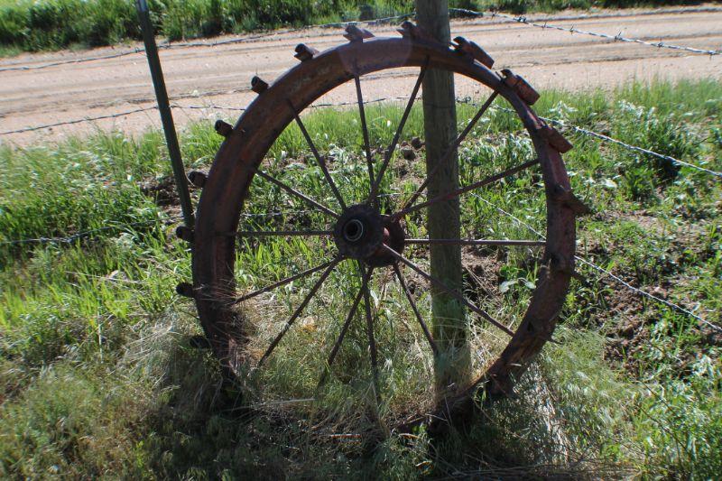Lot #176: Antique Large Tractor Wheel Red Chippy Paint