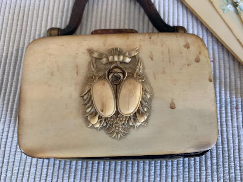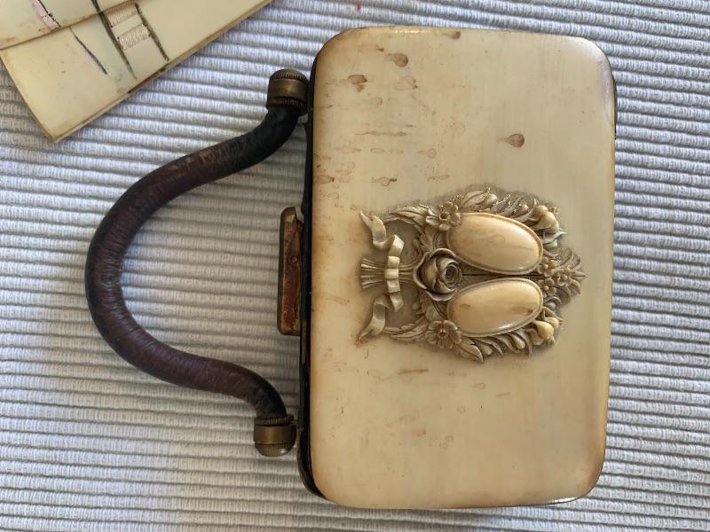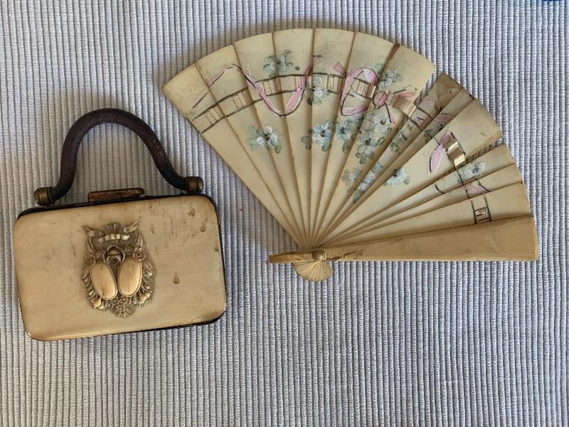 Antique late 1800’s (?) Bone Coin Purse and Fan