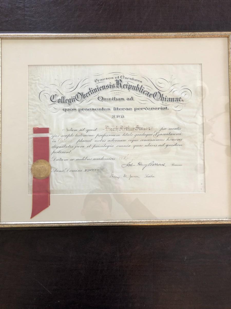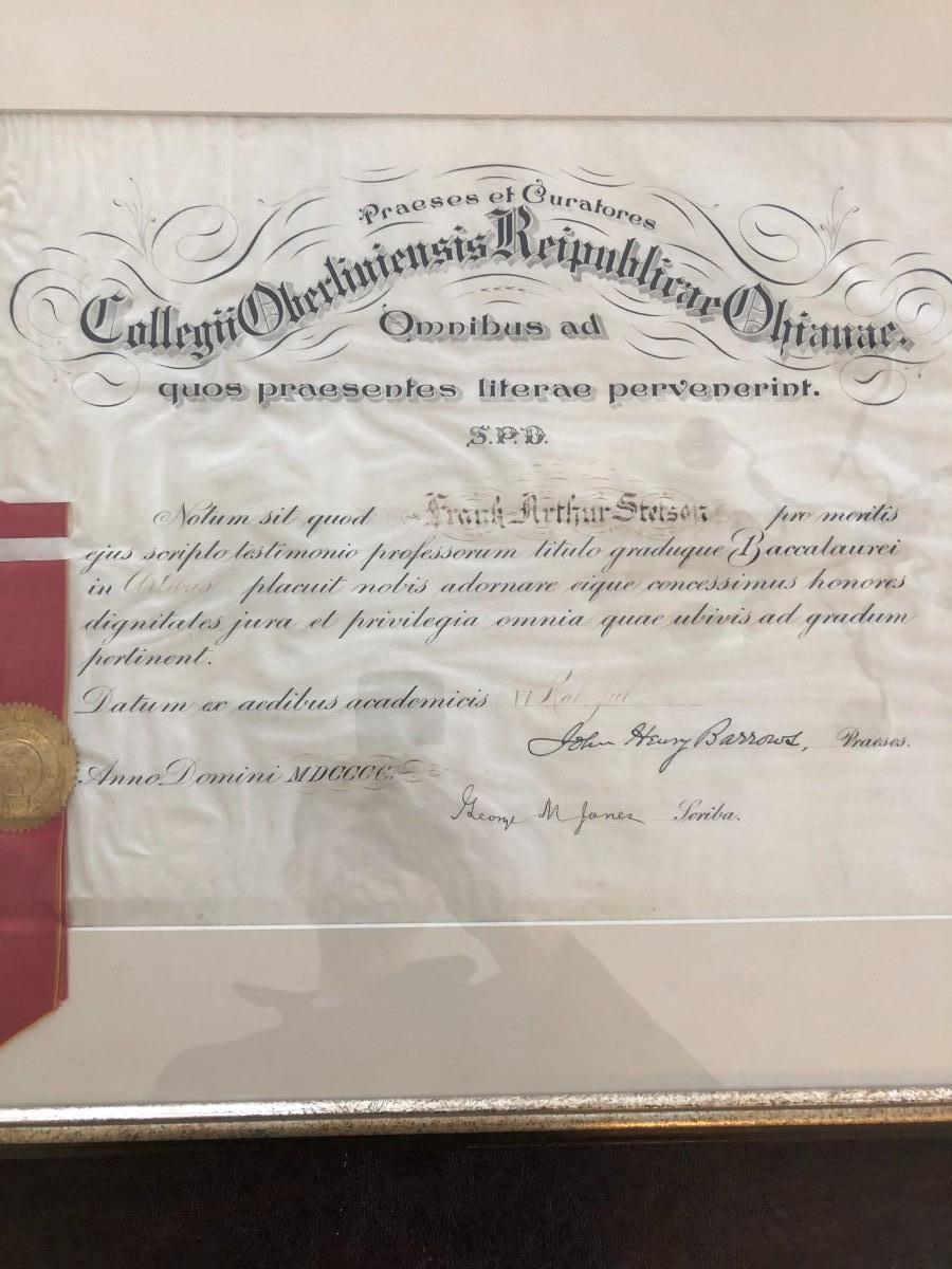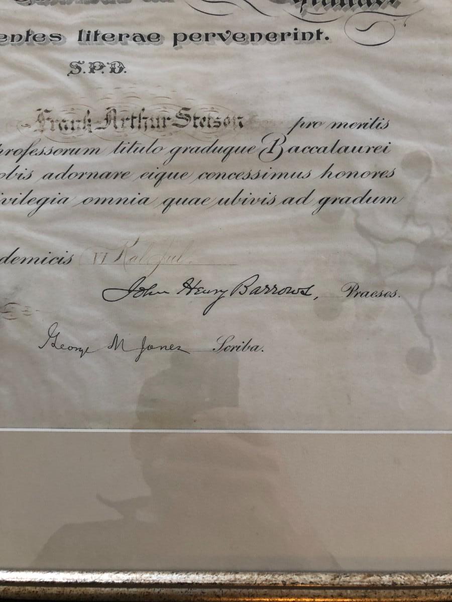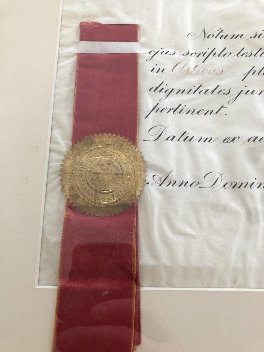ANTIQUE LAW DEGREE IN LATIN IN FRAME
