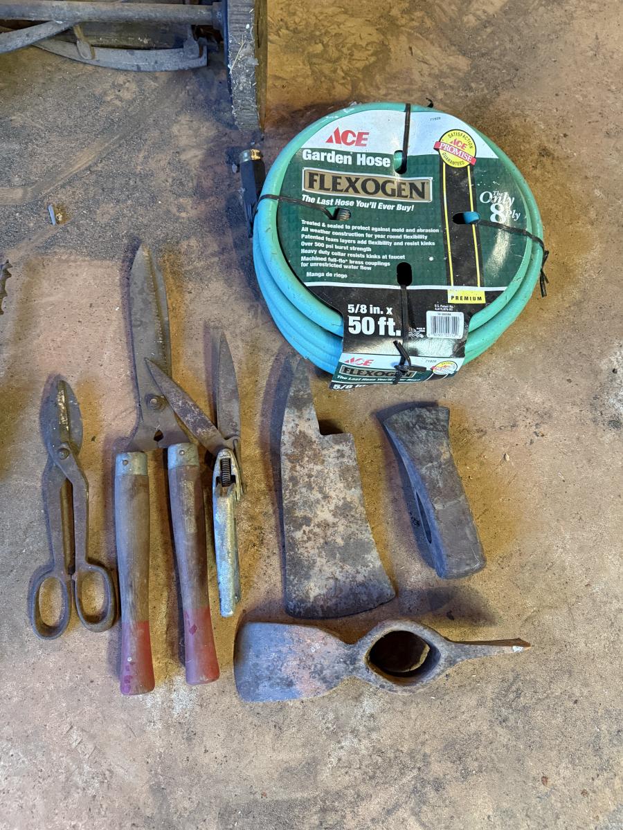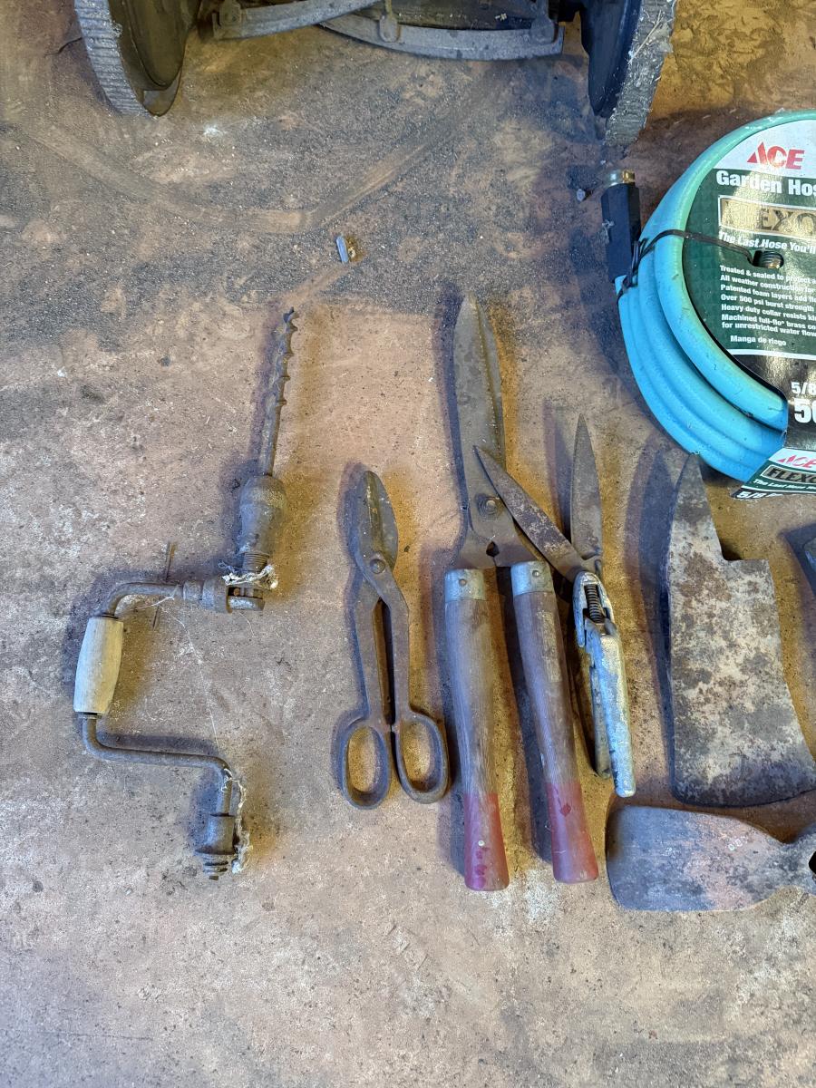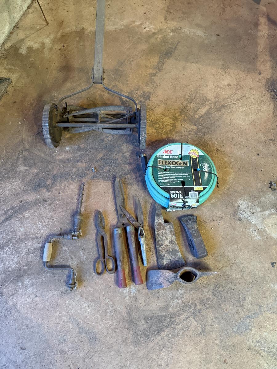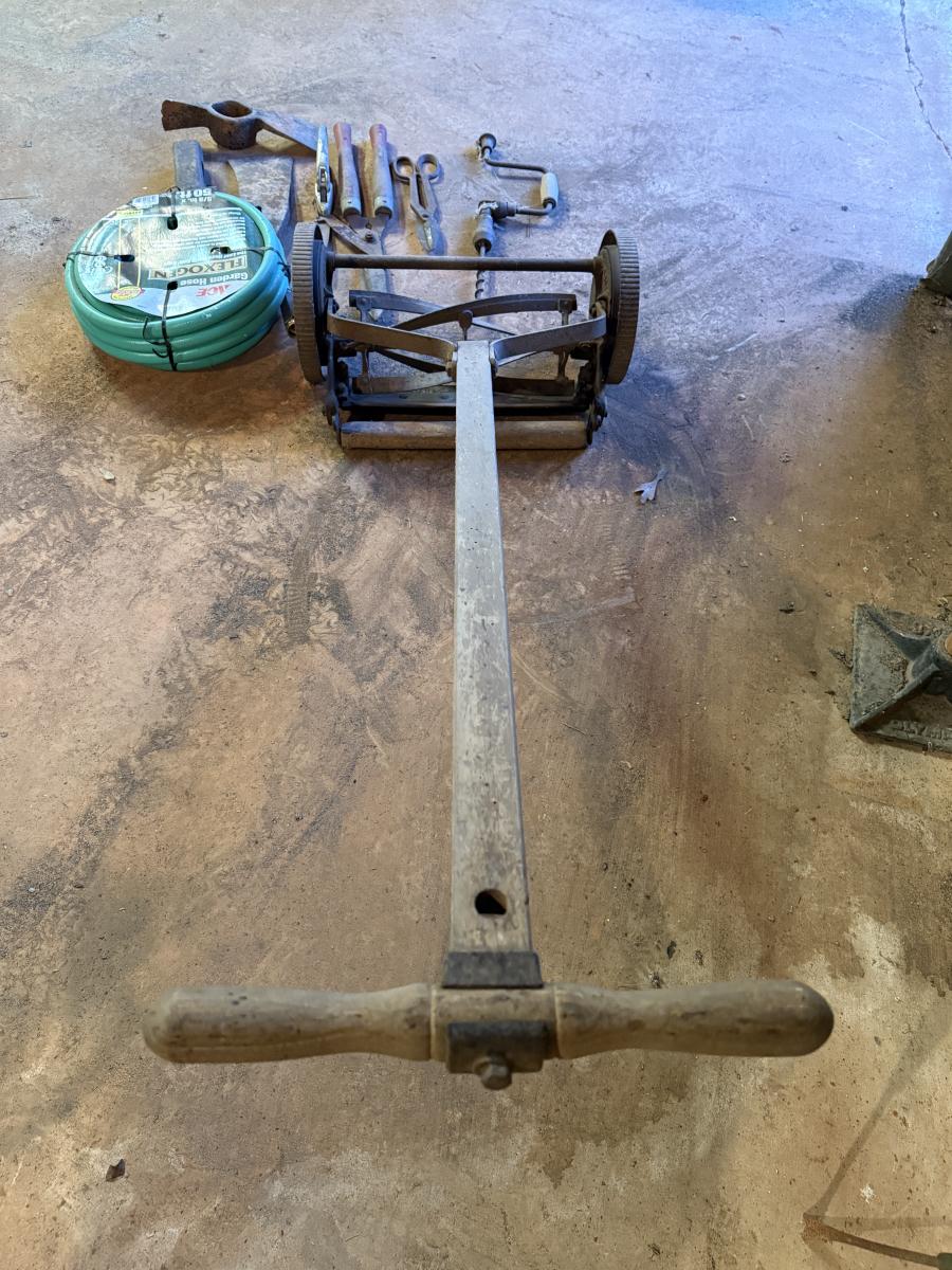 Antique Lawn Mower & Vintage Used Gardening Tools