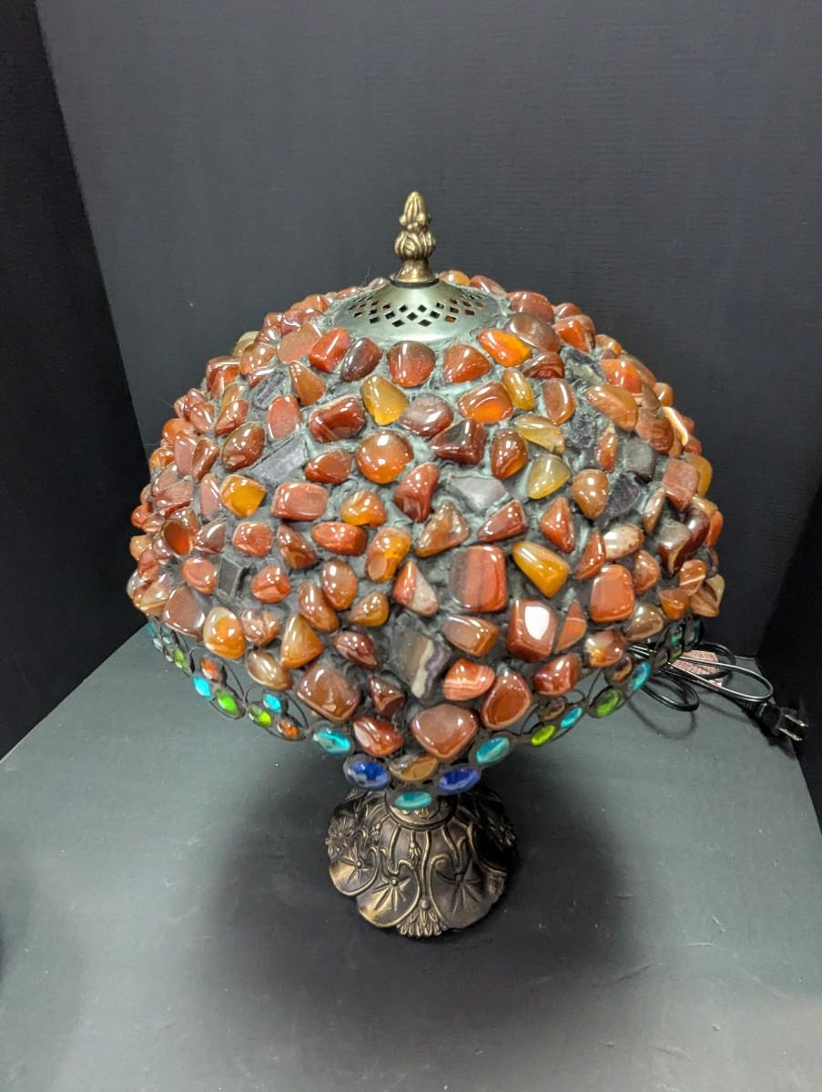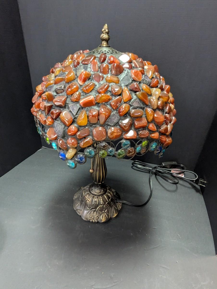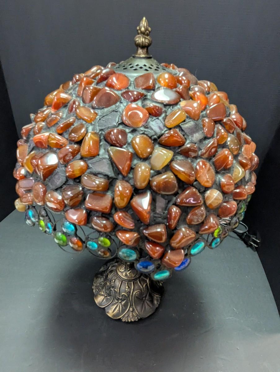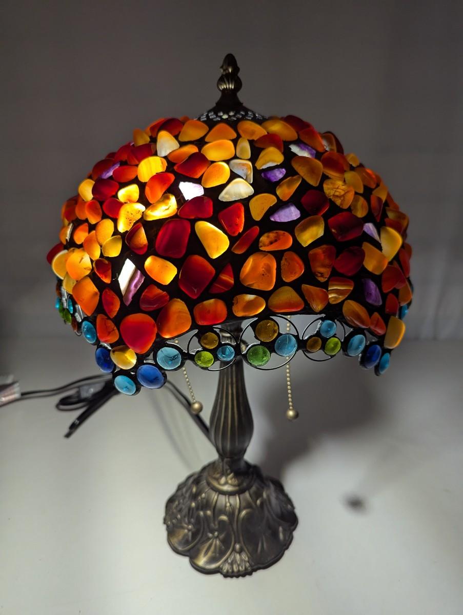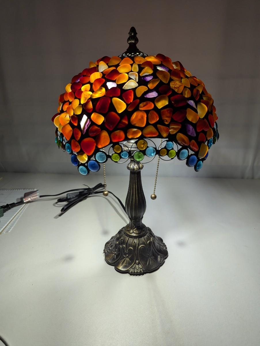 Tiffany Style Table Lamp Amber Stained Glass Agate Crystal Bead Table Lamp