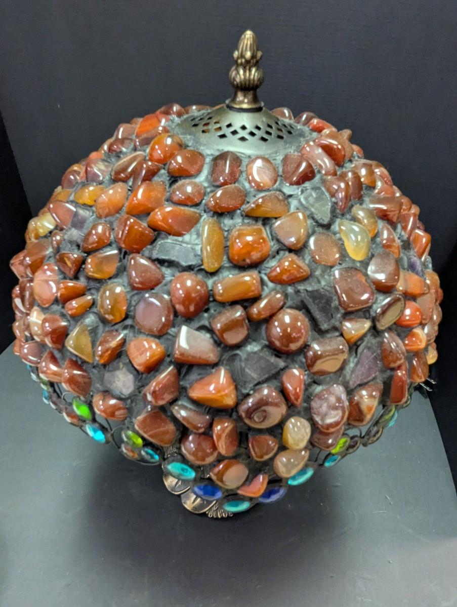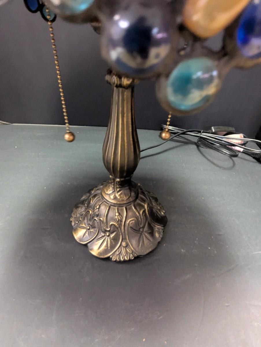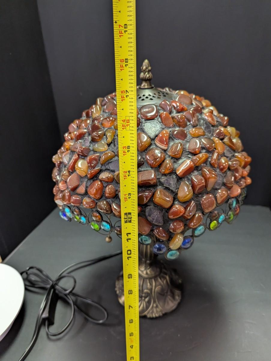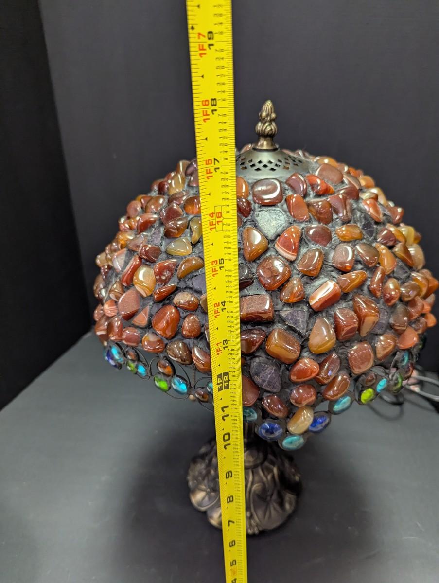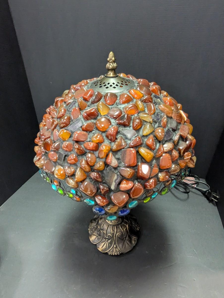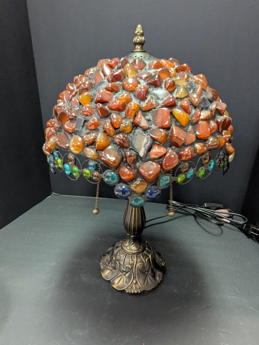 Tiffany Style Table Lamp Amber Stained Glass Agate Crystal Bead Table Lamp
