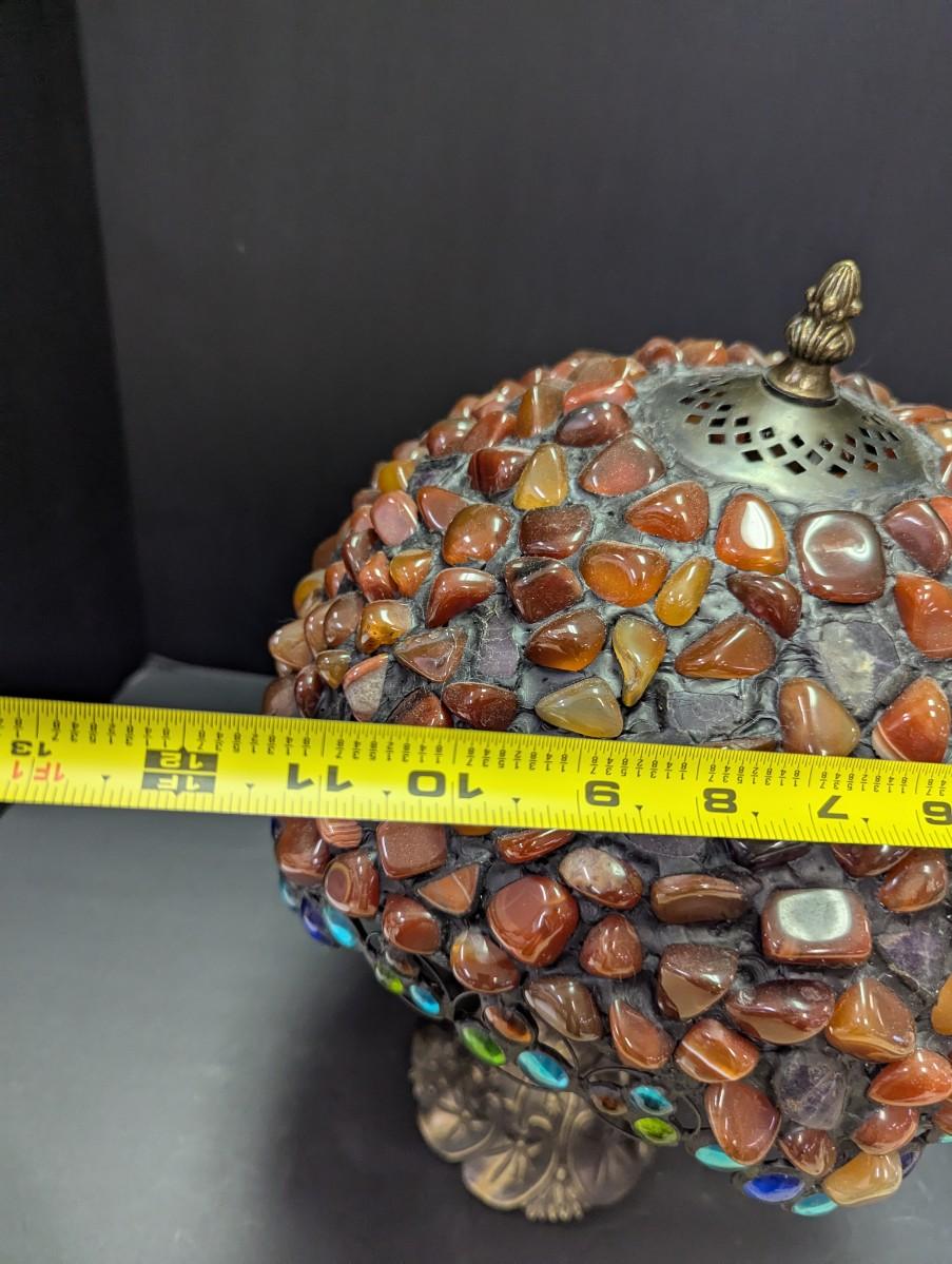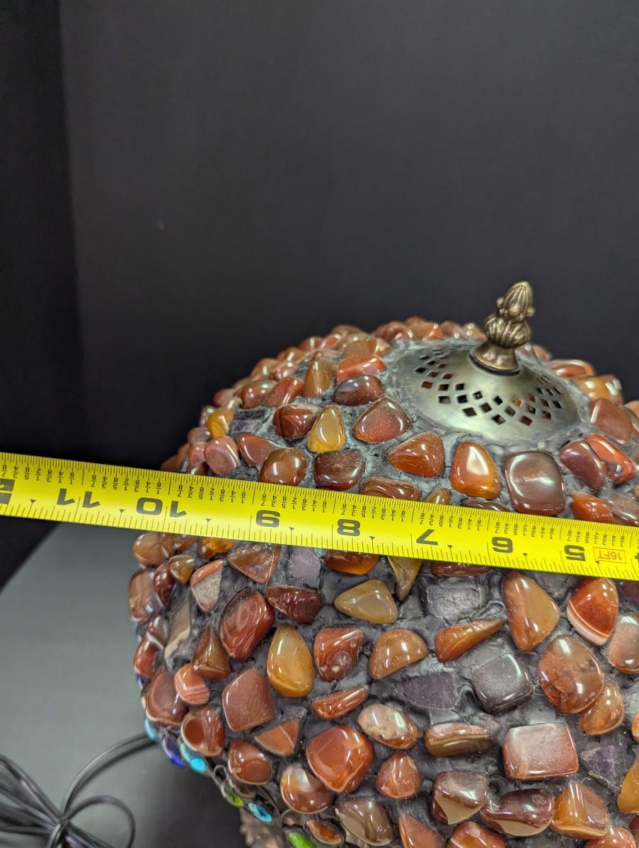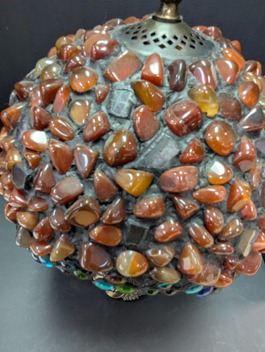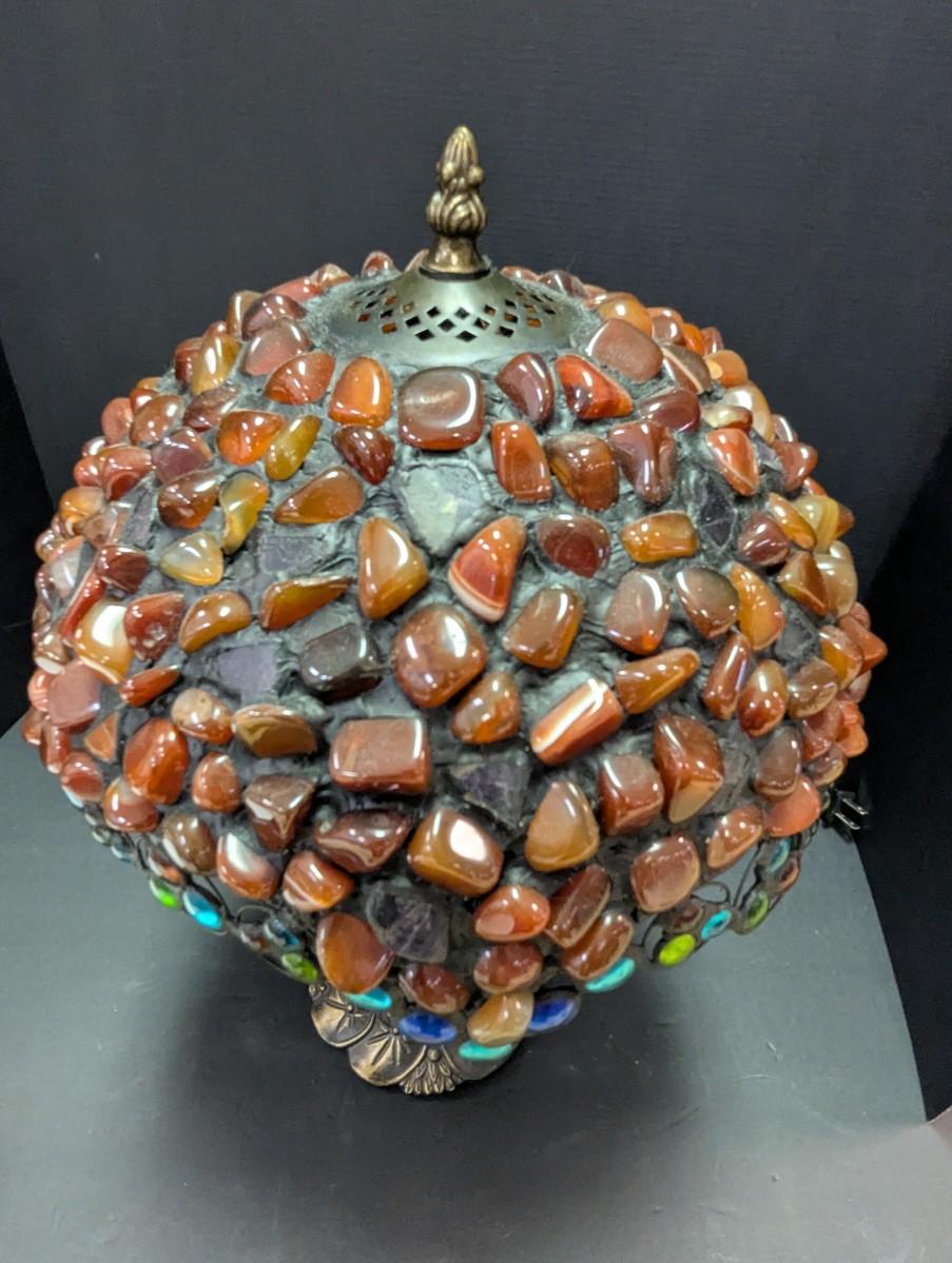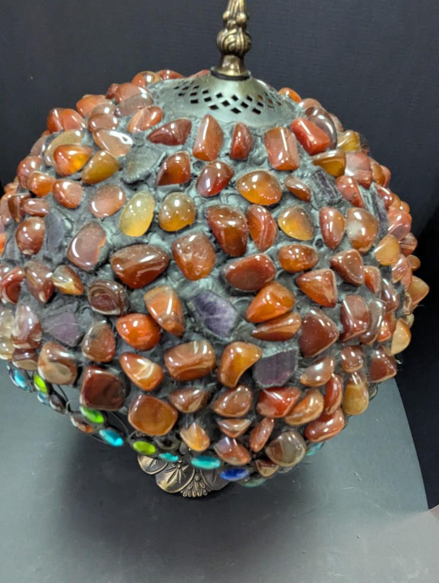 Tiffany Style Table Lamp Amber Stained Glass Agate Crystal Bead Table Lamp
