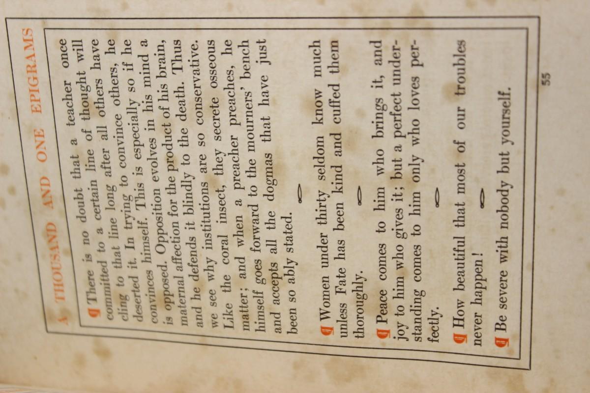 Antique Leather Cover Book A Thousand One Epigrams Selected from the Writings of Elbert Hubbard, there is some wear to the book especially the cover and spine. There is no significant tearing to the pages, check pictures for more details and for sizing.