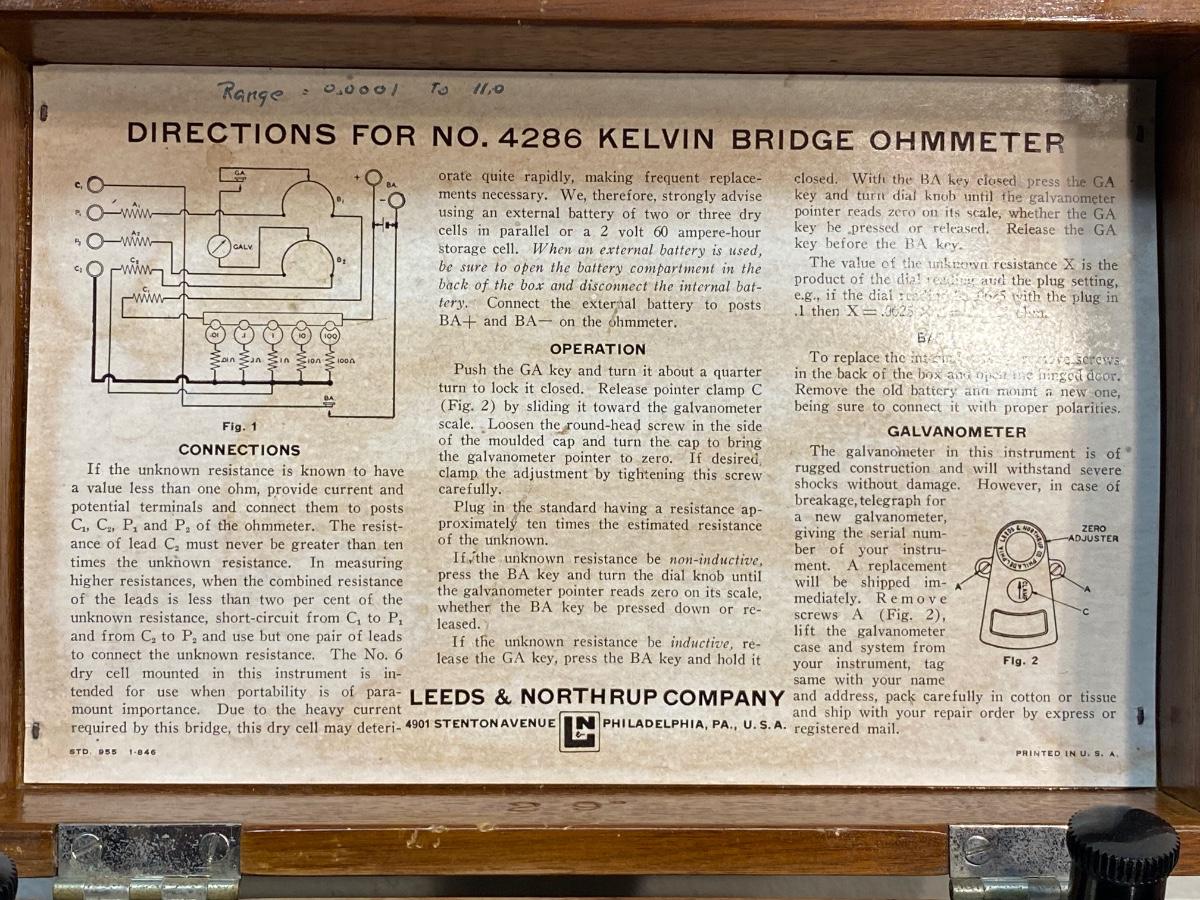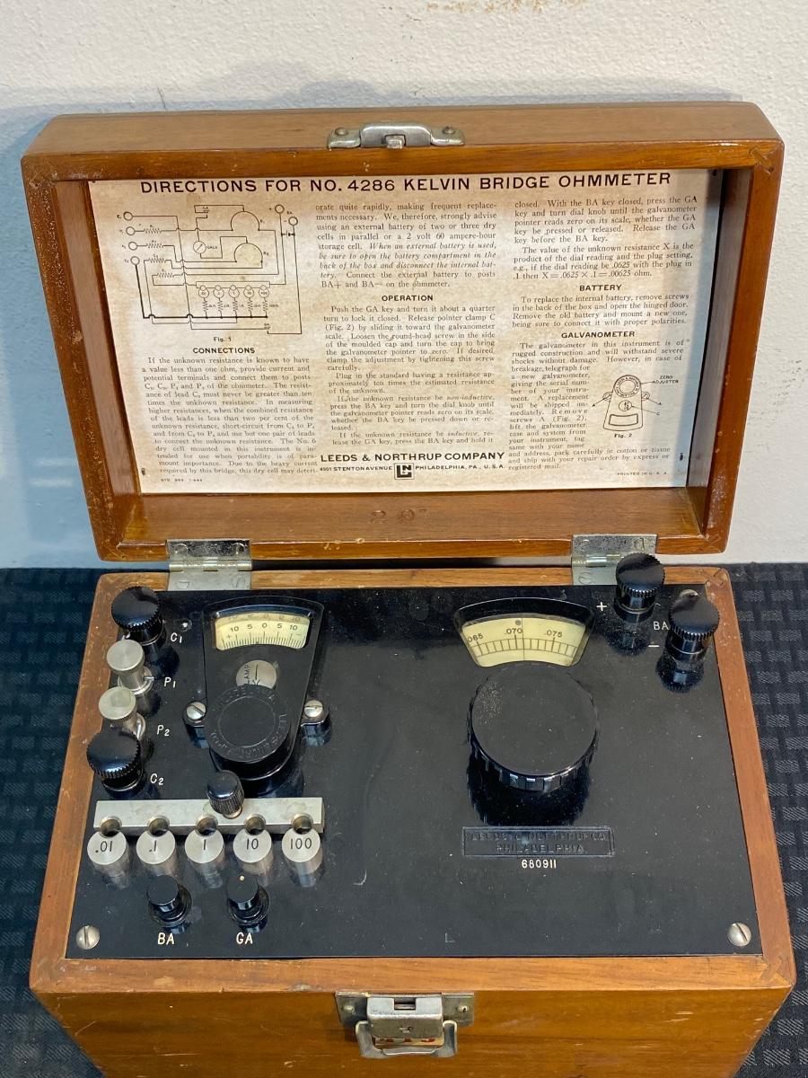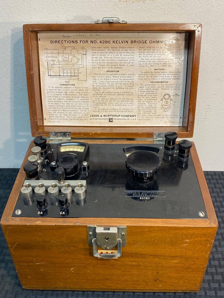 Antique Leeds & Northrup No. 4286 Kelvin Bridge Ohmmeter, there is no significant damage to the body of the ohmmeter and is in good condition. Has not been tested, check pictures for more details and for sizing.