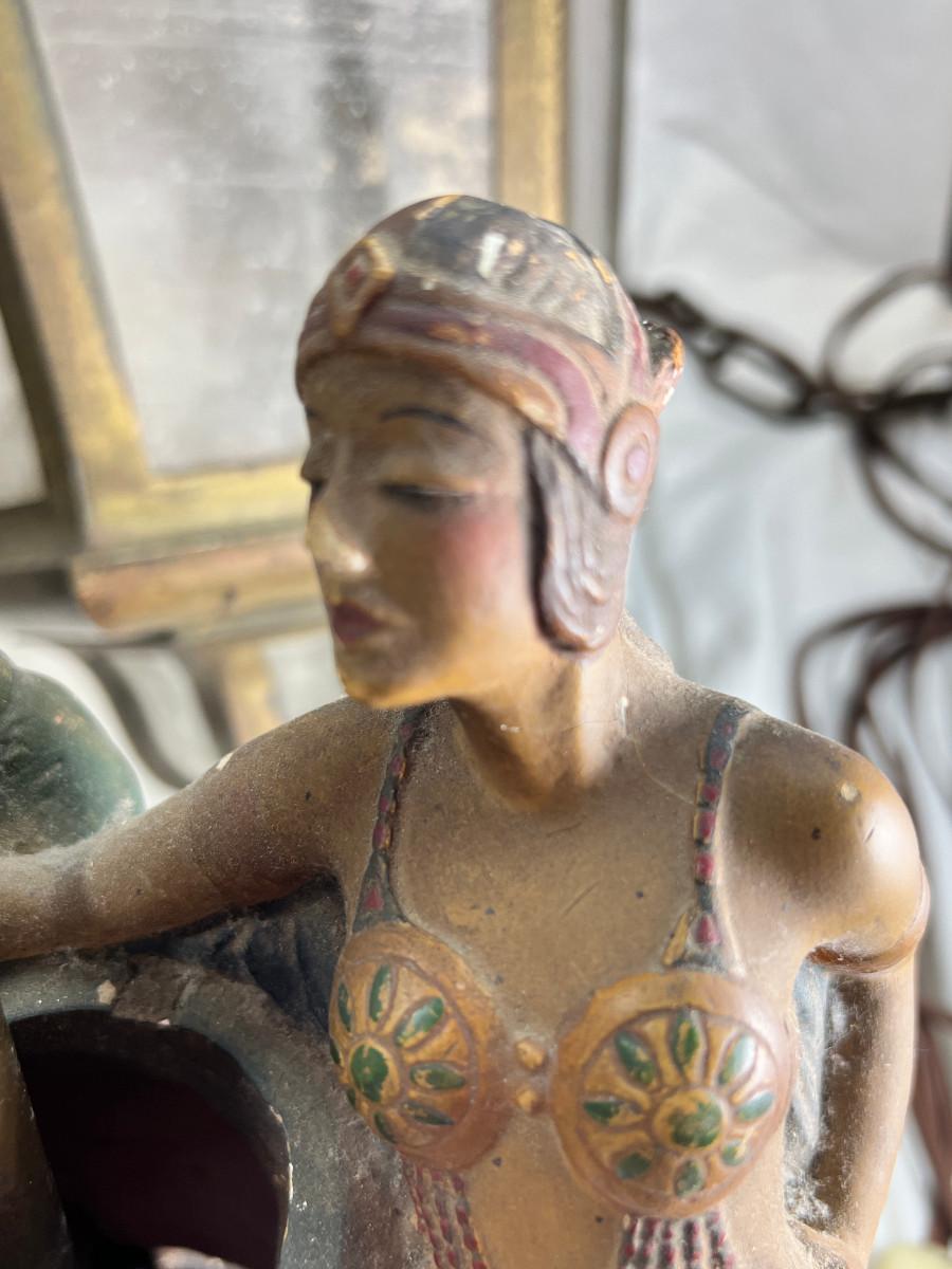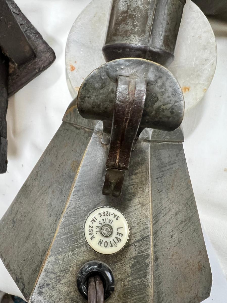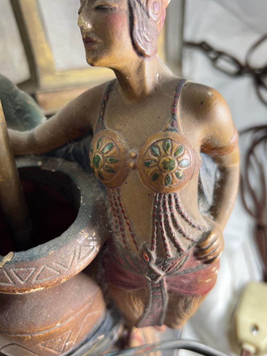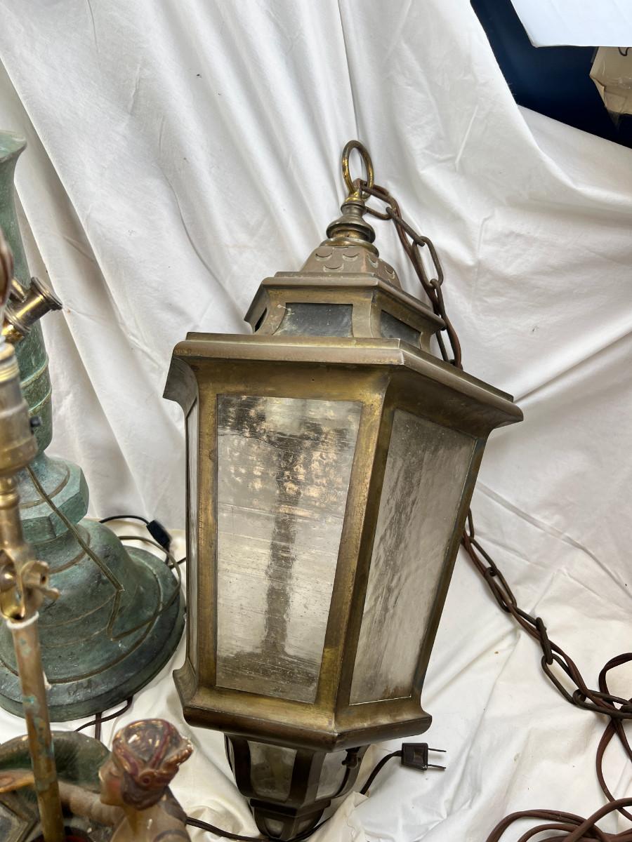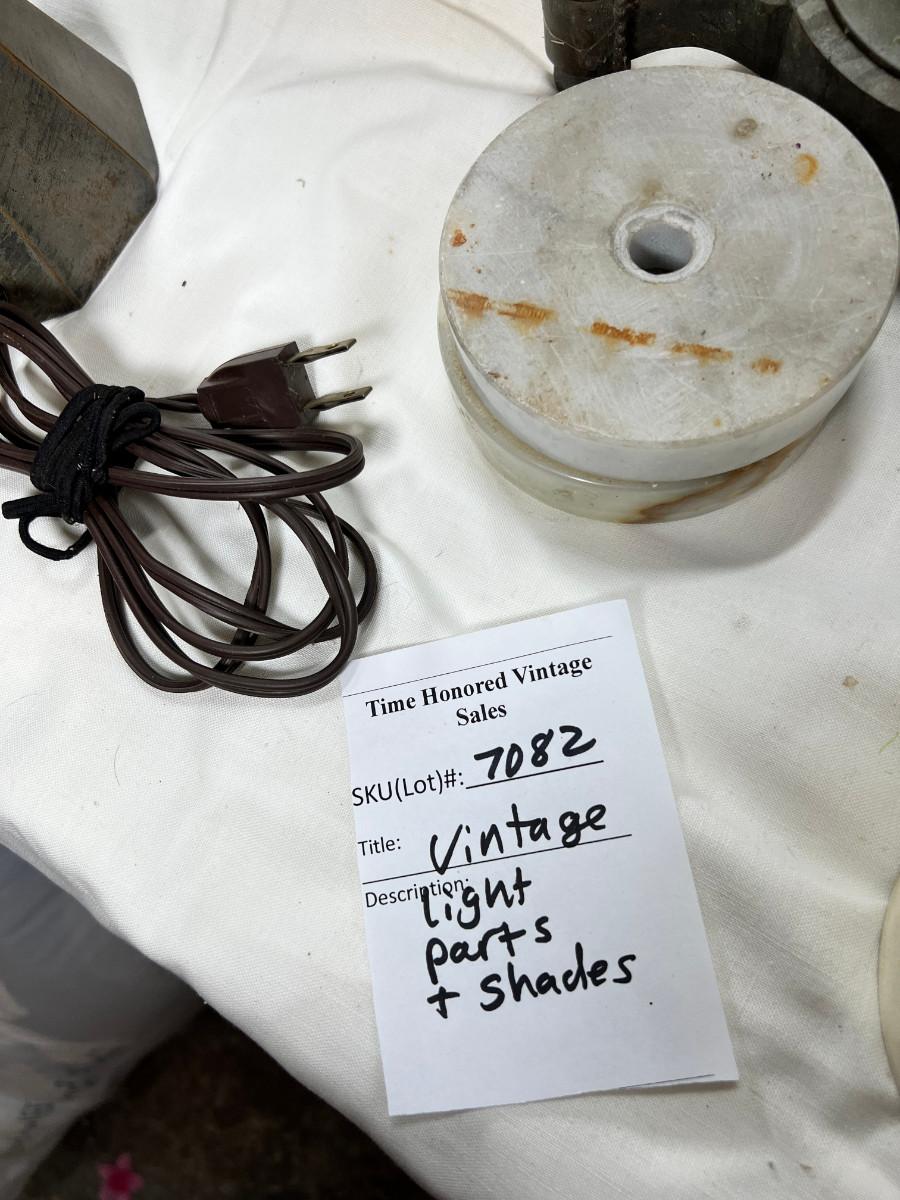 Mostly project lamps. Huge very heavy solid copper cast metal lamp.. Heavy Swag lamp, Industrial desk light. Maiden looking into the mirror lamp base. Cast Monkey light. If lamps are your hobby, or you do metal projects this is a fantastic lot! There is a marble table lamp, and a good lamp shade.. No shipping lots of heavy metal here.