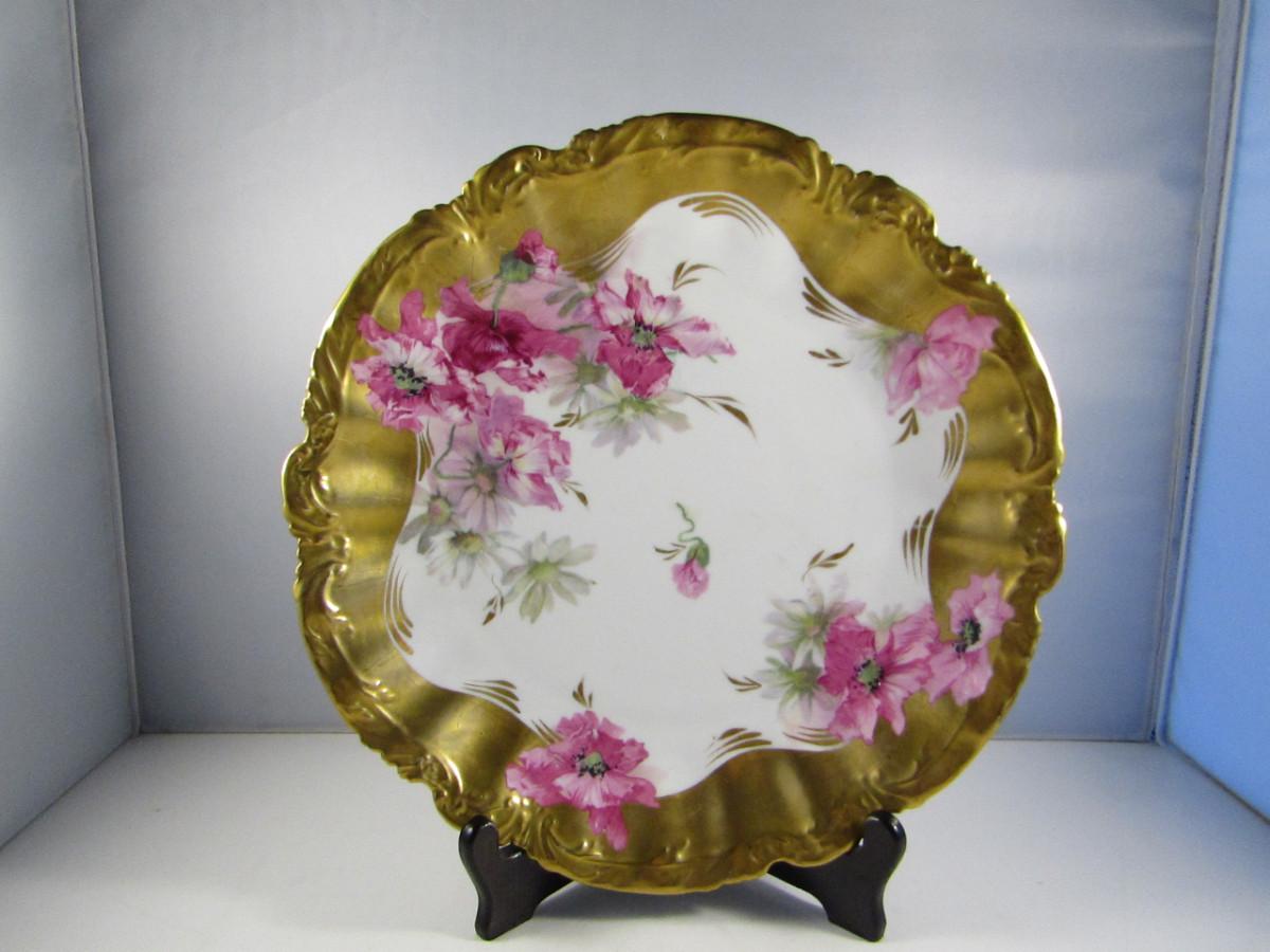 Antique Limoges Hand Painted and Gilded Porcelain Platter- Approx 11 1/4" in Diameter