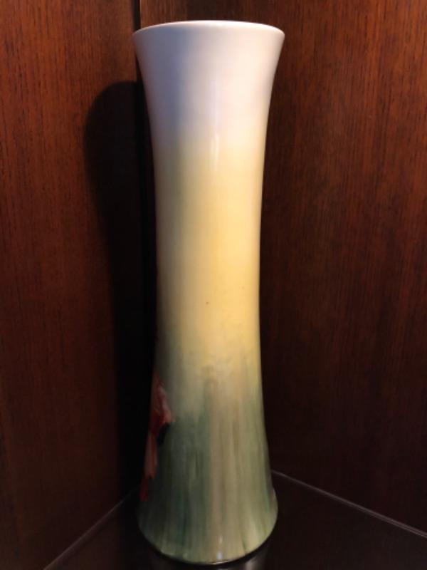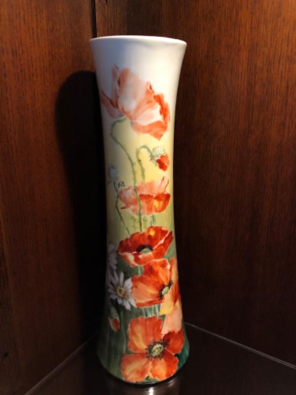 Antique 1882 Limoges Poppy Vase, handpainted at the factory by celebrated artist E. Newcomer. Excellent condition, 15.25” high x 5”dia at base and 4” dia at rim.