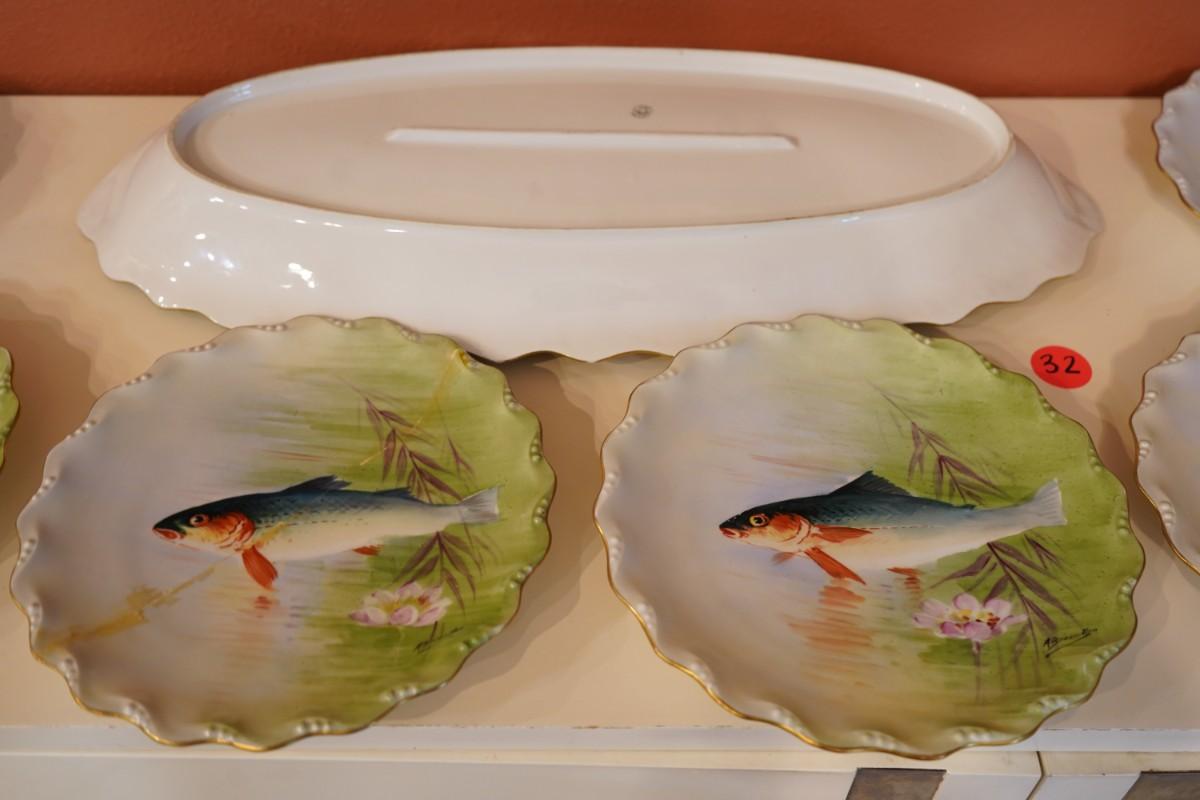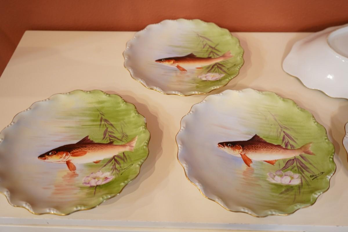 Antique Limoges Porcelain Fish Service 11 Piece Set