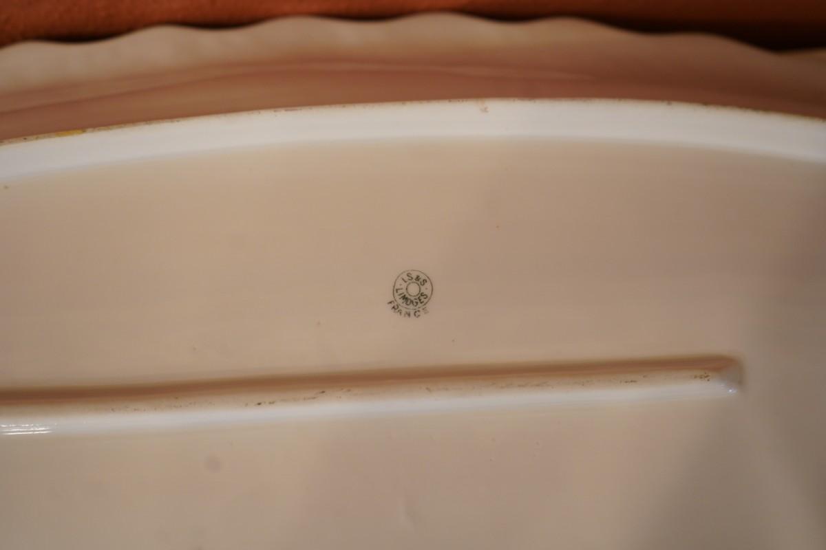 Signed LS&S (Lazarus Straus & Sons). Includes large server and 10 plates. Server - 24 L x 10.75 D. Plates - 9.5 Diameter