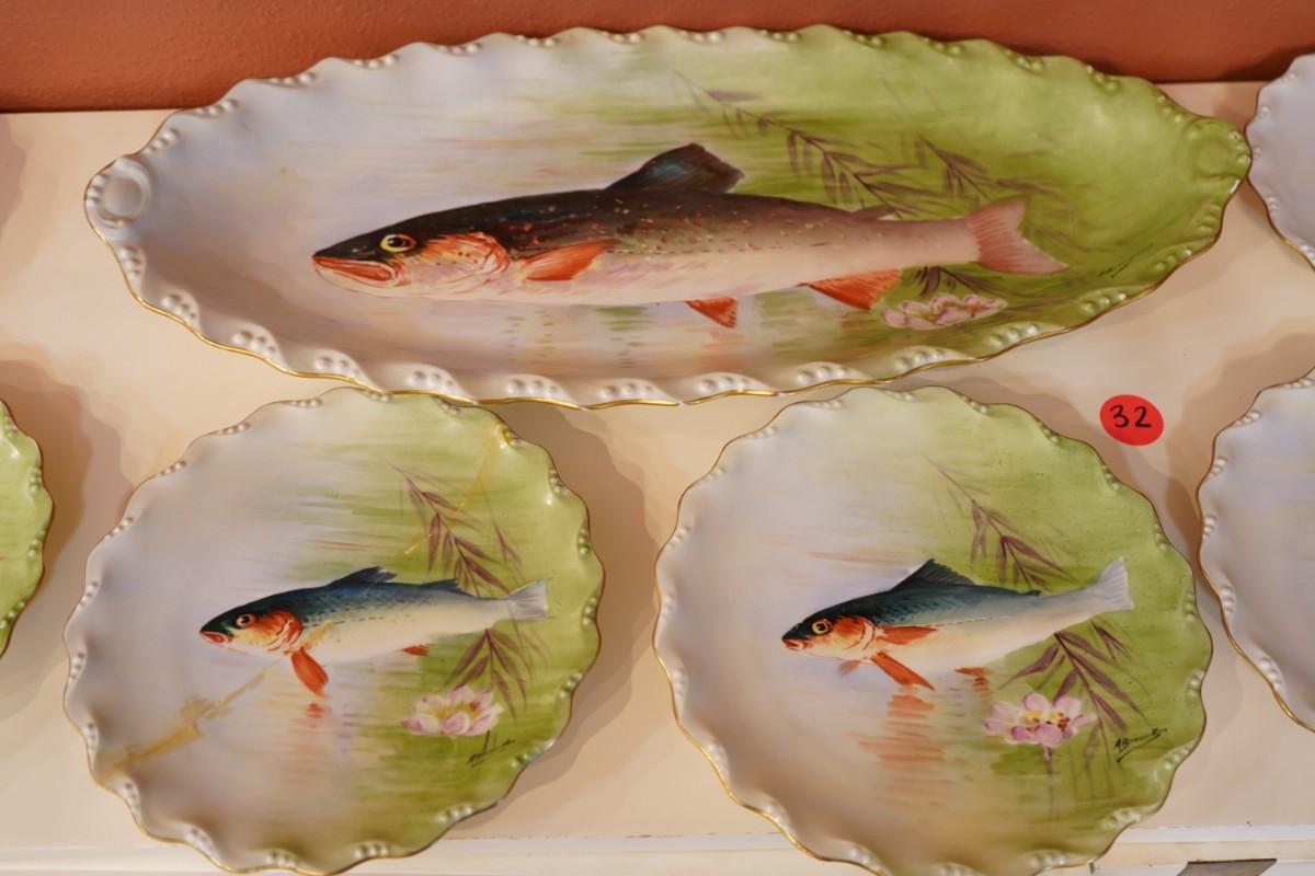 Antique Limoges Porcelain Fish Service 11 Piece Set