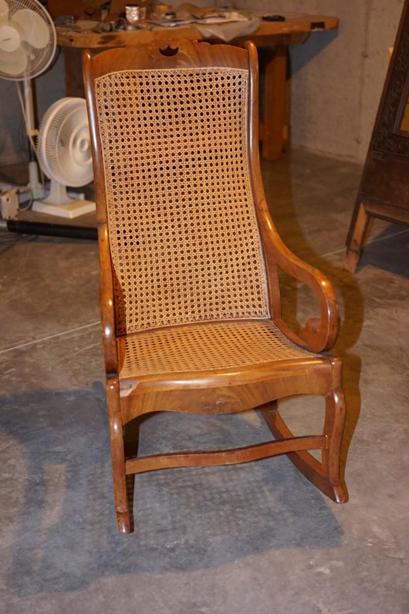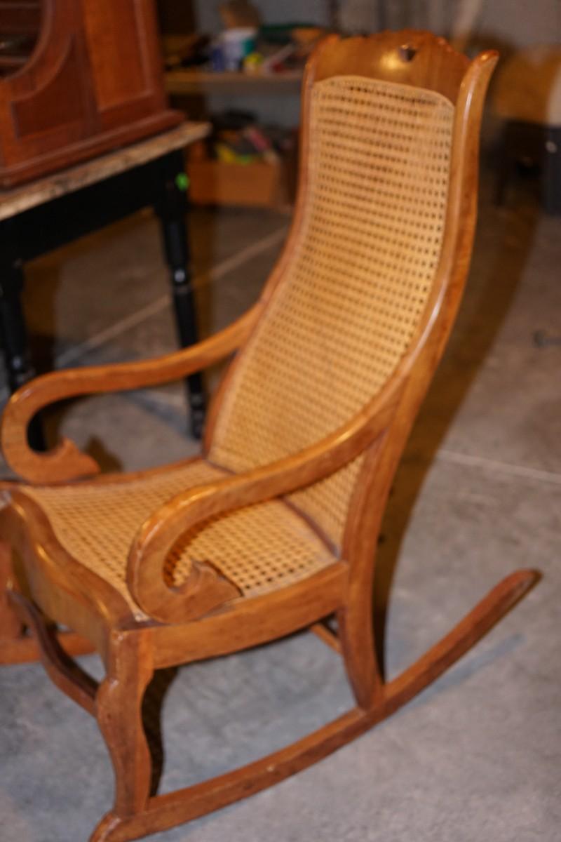 ANTIQUE LINCOLN STYLE CANED ROCKER
