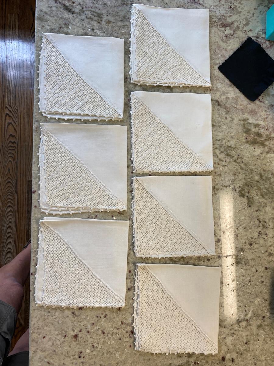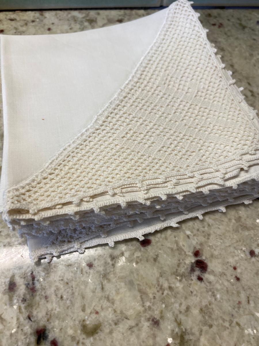 Antique Linen and Crochet fine Handtatted Napkins