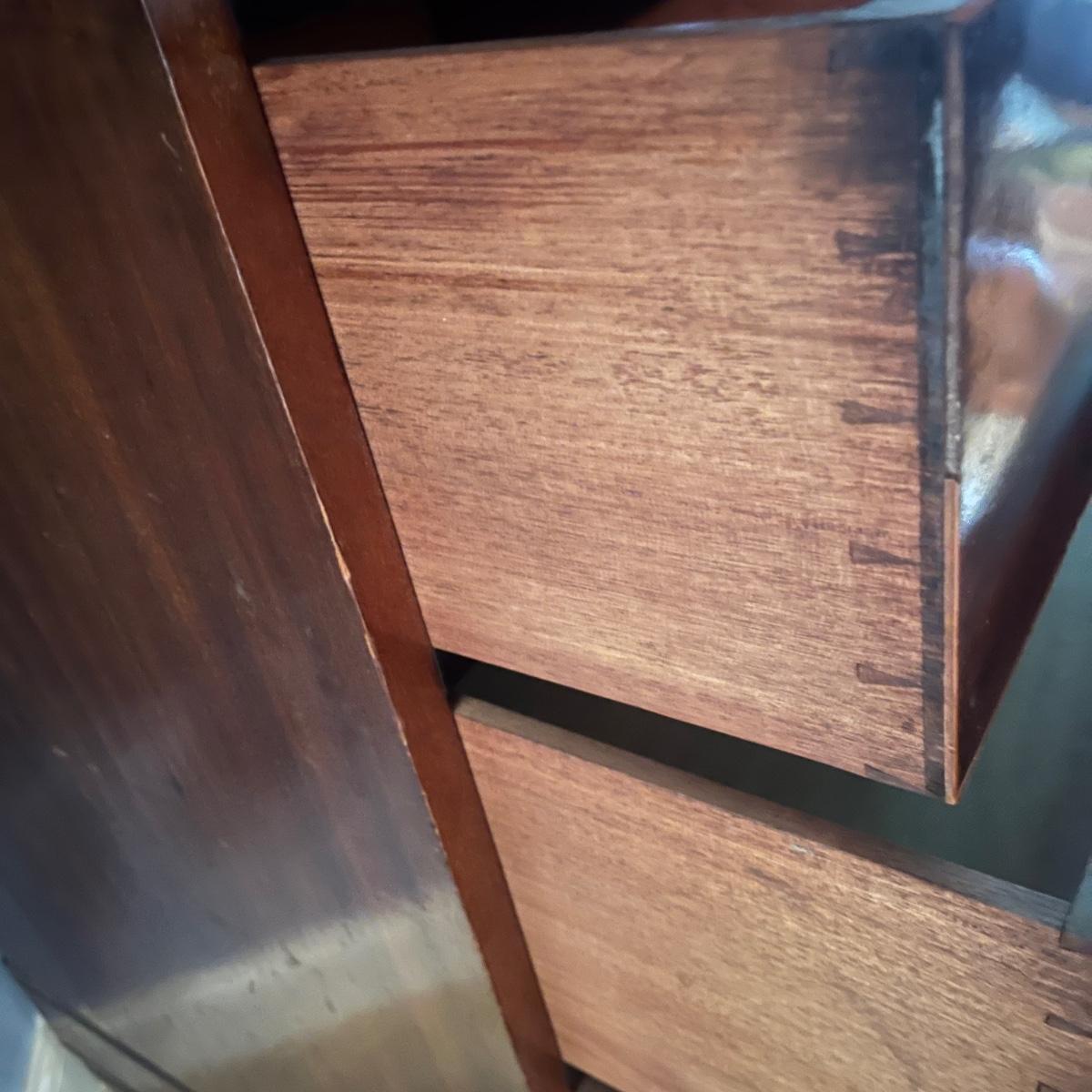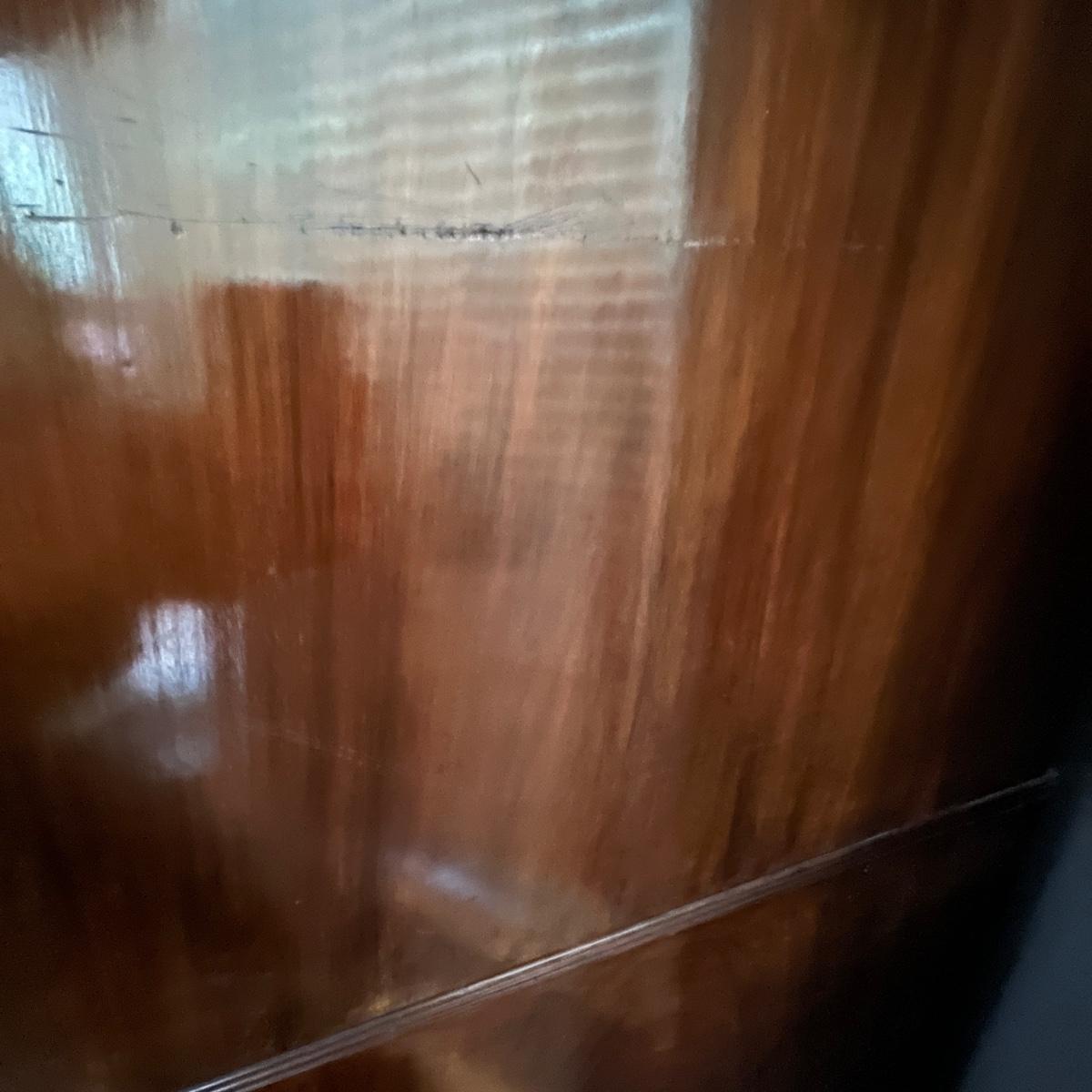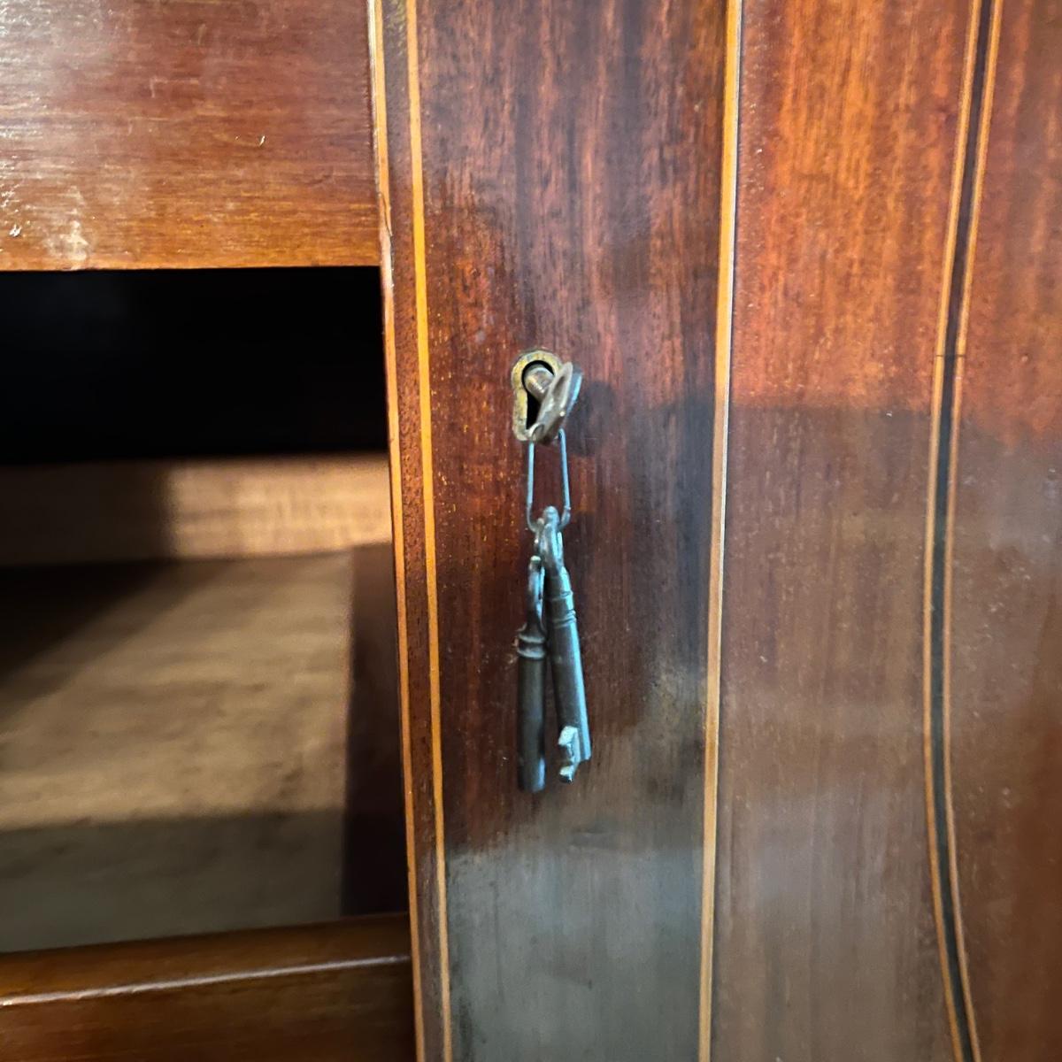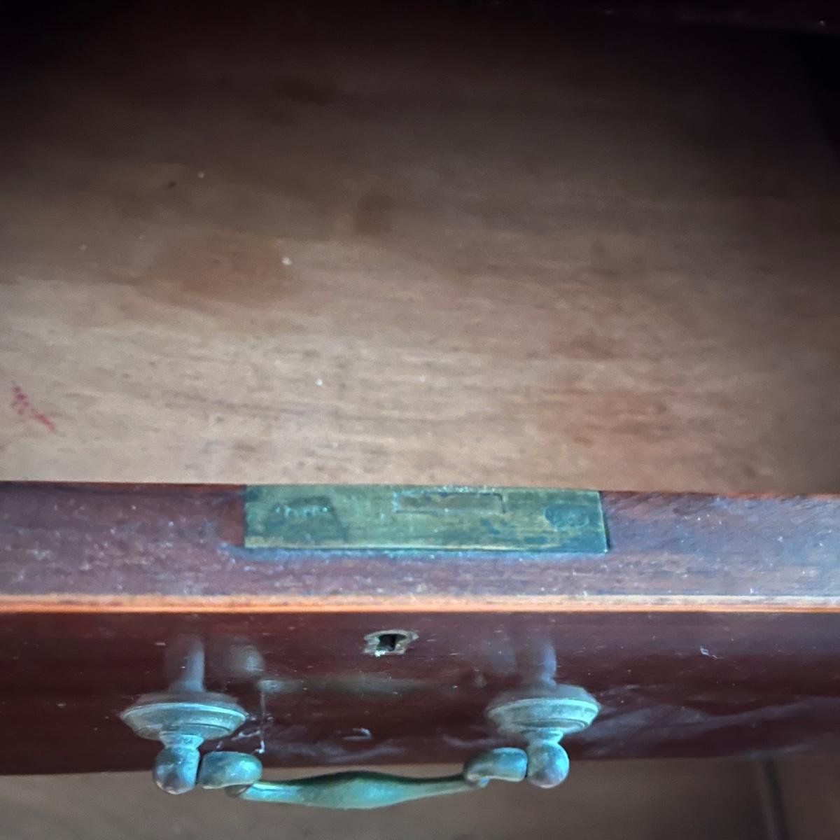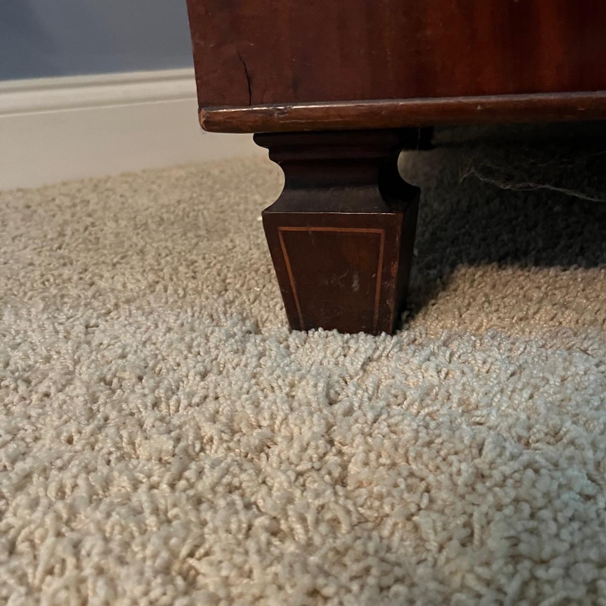 Lot includes an antique linen press that has four dovetailed drawers on the bottom and four drawers behind the cabinet doors. Appears to be a one piece unit. Includes keys. Estate owner states item is from England and over 200 years old but we cannot verify this. Item measures 48” x 24” x 78.5”H. Piece has gouge on side, see pictures and one leg is not attached.
