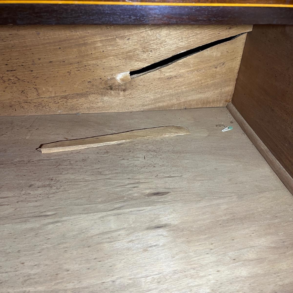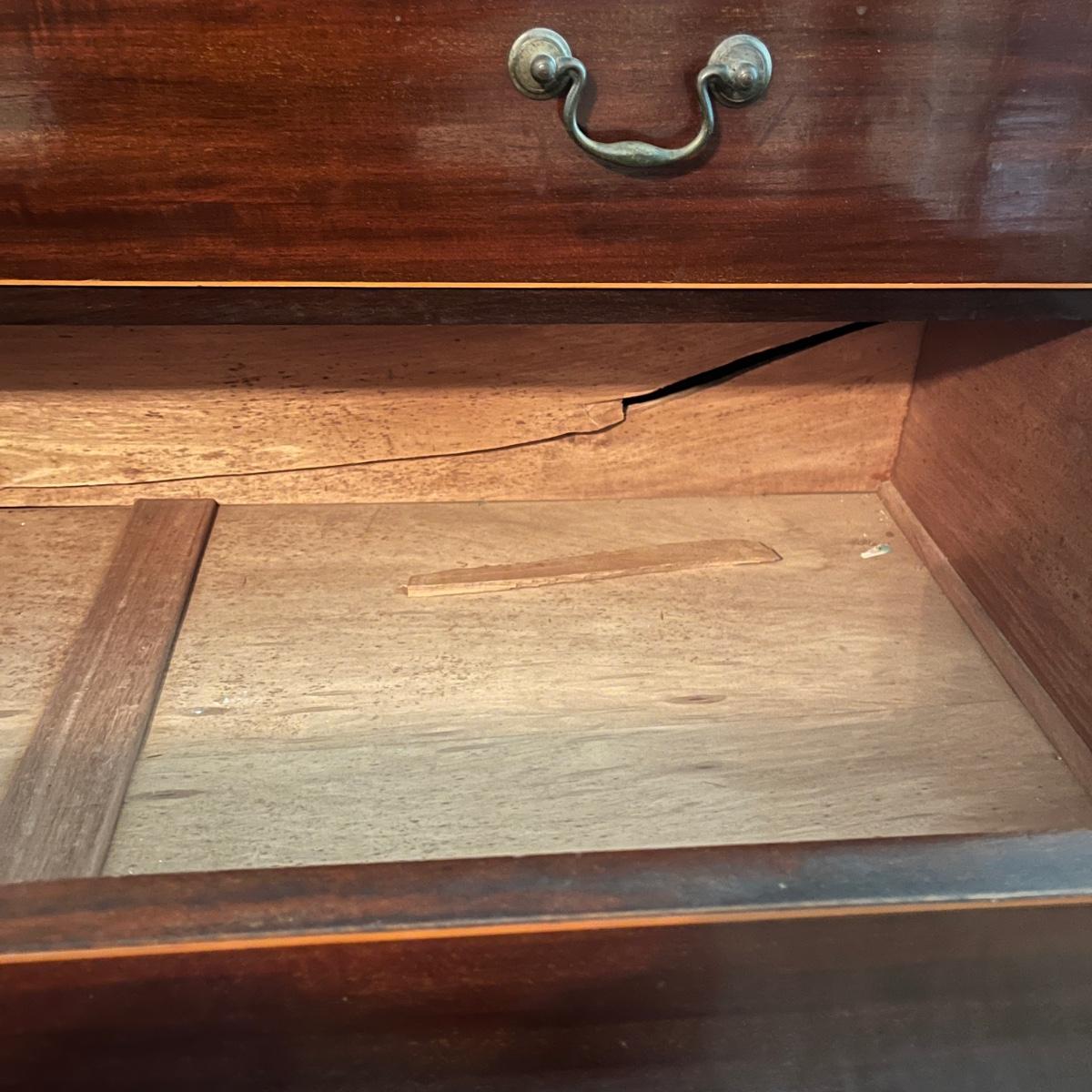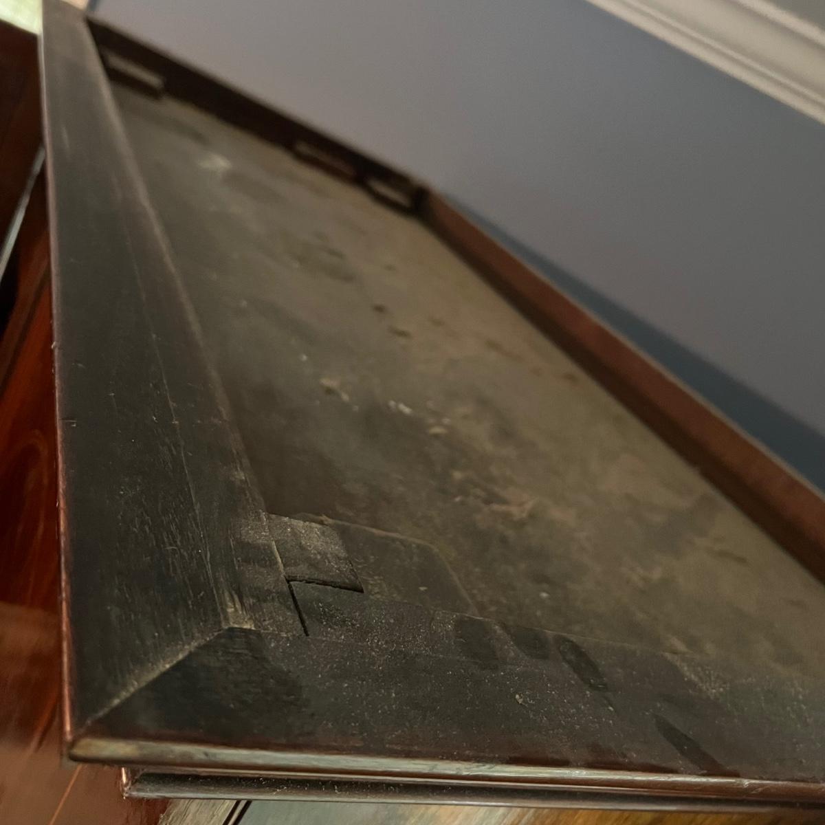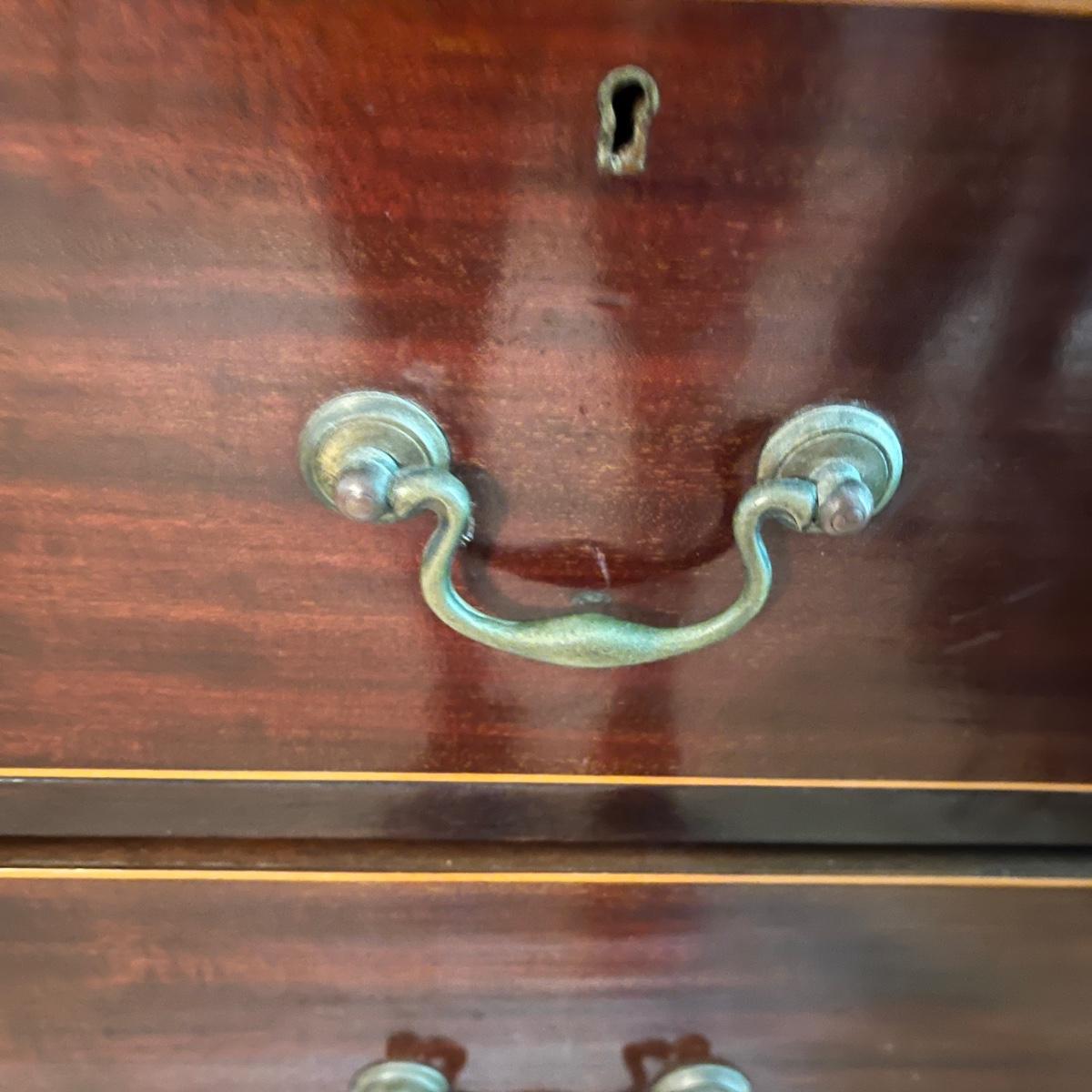 Lot includes an antique linen press that has four dovetailed drawers on the bottom and four drawers behind the cabinet doors. Appears to be a one piece unit. Includes keys. Estate owner states item is from England and over 200 years old but we cannot verify this. Item measures 48” x 24” x 78.5”H. Piece has gouge on side, see pictures and one leg is not attached.