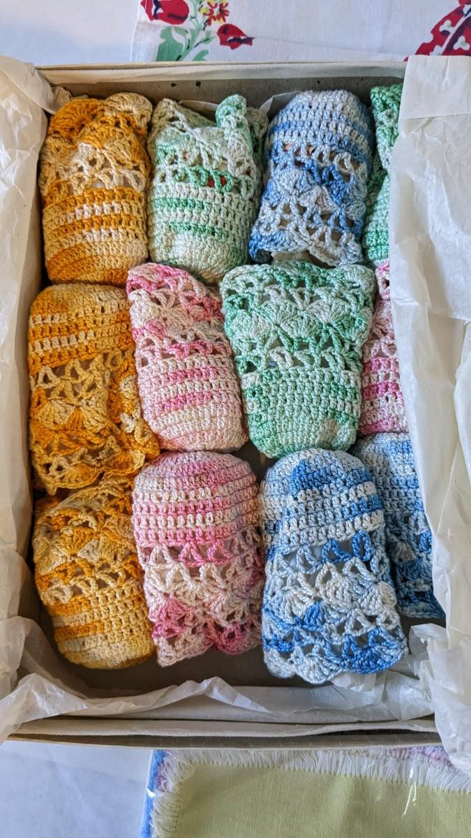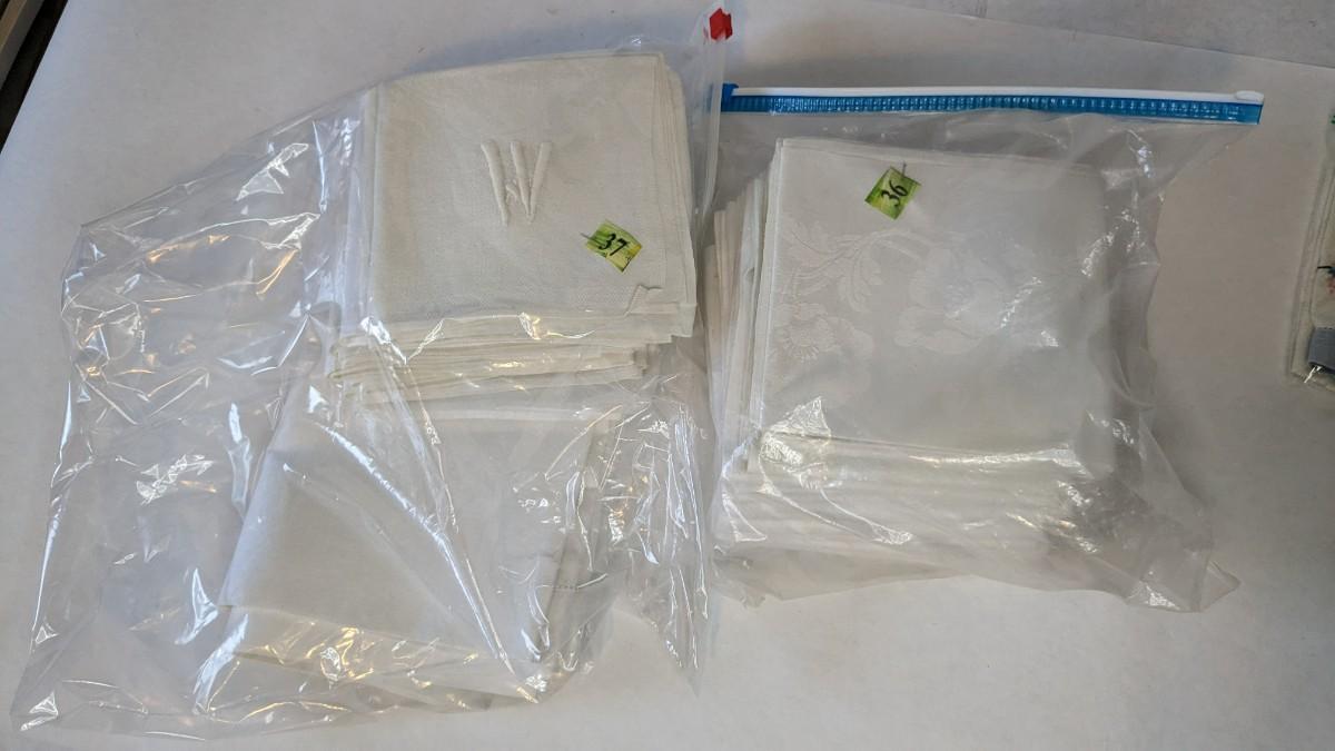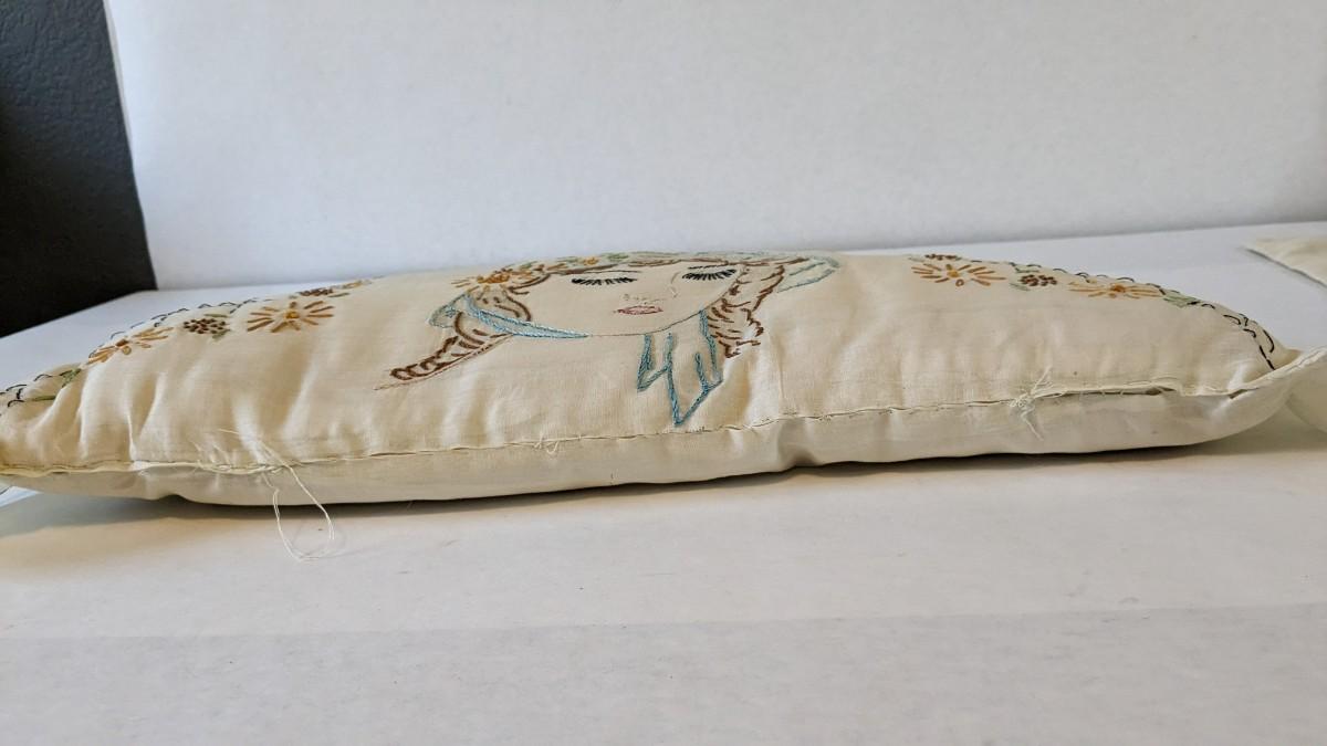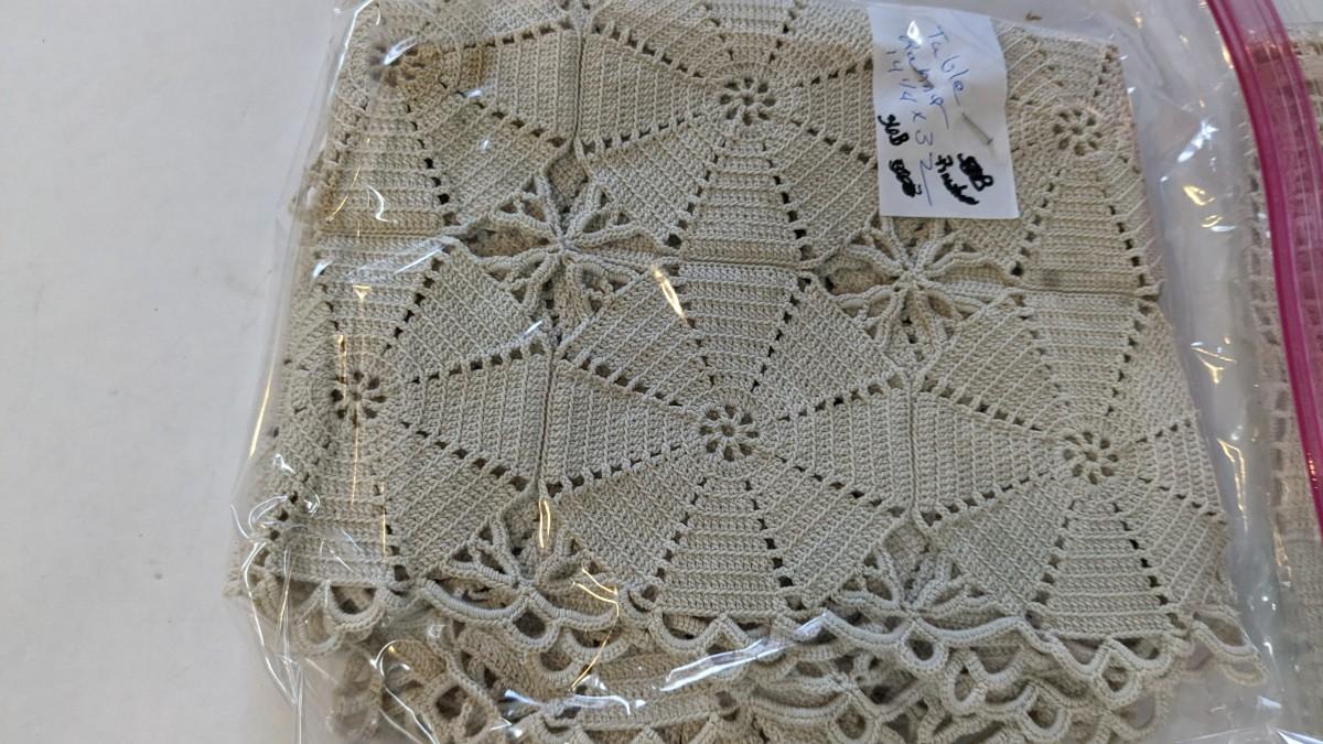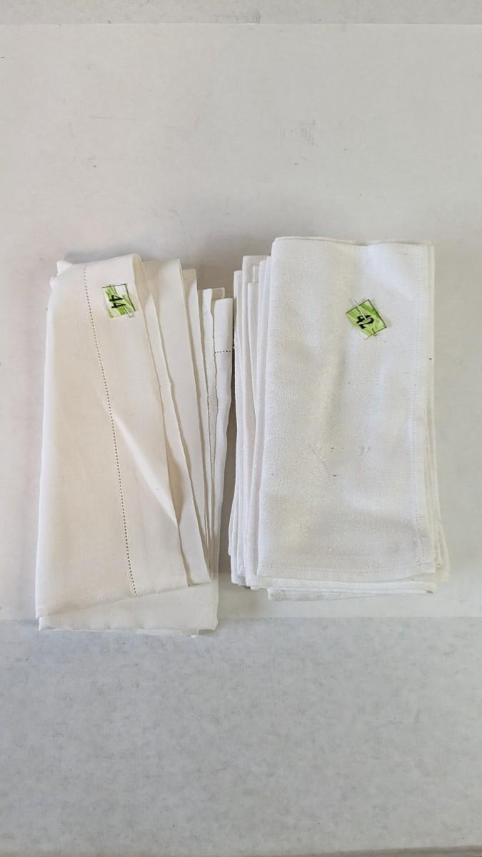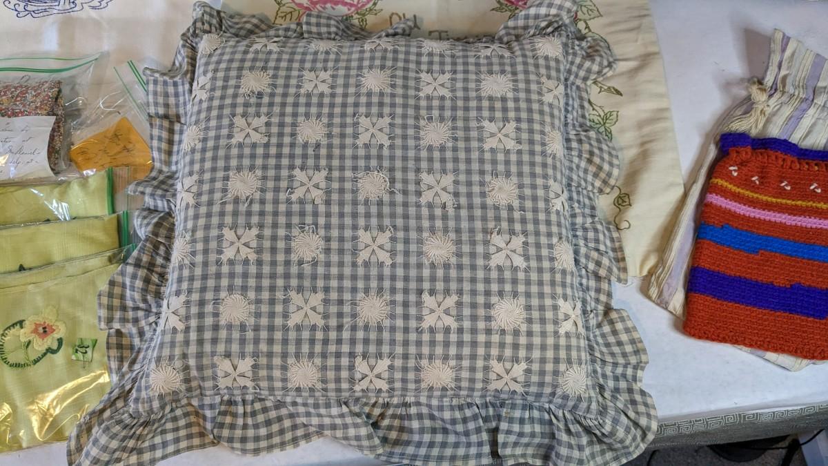Includes pillows, pillow cases, napkins, tea towels, table clothes, fun little soda koozies, laundry bags, a lovely mix of cotton, satin, silk, and more. Also includes a few lace pieces that appear to be table runners. A really incredible assortment.