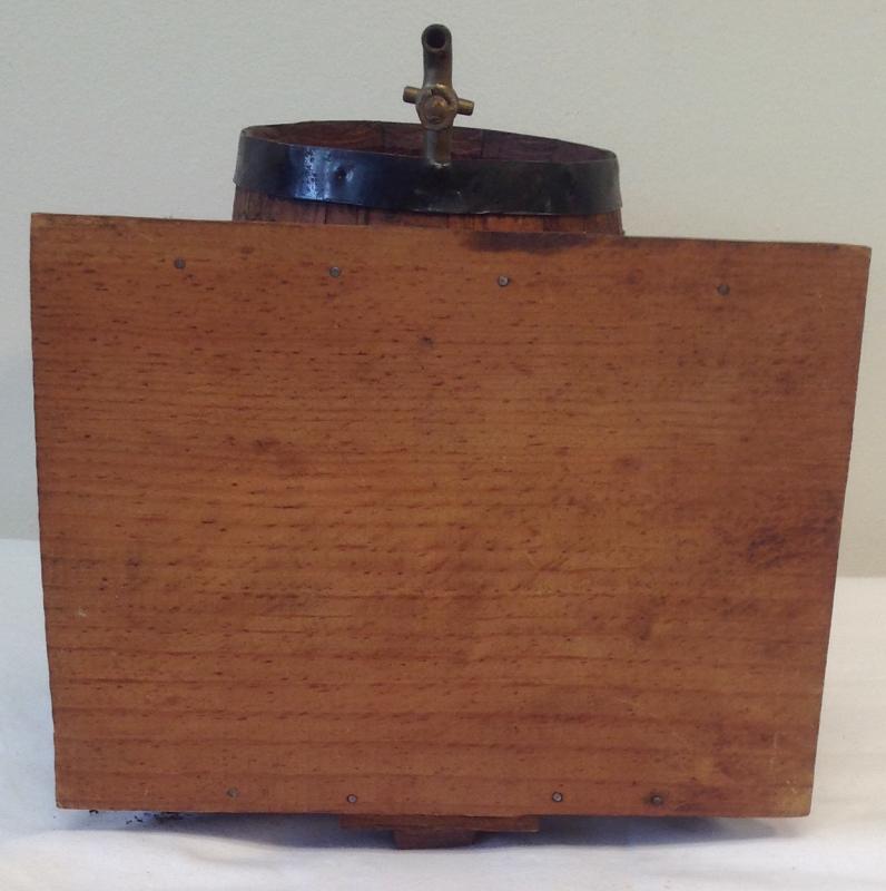 Antique Liquid Juarez Mexican Liquor Barrel with spout and base stand. Measurement approximate with stand: 5 H X 7 L X 8 W . Shipping cost: $20.00 excluding Hawaii, Alaska & California