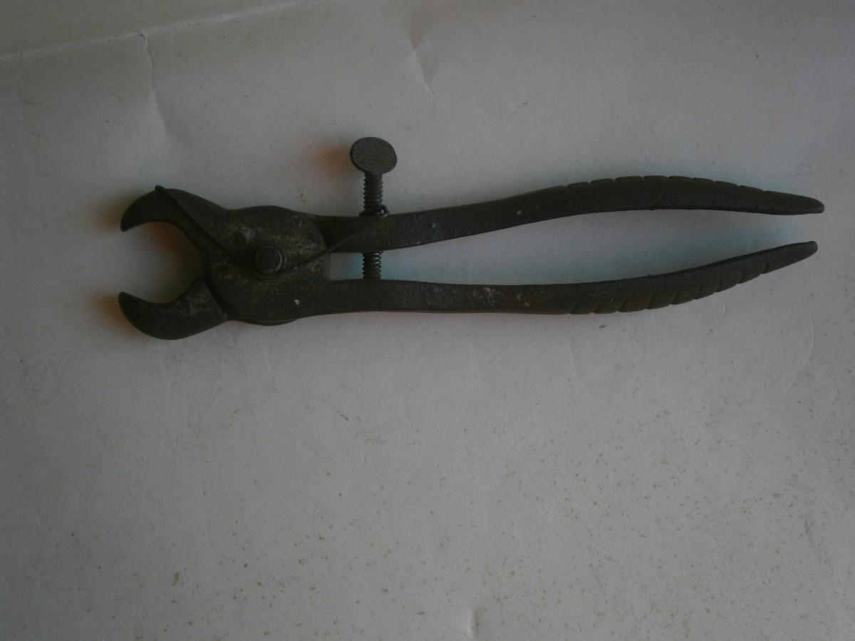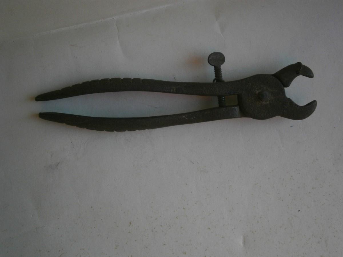 Unusual Patented Antique Locking Plyer Type Tool, signed DE NEUI, cast iron with steel spring, 7 in. tall.