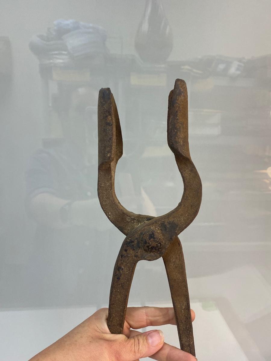 Antique Long Handled Blacksmith Curved Nose Forging Tongs