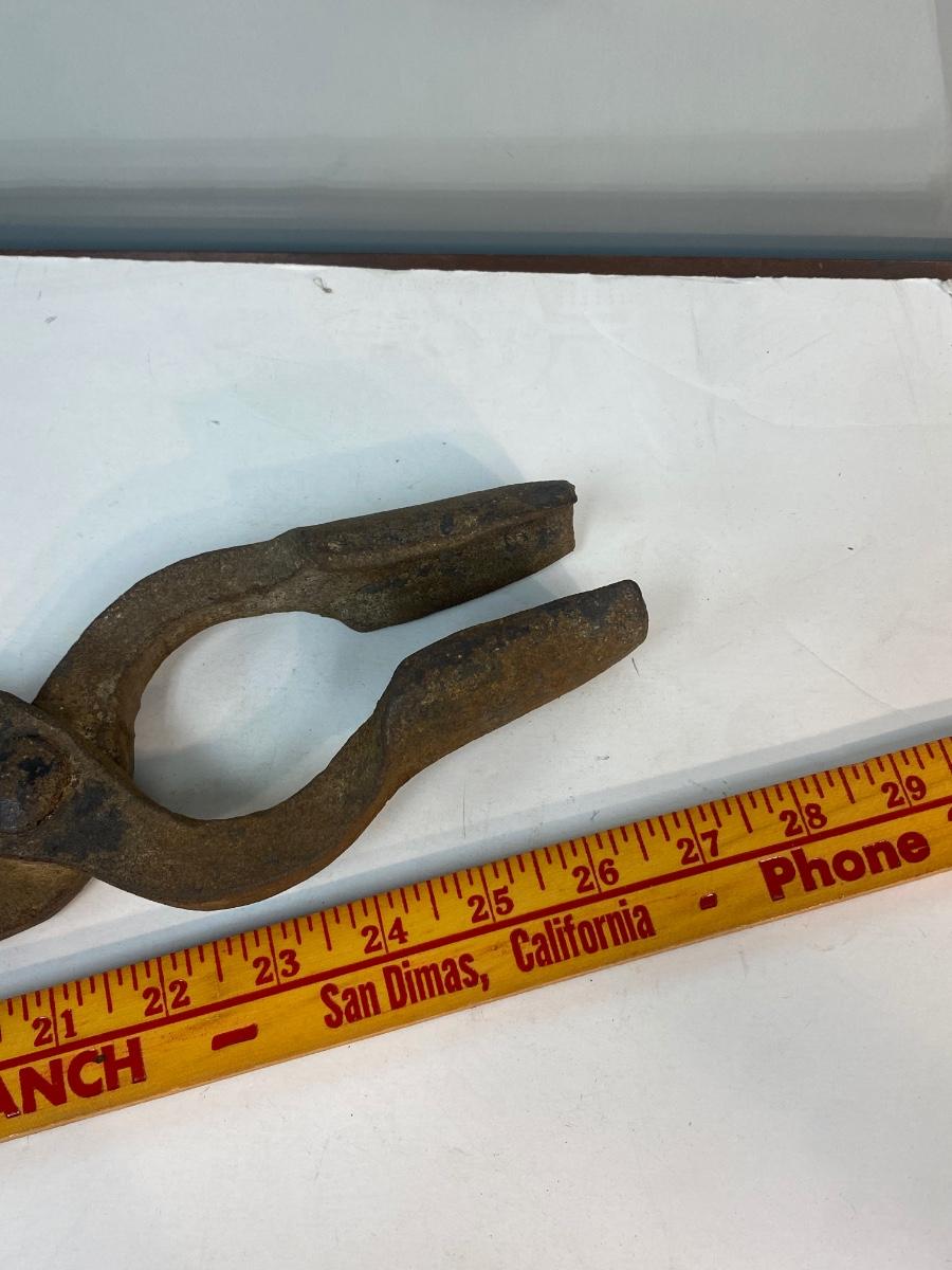 Antique Long Handled Blacksmith Curved Nose Forging Tongs. In good condition. About 28" length.