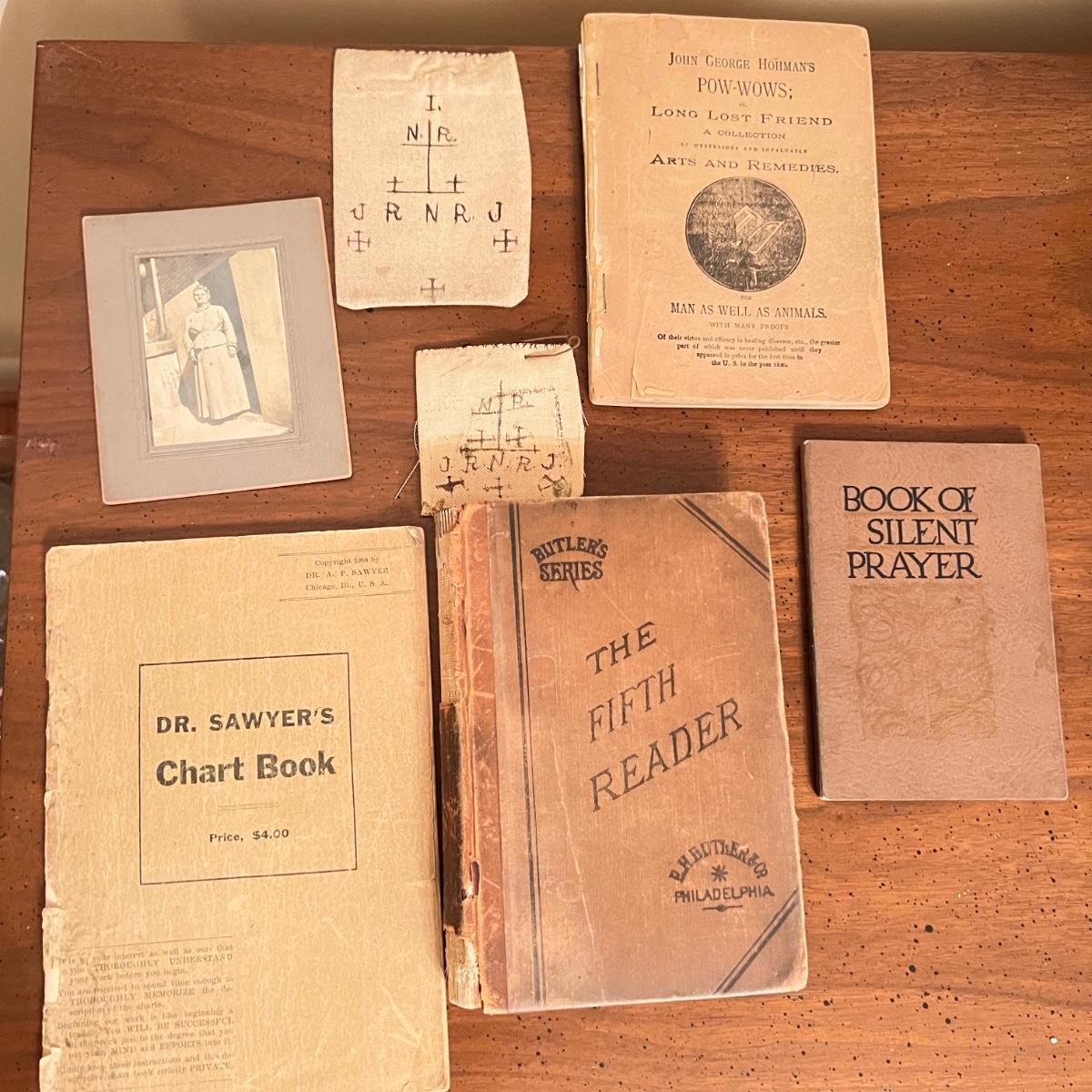 Interesting Antique Lot - Booklets, Photo, Writings Encased in Fabric