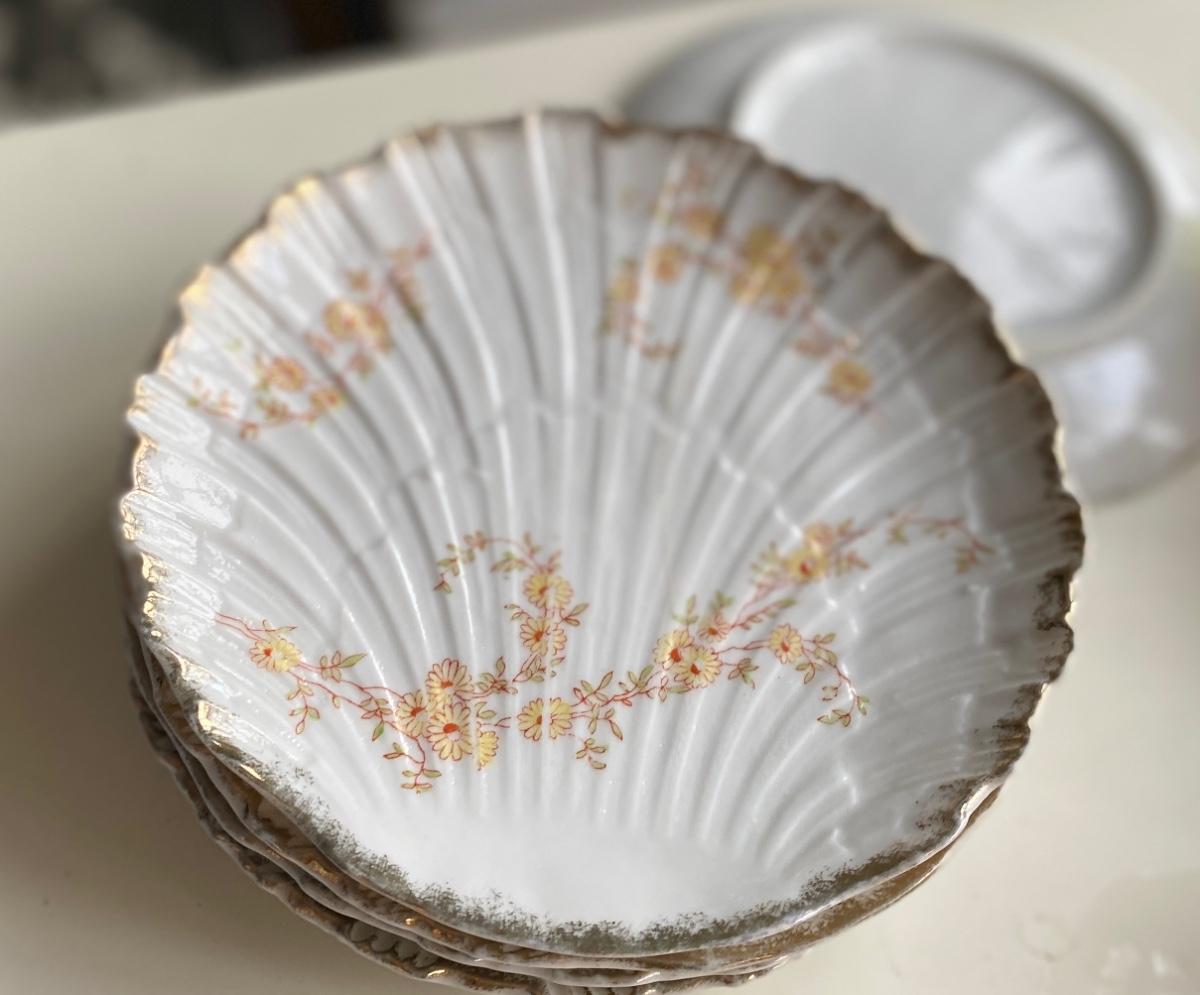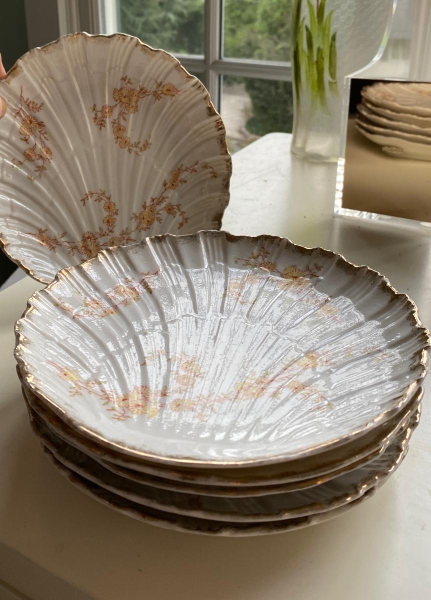 Antique Lot 6 Moser Hard Paste Shell Plates from Squire Mansion