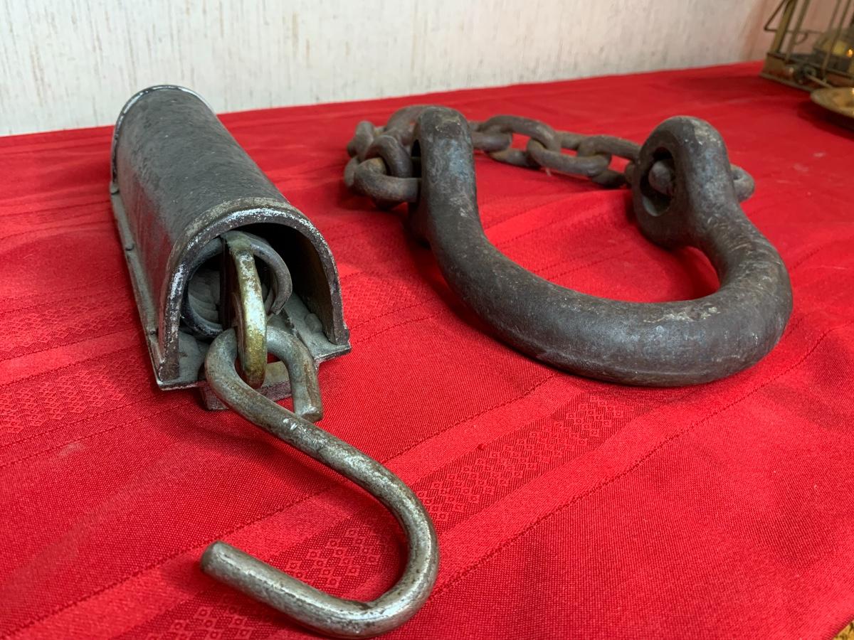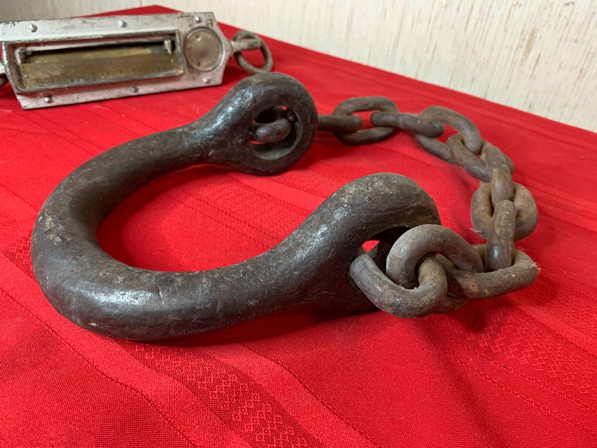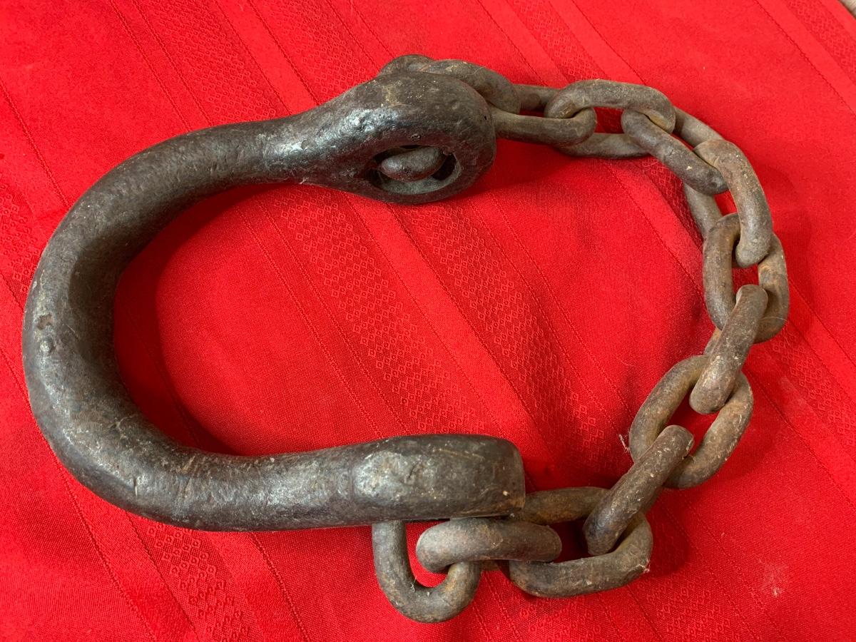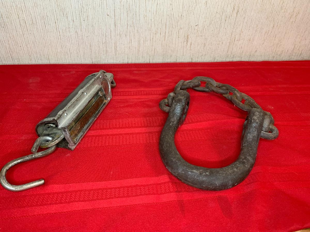 One antique fish scale and one animal shackle (Heavy and possibly iron)