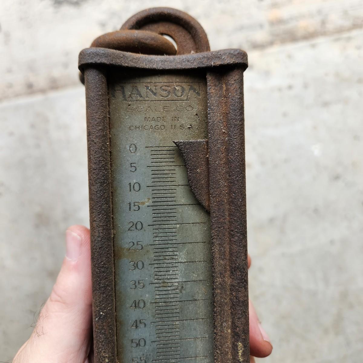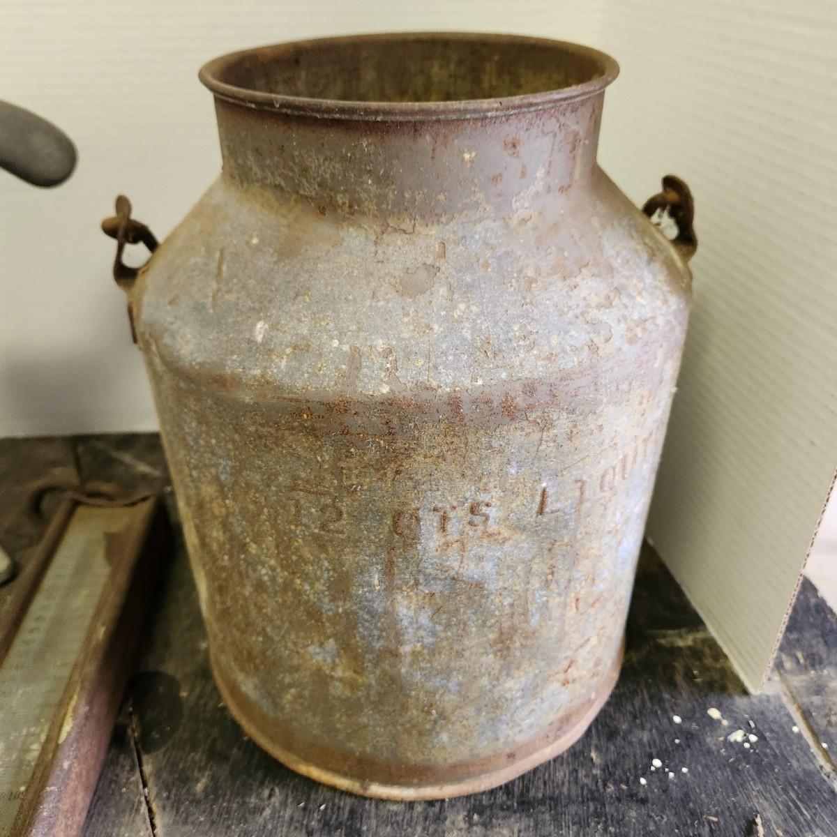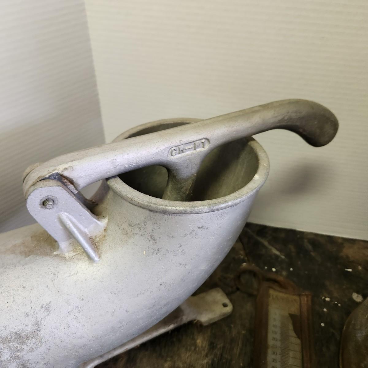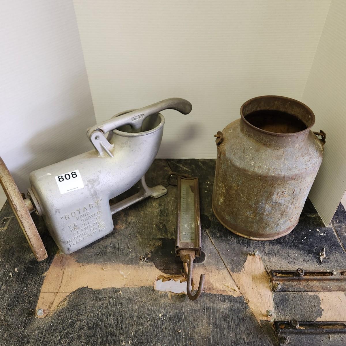 Antique Lot Glawson Ice Shaver, Hanson 100 lb Hanging Scale , 12 Quart Dairy Pail