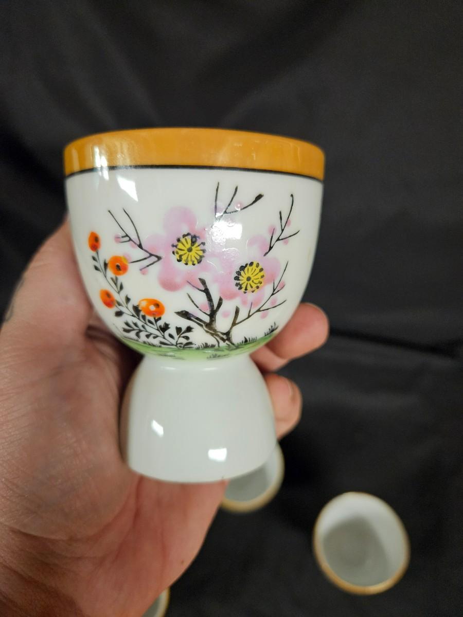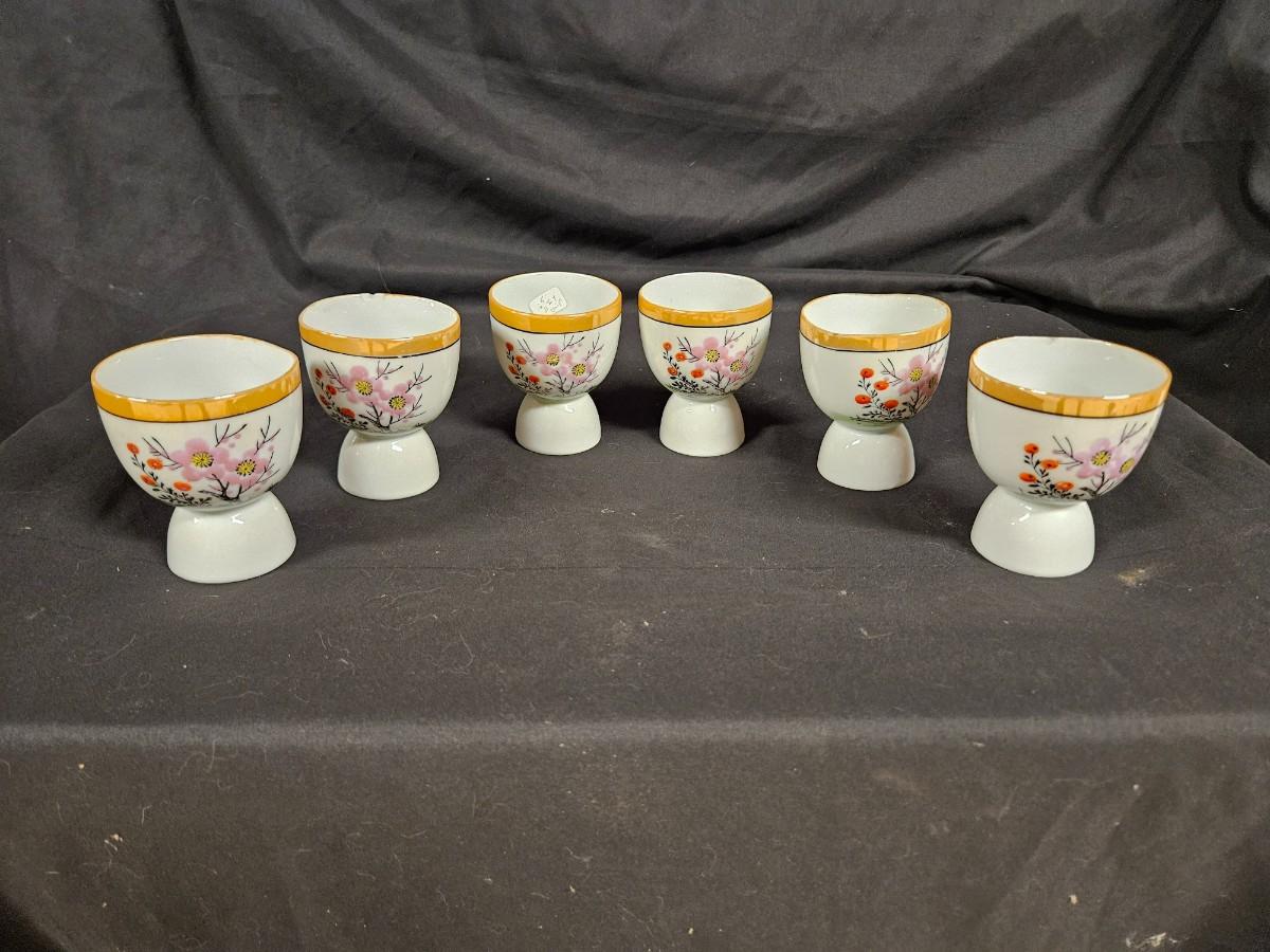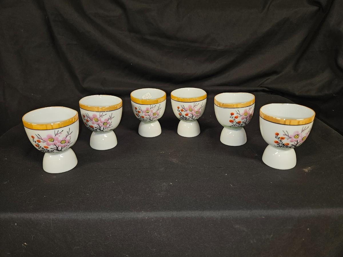 Antique Lot of 6 Japanese Egg Cups Hand Painted