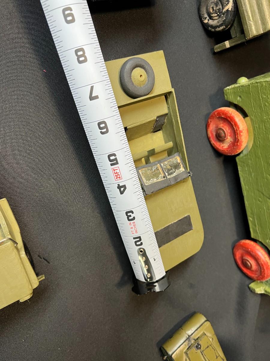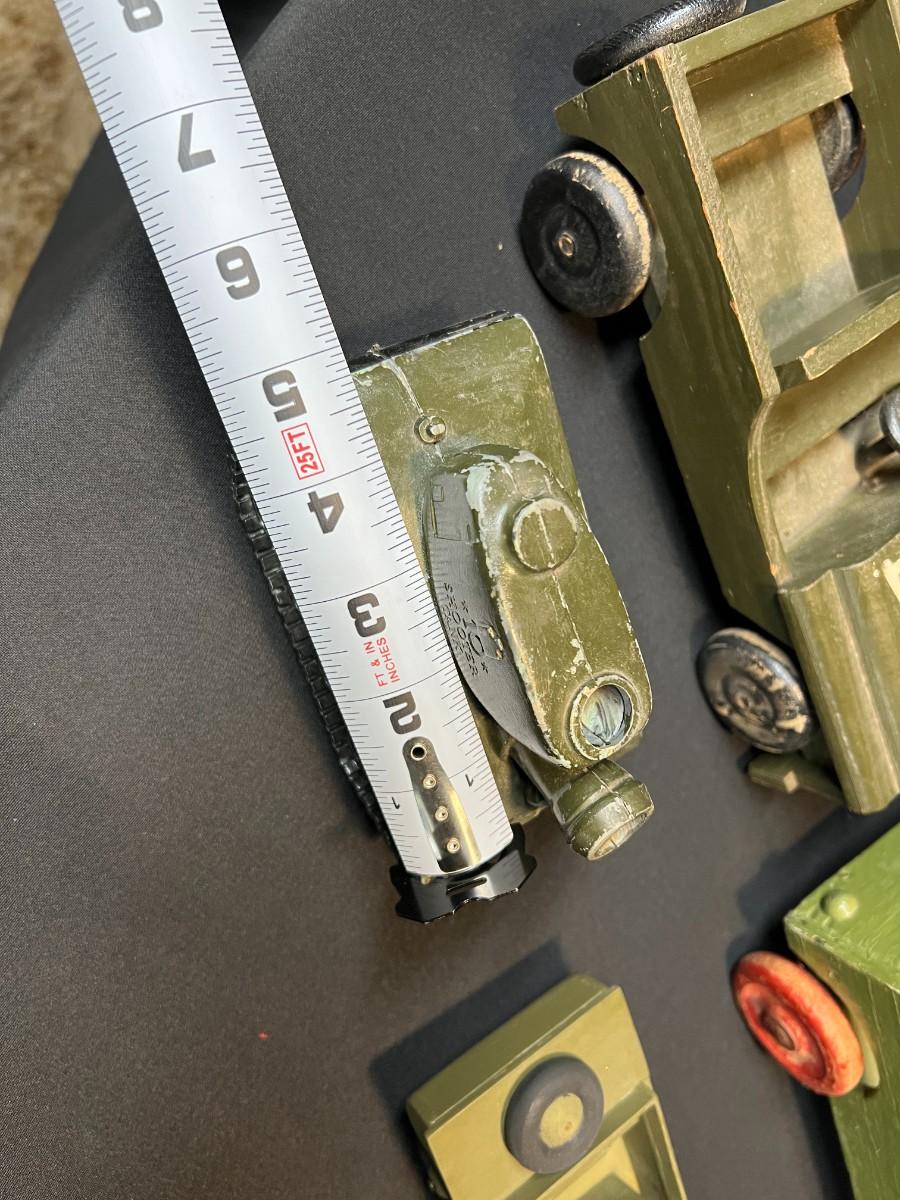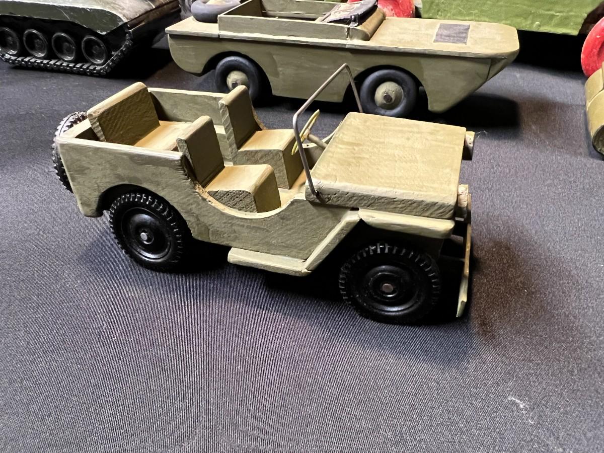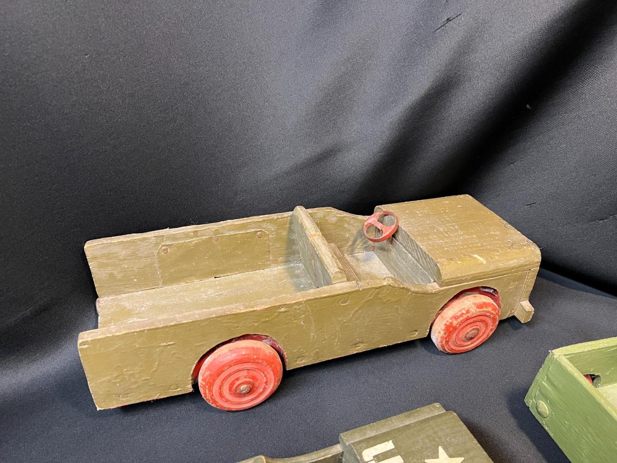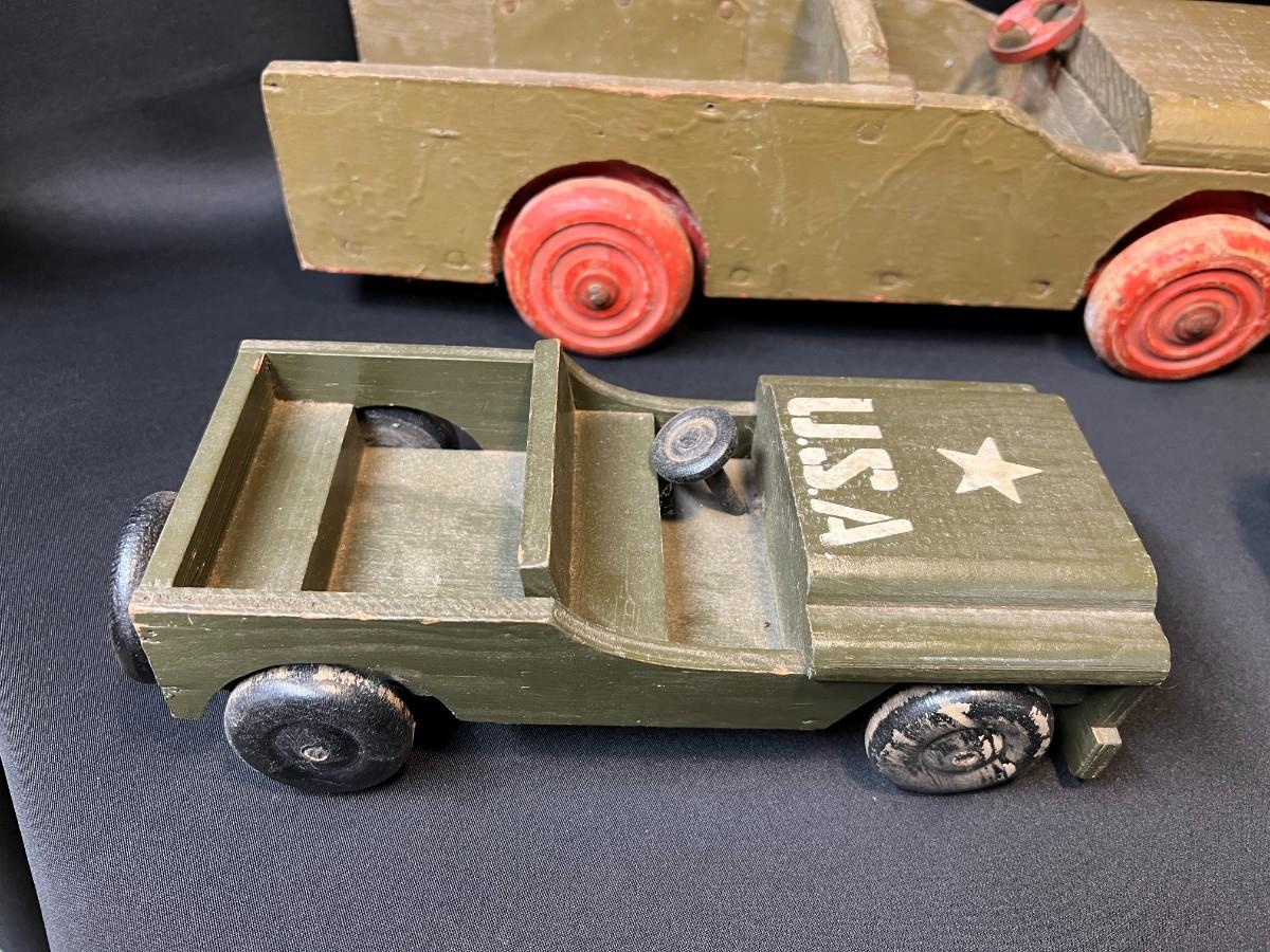 Antique Lot of 7 Military Vehicle Car and Truck Toys. One of the vehicles says "AUB-RUBH, Auburn IND, Made in USA". Condition as shown.