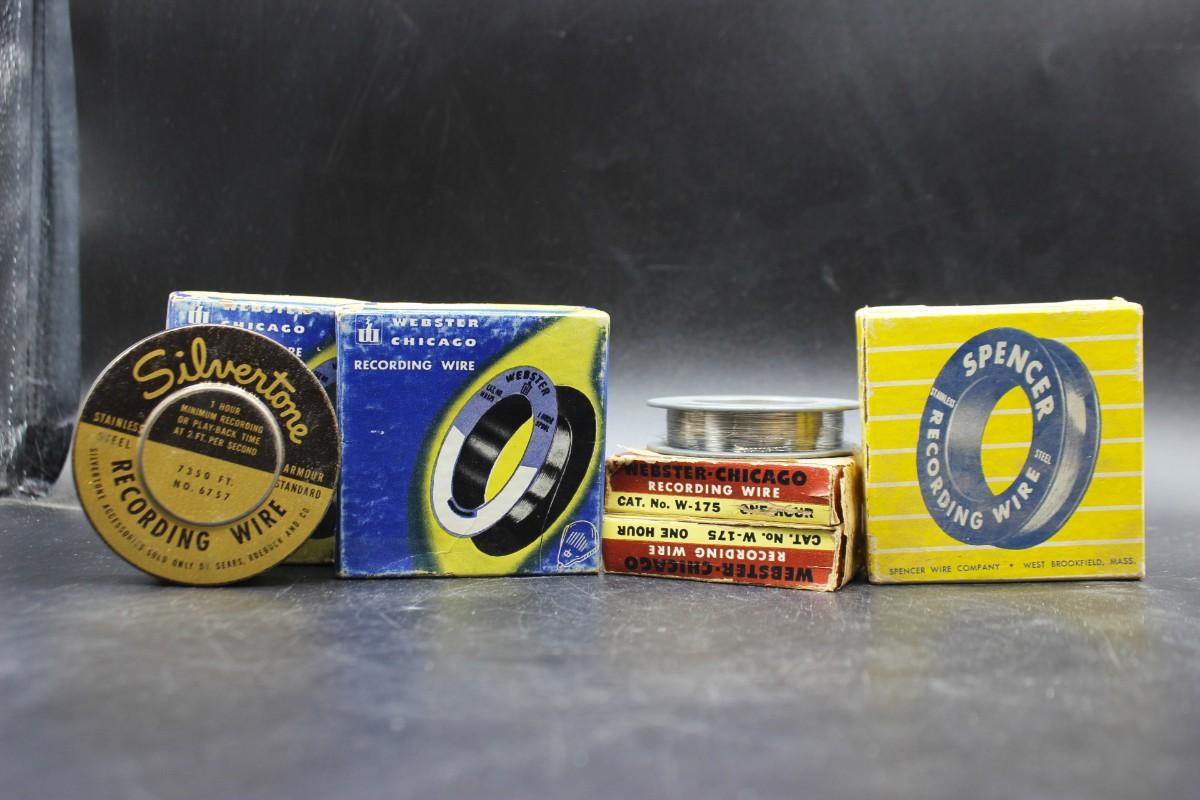 Antique Lot of Boxed Stainless Steel Recording Wire Silvertone, Webster Chicago, Spencer, & More