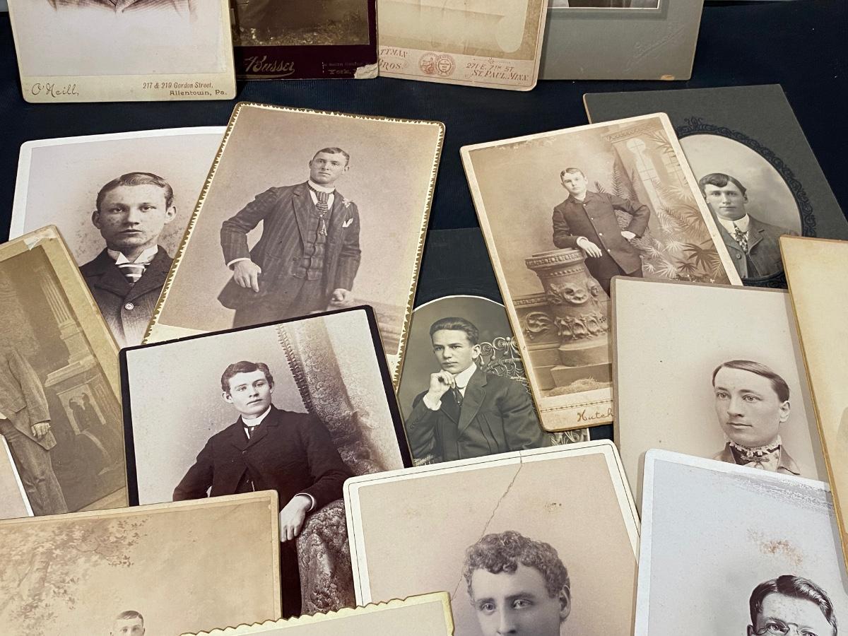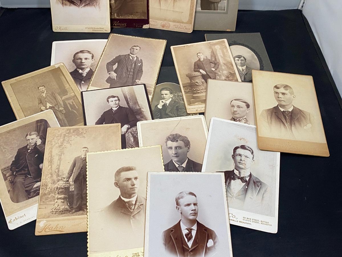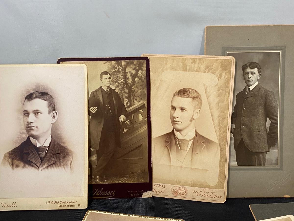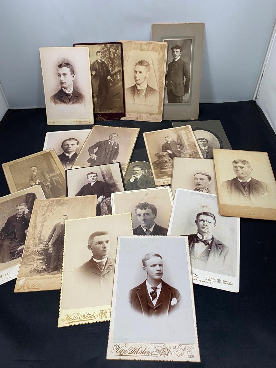 Antique lot of cabinet cards featuring young men without facial hair. Good condition.