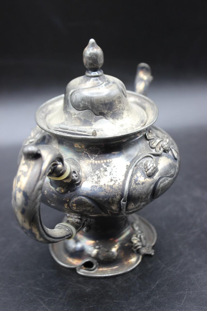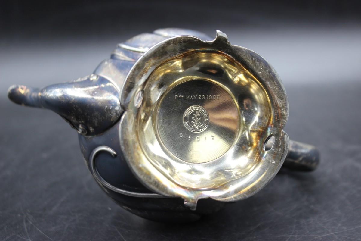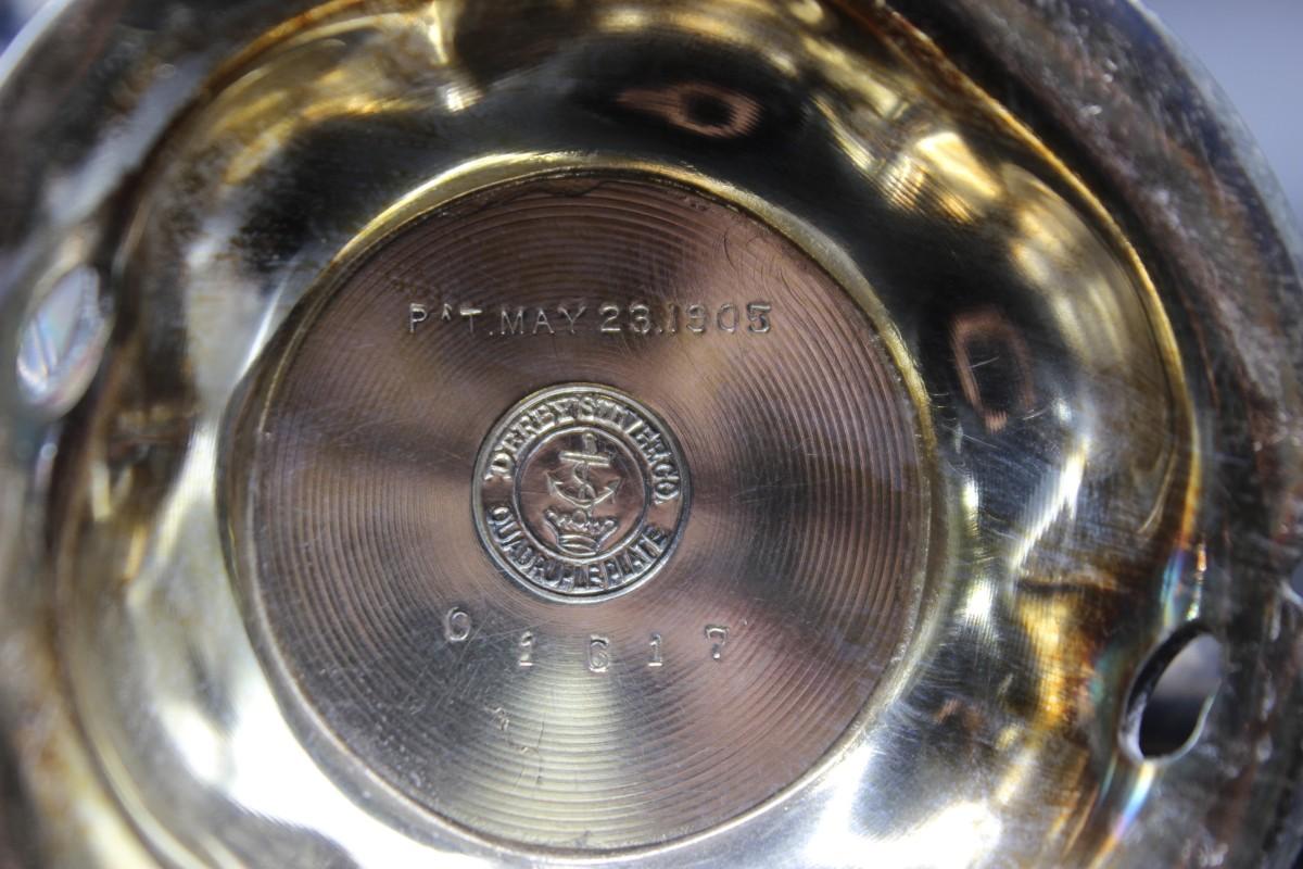 Antique Lot of Derby Silver Co Quadruple Plate Tea Set, there is no significant damage to any of the pieces and is in good condition for its age. Check pictures for more details and for sizing.