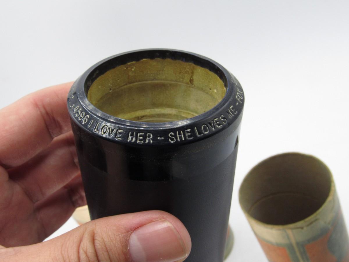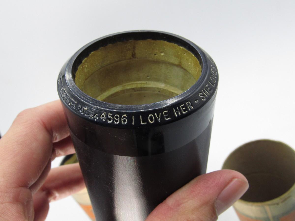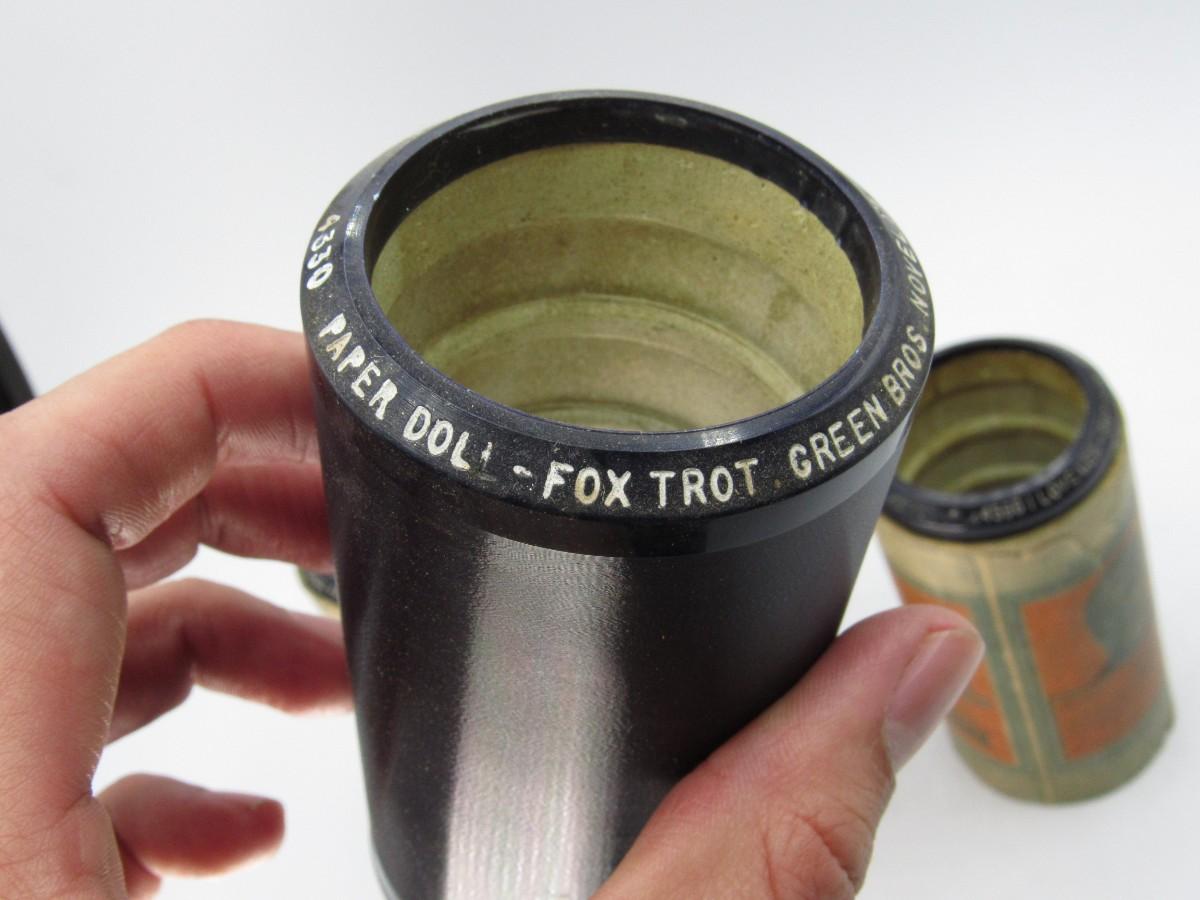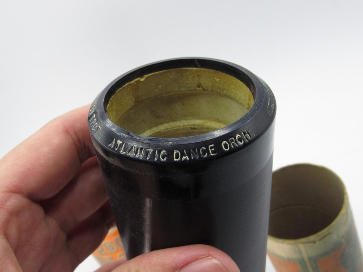 Does not come with the caps, but there is no damage to the wax cylinders and is in good collectible condition. The titles in the lot include: 4099 The Pilot Brave, Paper Doll Fox Trot Green Bros Novelty Band, & I Love Her - She Loves Me Atlantic Dance Orchestra