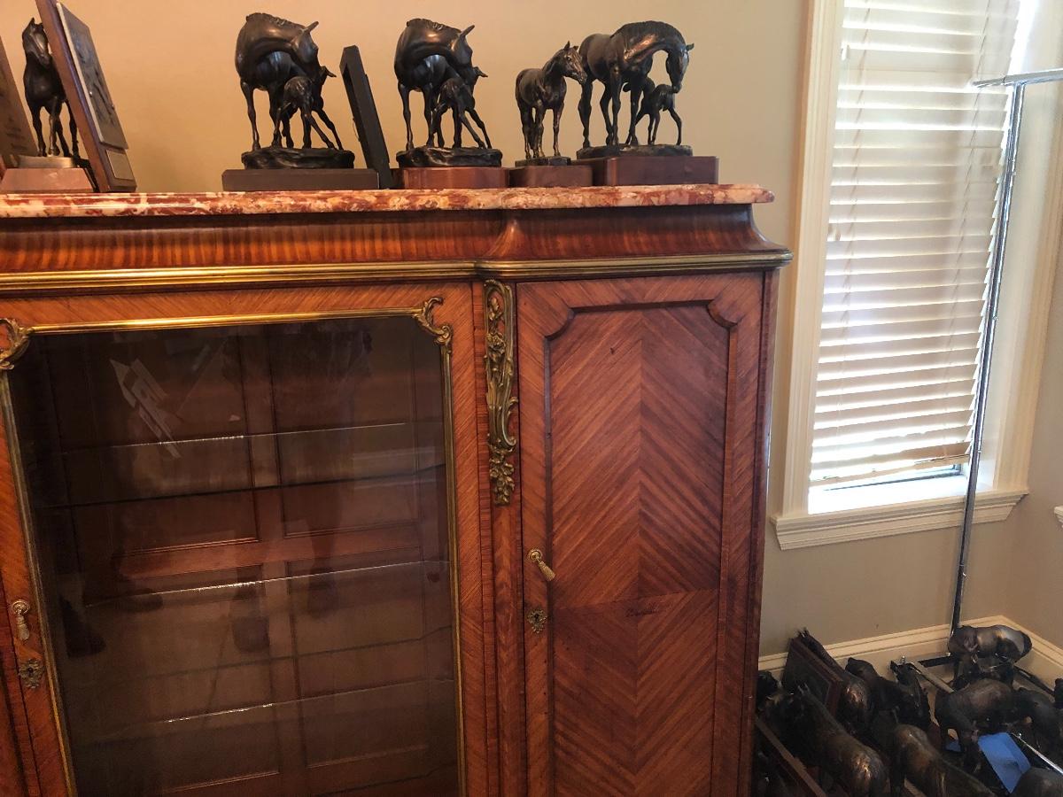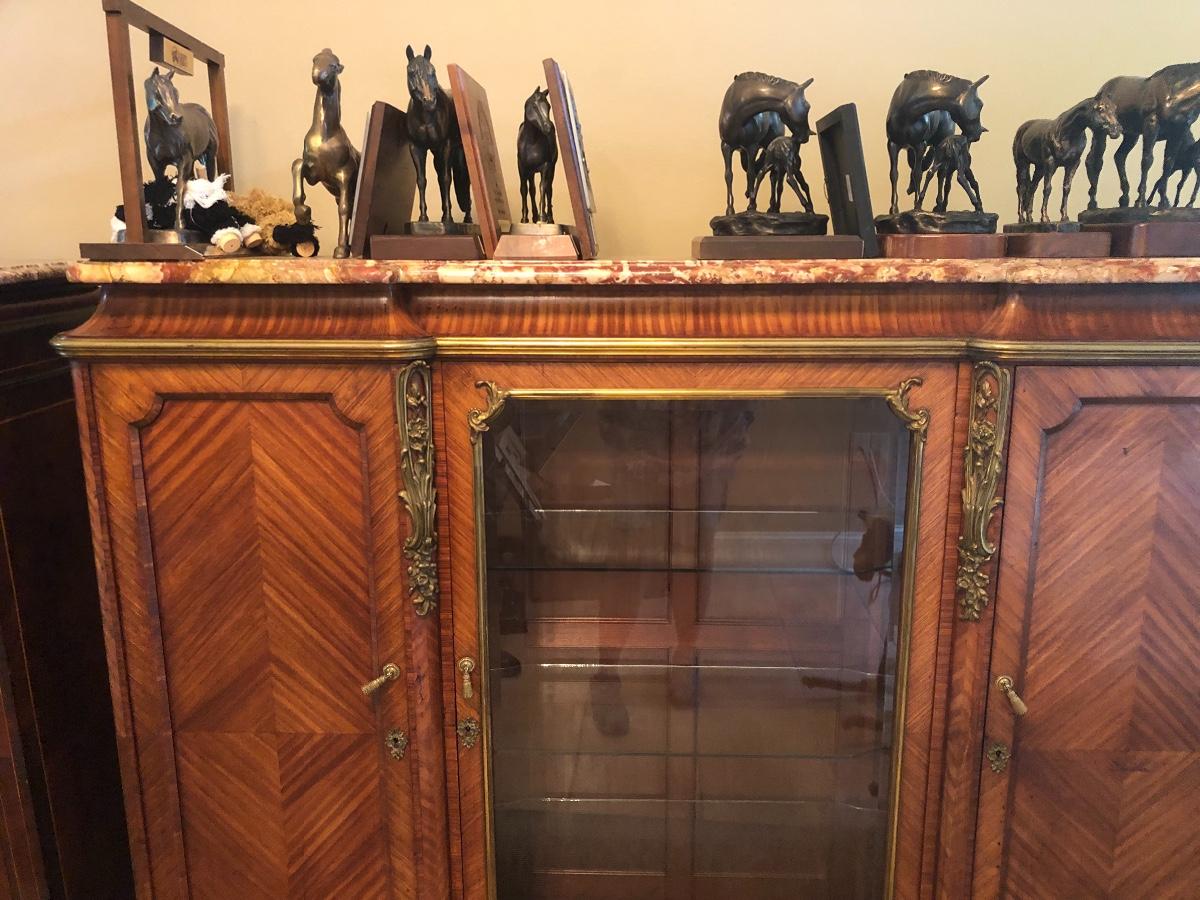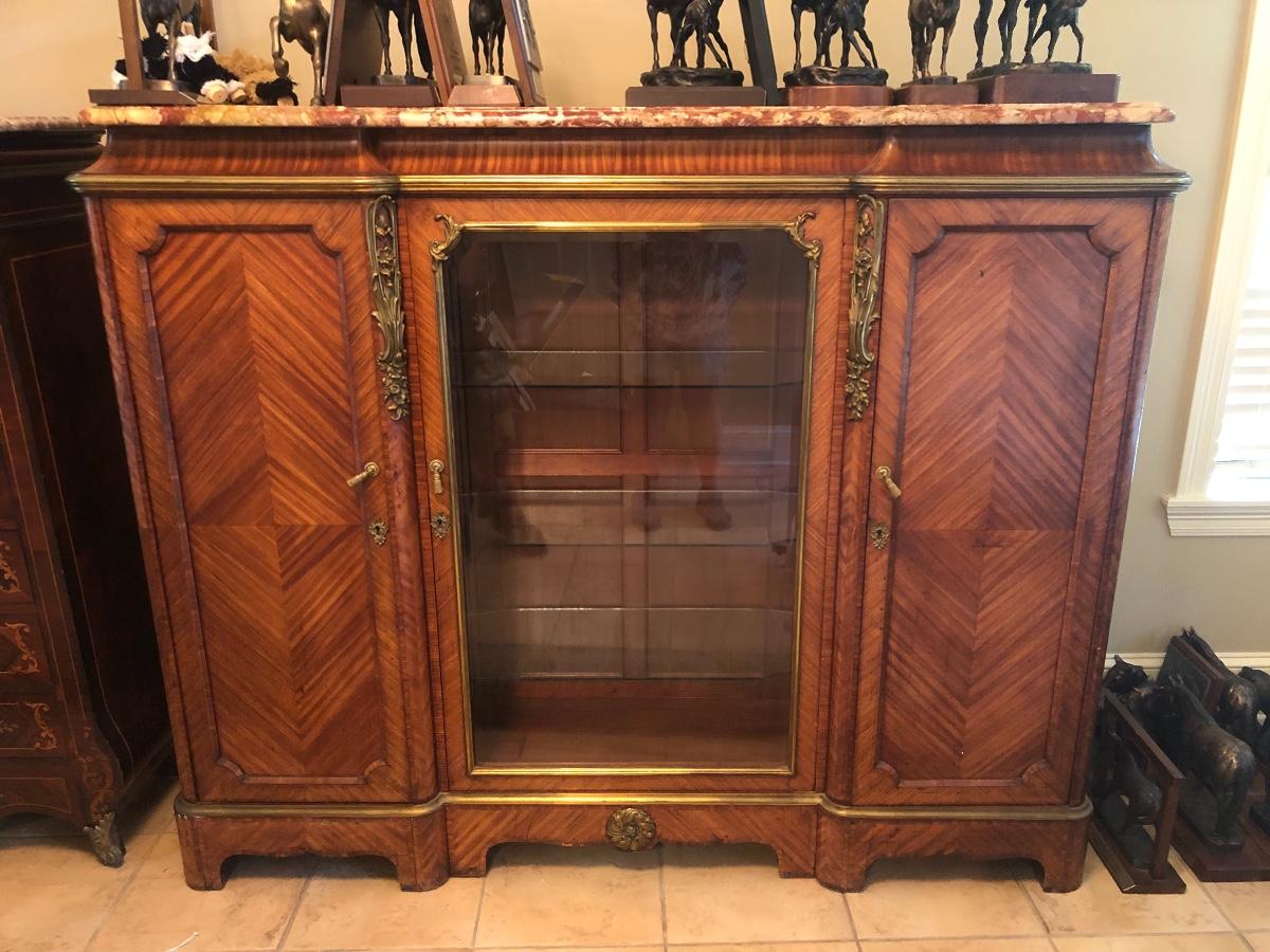 This cabinet is stunning. It is late 19th or early 20th century. It is in pretty close to perfect condition. Top is marble. It measures 17 x 55 x 64