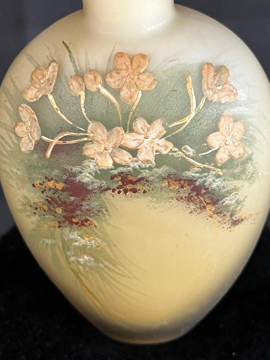 Antique Lovely Floral Hand Painted Glass Perfume Scent Bottle