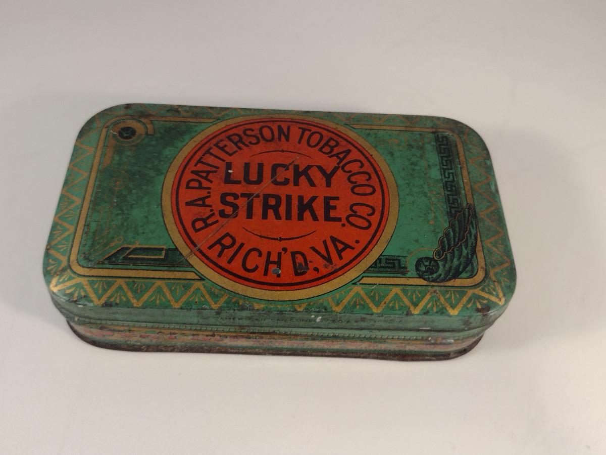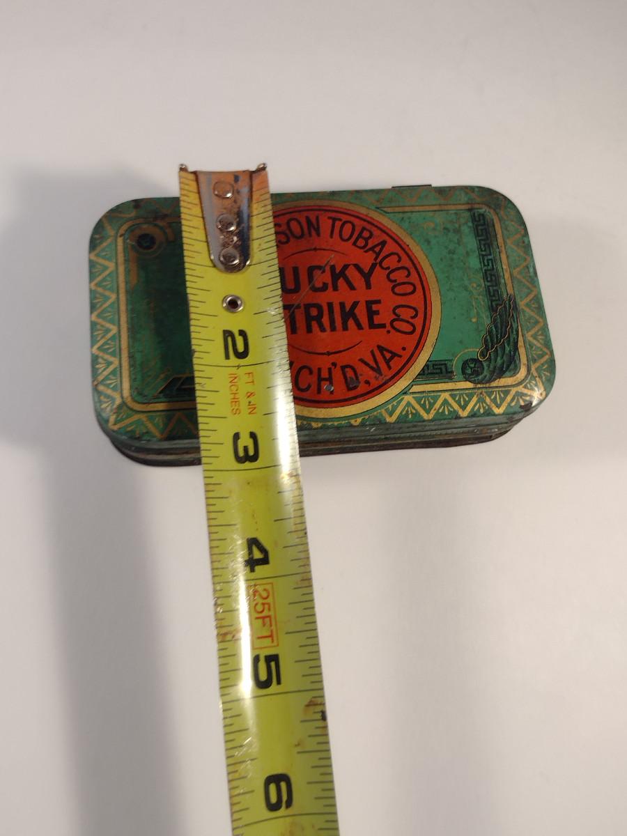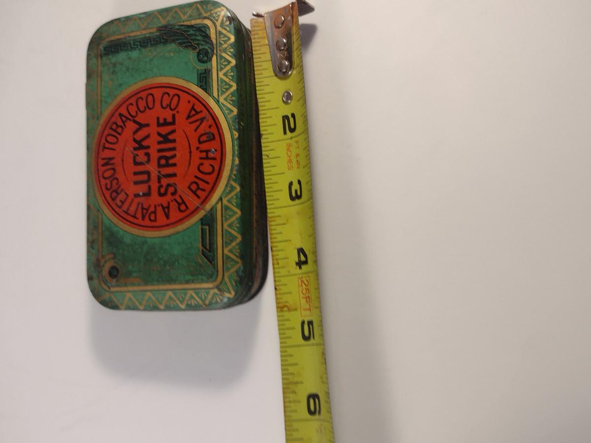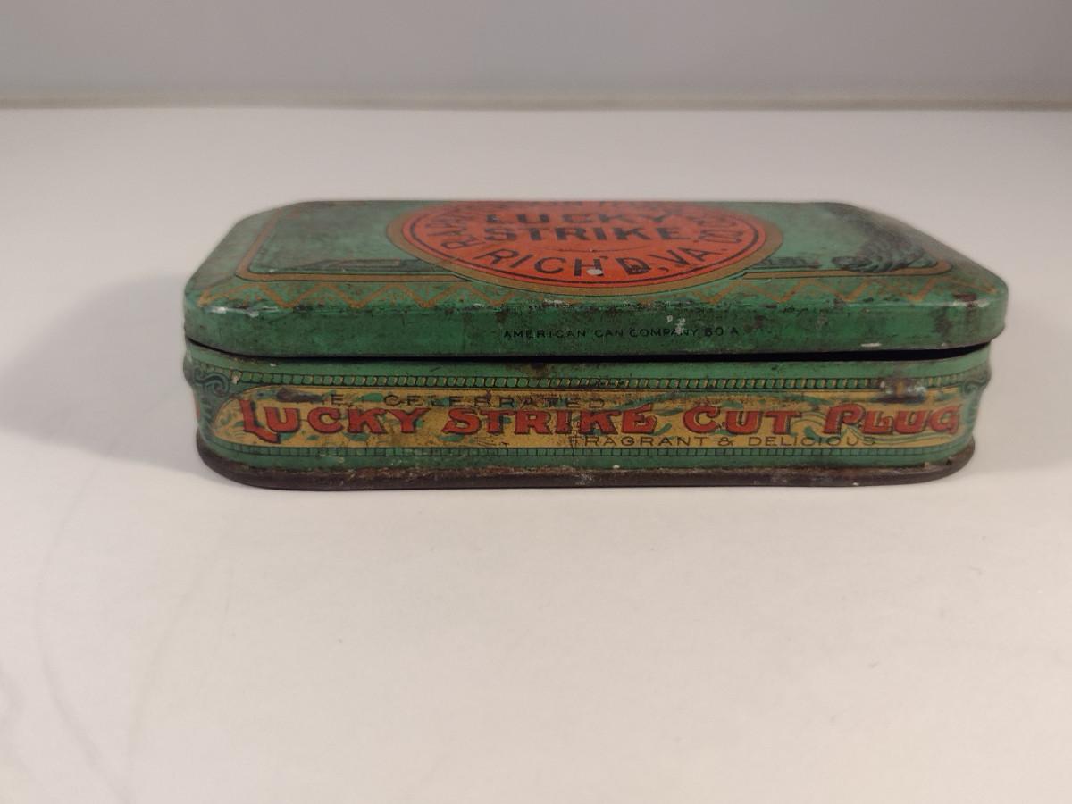 Antique Lucky Strike Tobacco Tin- Circa 1920's- Approx 4 1/4" x 2 3/4" x 1 1/4" Tall. Please see all pictures for condition.