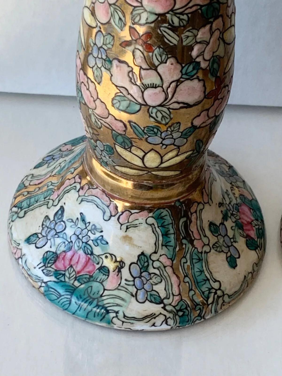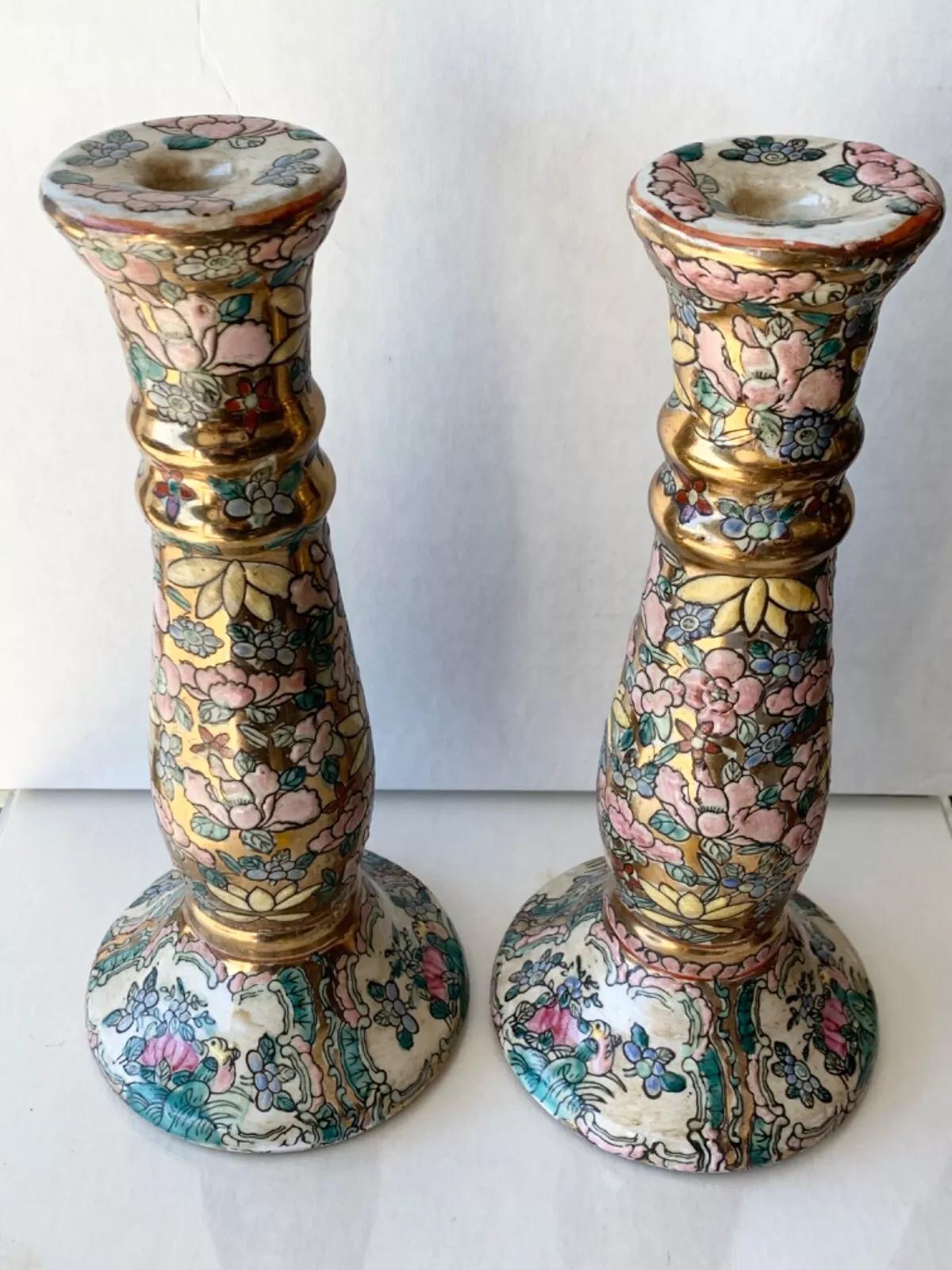 PAIR Antique Rose Madallion Candlesticks (10" x 4.5")
