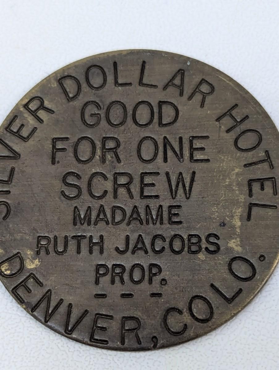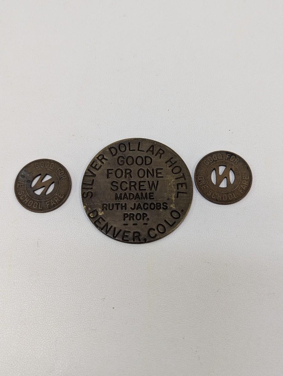 Antique Madame Ruth Jacobs Denver Co Brothel Silver Dollar & Nashville Transit Co. Token