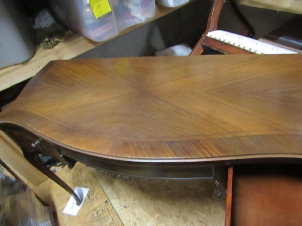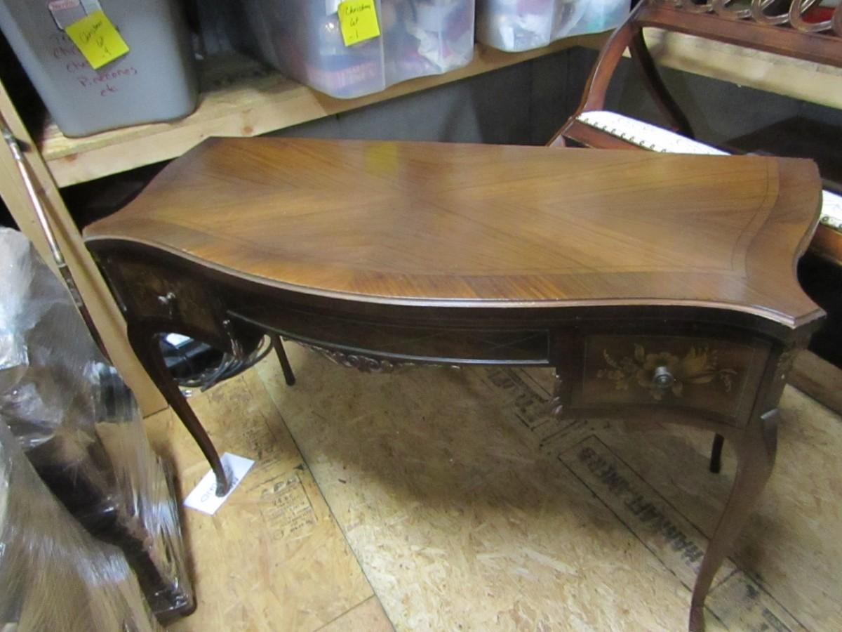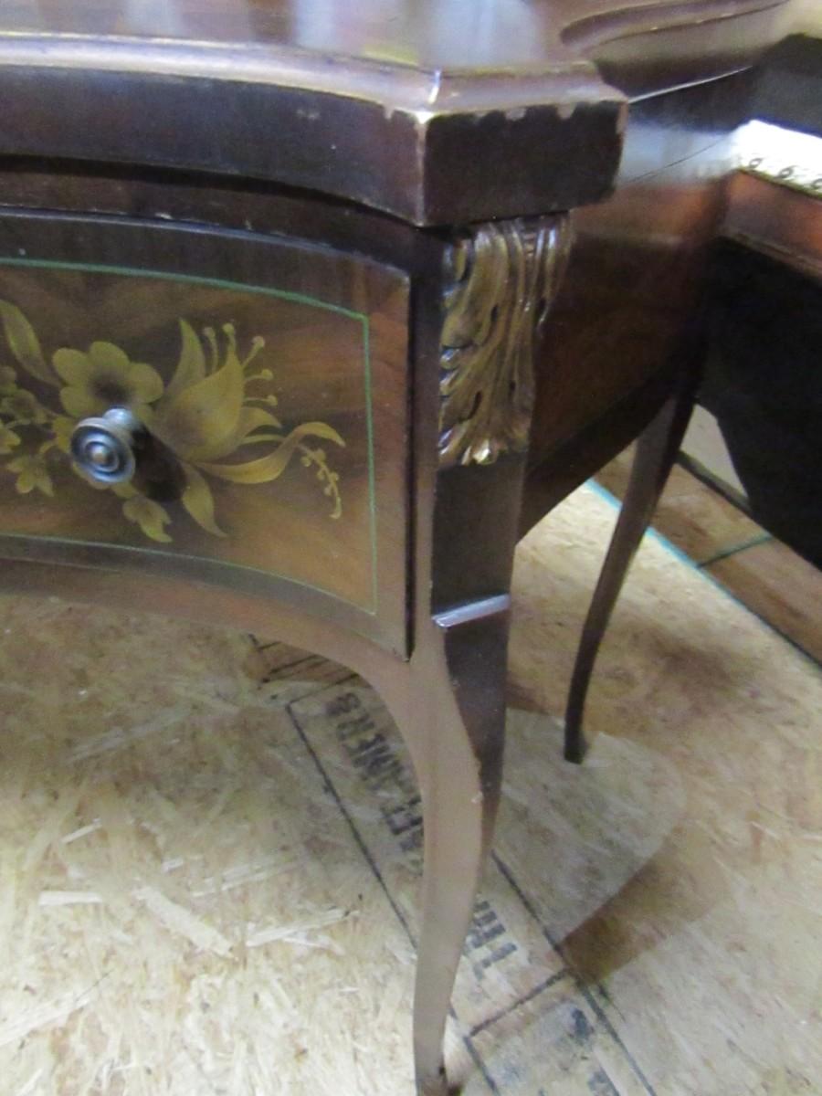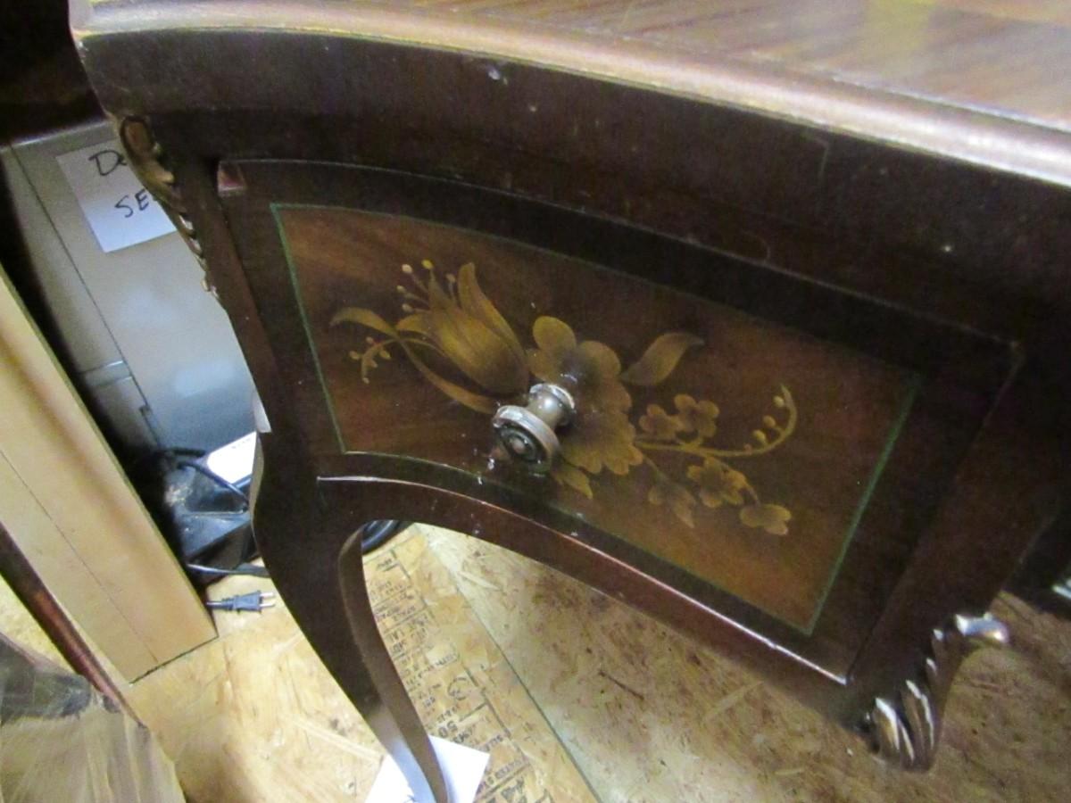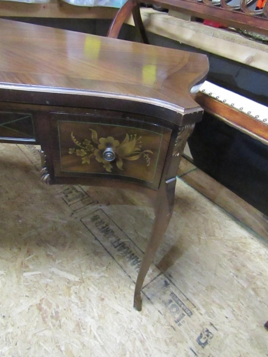 Antique Mahogany French Inlaid Marquetry Writing Desk downstairs item bring assistance to remove from home. See all pictures for possible flaws or blemishes