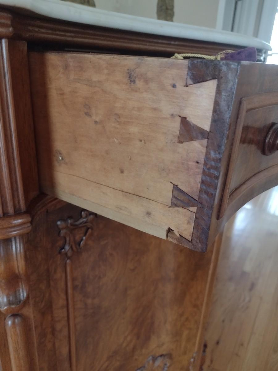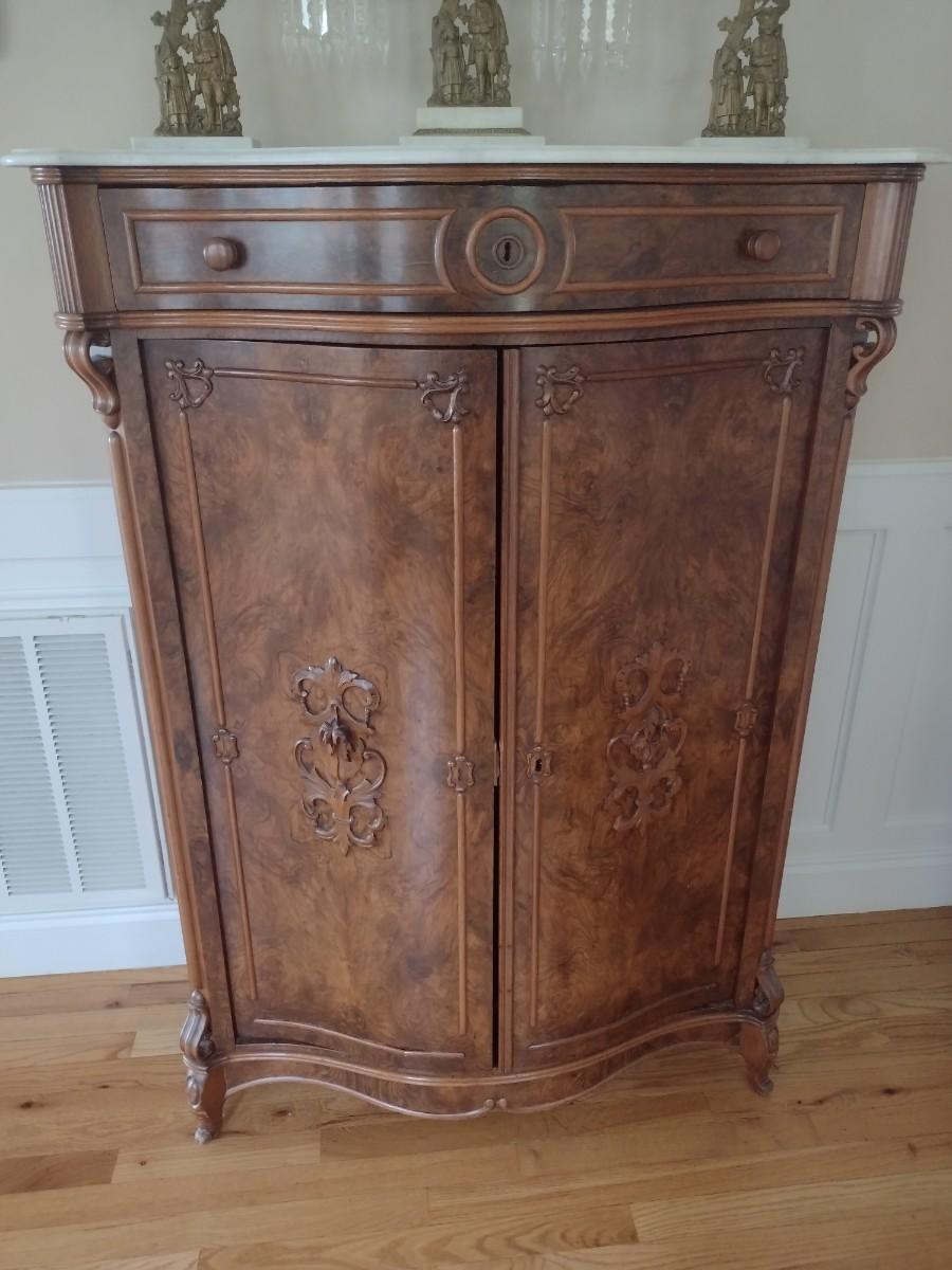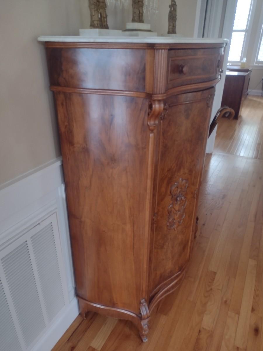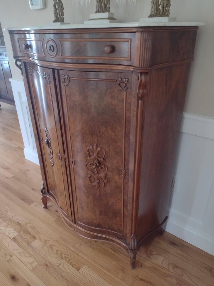 Antique Mahogany French King Louis Design Credenza with Marble Top