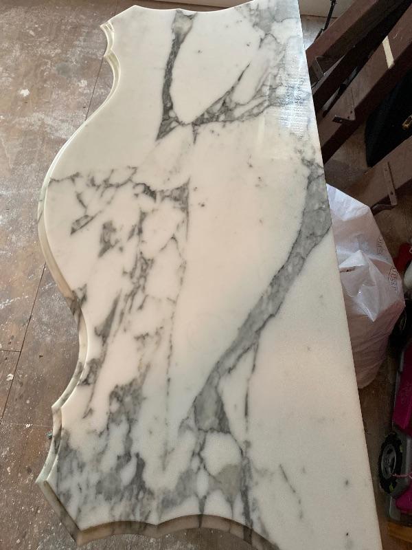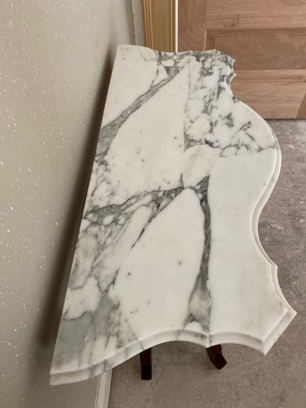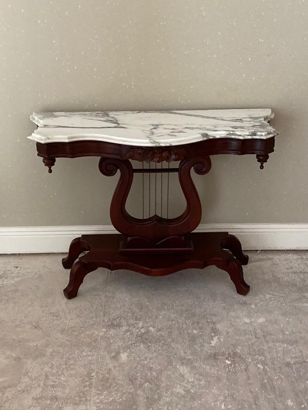 **Antique Mahogany Harp Table with Carrera Marble top / Excellent Condition