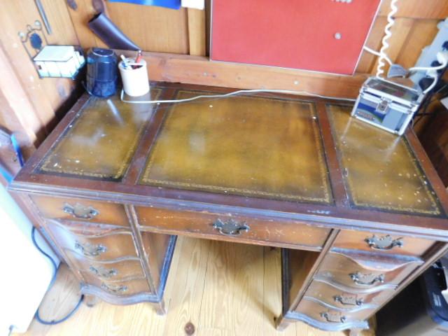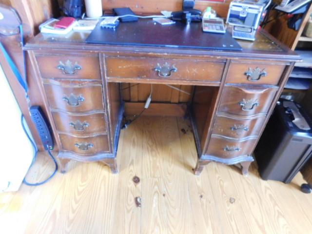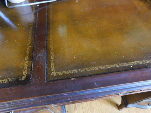 Antique Mahogany Leather Inlay Topped Desk Serpentine Drawers 41"x20"x29"